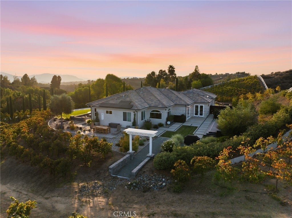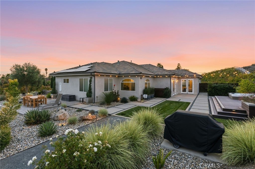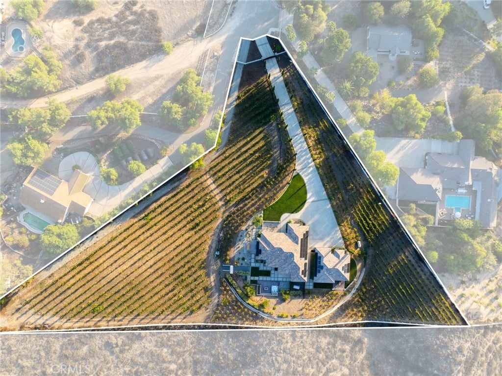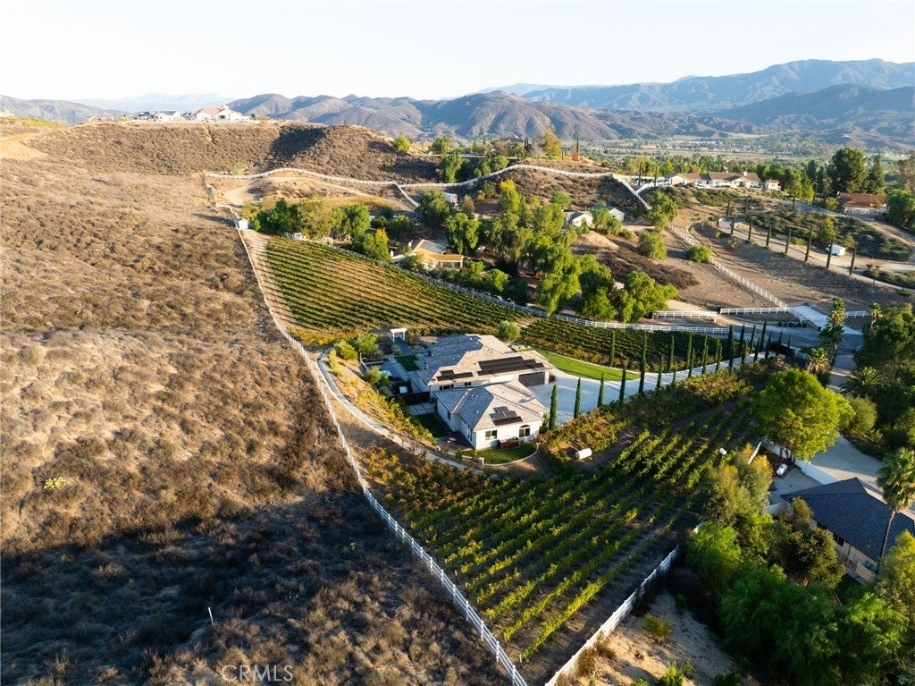 Crafted with a keen eye for detail, this newer-construction custom estate combines high-end finishes, quality craftsmanship, and clean modern lines with a warm, practical feel—all set on 2.5 usable acres in the heart of Temecula’s sought-after Wine Country. The property features a 3-bedroom, 2-bath main residence and a separate 2-bedroom, 1.5-bath guest house, both showcasing a cohesive contemporary design with a smooth Santa Barbara-style stucco exterior finish for a clean, upscale look. Inside the main home, an open-concept layout creates effortless flow between the living, dining, and kitchen areas—ideal for entertaining and everyday living. The designer gourmet kitchen offers high-end finishes, a large center island, and generous storage, all styled with a refined, modern aesthetic. Thoughtful interior design details continue throughout, with curated fixtures, quality materials, and elevated yet comfortable spaces that feel polished without being sterile. The separate guest house includes 2 bedrooms, 1 bathroom, and a full kitchen, making it perfect for multi-generational living, extended stays, or additional income opportunities as an owner-hosted short-term rental in this popular Wine Country destination (buyer to verify STR requirements).Recently installed solar (2025) with Tesla Powerwall enhances efficiency and energy independence. The fully fenced property with privacy gate includes approximately 2.5 acres of land with an organic, income-producing vineyard of mature, healthy vines—ideal for an aspiring or seasoned vintner. For those who simply love the ambiance of the vines without the upkeep, the vineyard can be professionally managed and harvested by a third party, allowing the owner to enjoy the beauty and lifestyle of Wine Country without the maintenance. Temecula Wine Country living at its finest—modern design, custom construction, income potential, and a turnkey vineyard experience all in one exceptional estate.