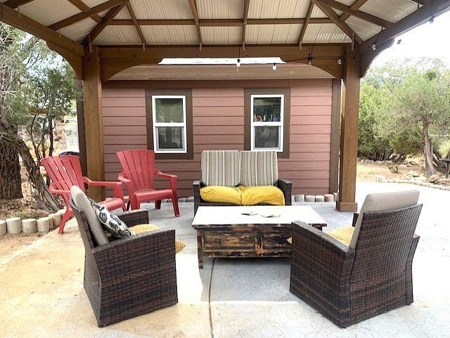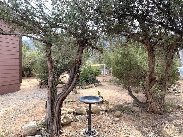 1940 Cabin with separate Studio on fully fenced and gated large lot located in the wonderful Pinyon Pines neighborhood ~ 2 bedrooms / 1 Bath in primary Cabin, with additional Bedroom and bath in the detached Studio ~ Nestled within beautiful native vegetation, including many Pinyon Pine Trees ~ A hen house and dog kennel are located at the rear of the property ~ Private paths meander through this larger parcel, with an lovely, covered outdoor sitting area where you are able to relax, entertain and enjoy this lovely spot ~ Views of the nearby Santa Rosa Mountains are a great bonus to this unique property ~
