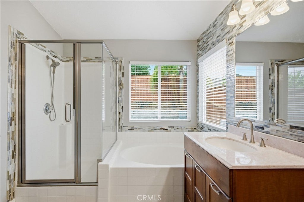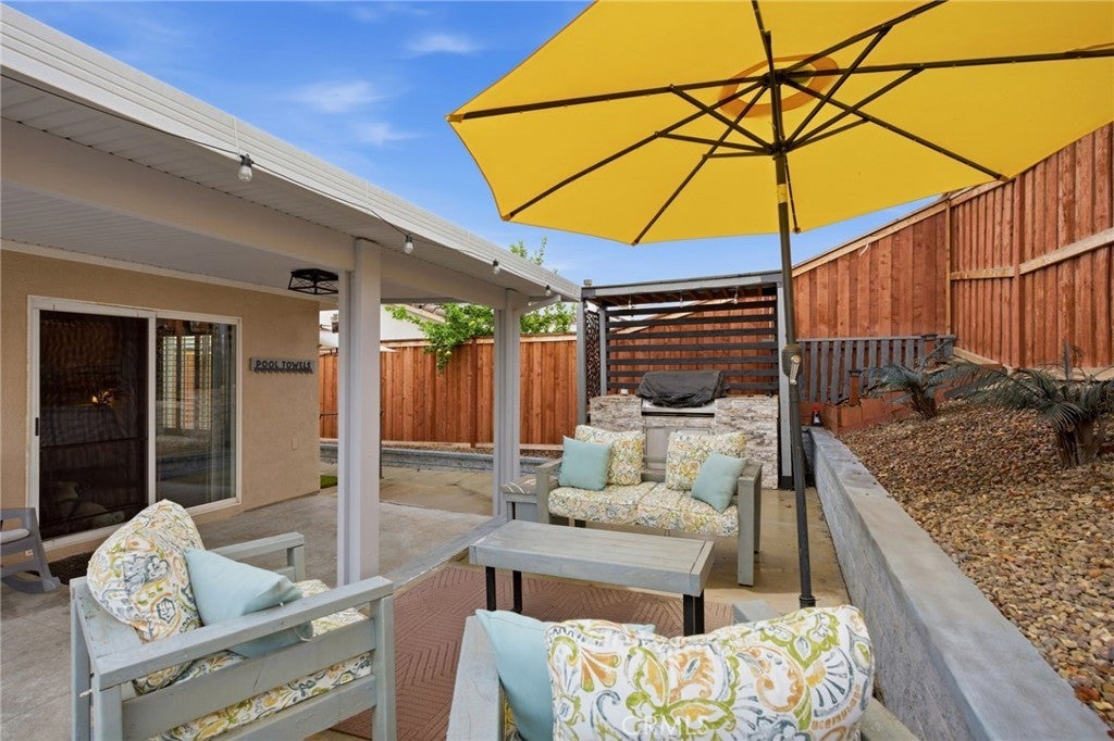 Welcome to your dream single-story pool home nestled in a peaceful cul-de-sac in one of Winchester’s most sought-after neighborhoods! This rare gem checks every box with PAID-OFF SOLAR, a fully remodeled kitchen, a resort-style backyard, extremely low annual HOA, Temecula Unified Schools and LOW TAXES — the perfect combination of luxury, comfort, and value. This home has beautiful curb appeal with a long driveway and past the front porch area once you step inside you'll find an open floor plan featuring upgraded LVP flooring, elegant California shutters, and spacious living areas designed for modern living. The redesigned chef’s kitchen boasts quartz countertops, ample cabinets, stainless steel appliances, a large peninsula island with bar seating, and seamless flow to the great room — ideal for entertaining. There's a flex room at the back of the kitchen which is perfect for an office nook or play area or secondary dining option. This home offers three large private bedroom suites, each with its own full en-suite bathroom, providing the ultimate convenience for guests, multigenerational living, or growing families. A separate guest half bath adds even more functionality. Step into your personal backyard paradise complete with a sparkling swimming pool heated by thermal panels that were installed in 2020, custom built-in BBQ island, covered lounging areas, newer fence, and room for weekend gatherings, parties, or quiet evenings under the stars.