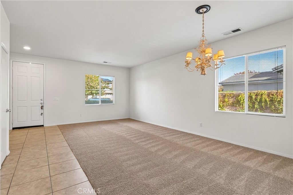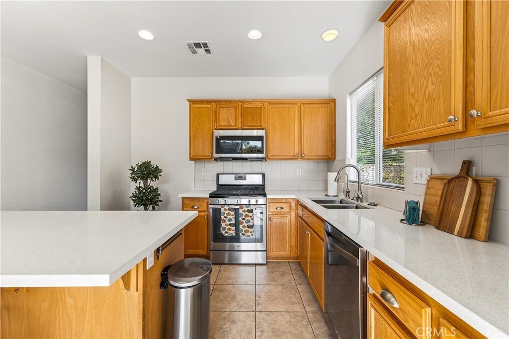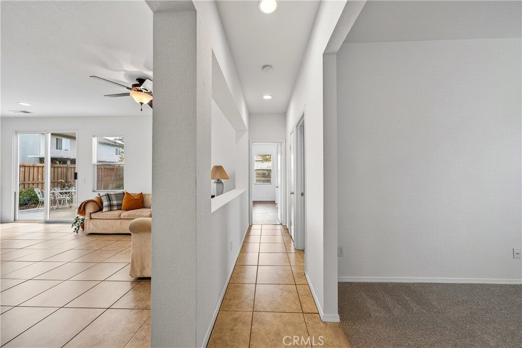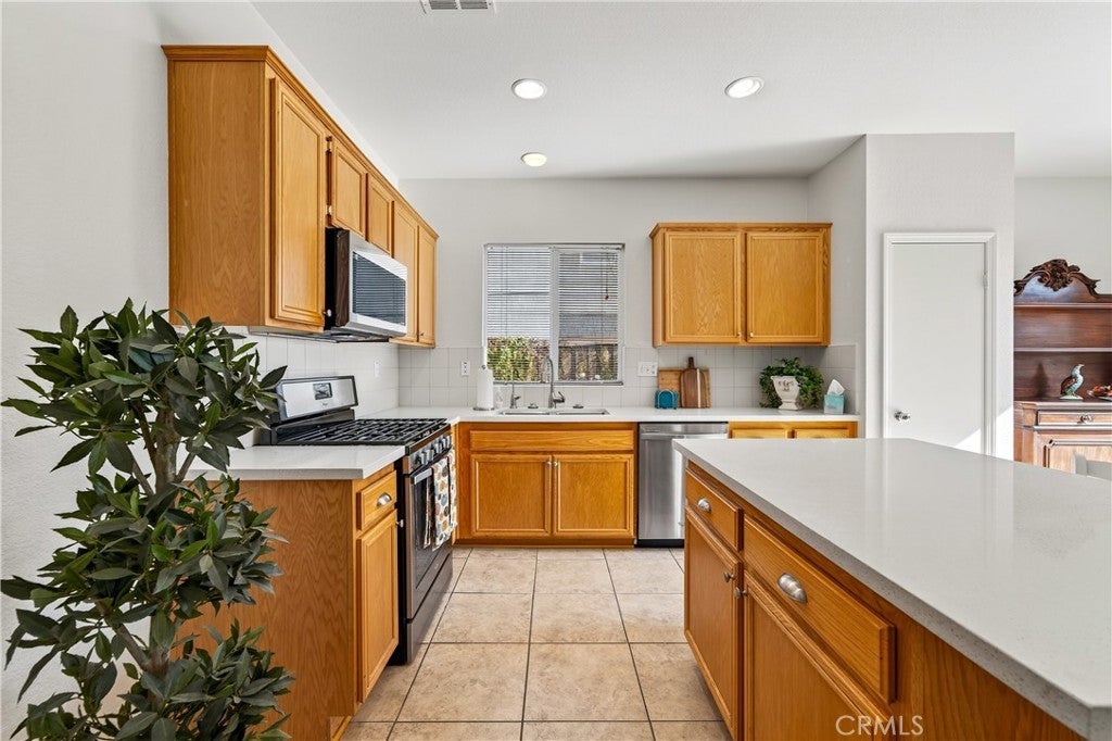 Welcome to 31619 Umbria Lane in the heart of French Valley, California! This beautiful Mediterranean-style single-story home offers the perfect blend of comfort, functionality, and charm. Featuring 3 bedrooms, 2 full bathrooms, and an inviting bonus/flex room, this home provides plenty of space for every lifestyle. Step inside to a bright, open entryway that flows into a spacious formal living and dining room, ideal for gatherings and hosting. The open-concept kitchen overlooks the family room and is designed for entertaining—complete with stainless steel appliances, quartz countertops with kitchen island featuring custom pullout shelving, abundant cabinetry, and a cozy fireplace that anchors the space. Enjoy the fresh feel of new interior paint, new carpet, and classic tile flooring throughout. Two generous guest bedrooms are conveniently serviced by a full guest bathroom, while the bonus room offers the flexibility to be a home office, playroom, or even a potential fourth bedroom. The primary suite is a true retreat, featuring a dual-sink vanity, separate soaking tub and shower, and a large walk-in closet. Step outside to a peaceful, private backyard designed for relaxation and outdoor living. You’ll find a lush grassy area, beautiful landscaping with mature fruit trees (mandarin orange, plum, peach, table grapes, and apricots), raised garden planters, and a spacious concrete patio complete with a shaded pergola and bar-height countertop—the perfect place to entertain family and friends. Additional side-yard space offers even more room for storage. A rare single-story in a highly desirable community in close proximity to Temecula Wine Country, top-rated schools, shopping/dining, parks, and amenities, this home offers both convenience and quality of life. Don’t miss your chance to own this stunning French Valley gem—opportunities like this don’t come often!