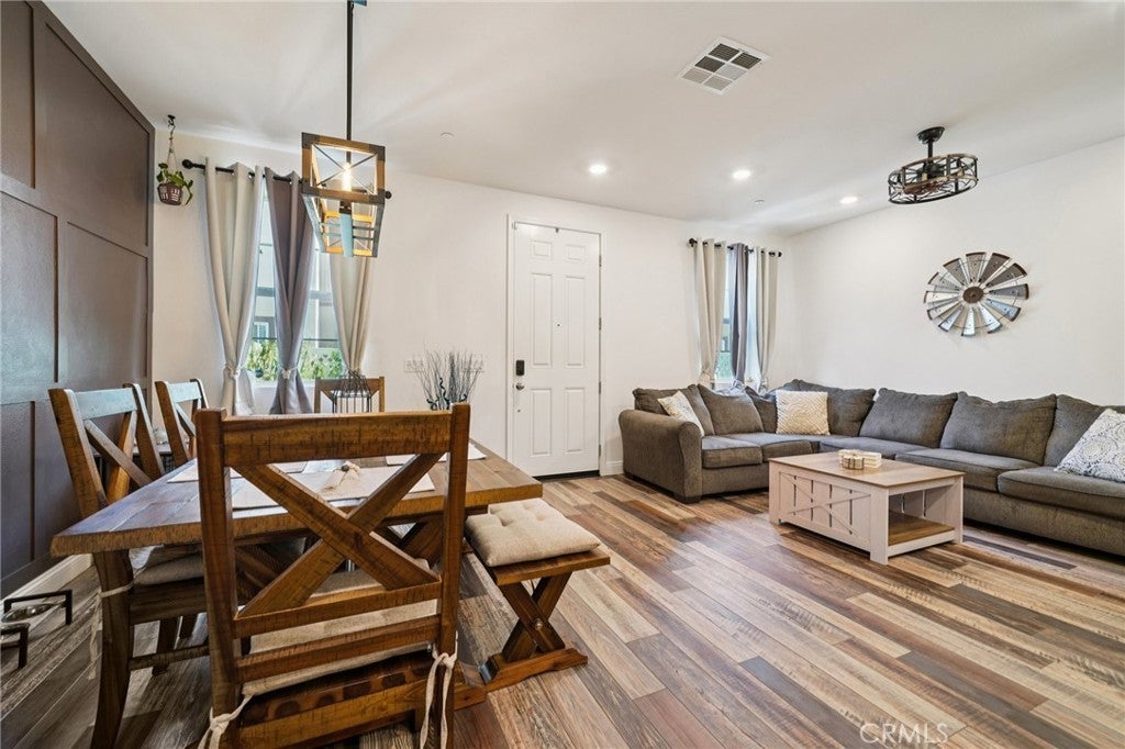 Like new 3 bed, 2.5 bath Townhome is ready to be made yours! Built in 2023, with Solar Panels, and FHA and VA Approved! Located in the desirable Sevilla community this home features a spacious and open floor plan with recessed lights, New beautiful wood plank LVP floors, and modern industrial look ceiling fans throughout the home. Low to no cost electric with the highly efficient solar power production. The living room flows into the dining area with feature wall and gorgeous light fixture. The kitchen features granite counters, a center island with breakfast bar seating and white cabinetry with lots of storage space. A half bathroom and direct garage access complete the main floor. Upstairs you will find all 3 bedrooms including the large primary suite with private ensuite offering a soaking tub and separate shower. There is also a full-size hall bathroom for the 2 secondary bedrooms to share, and a laundry room with additional room for storage. This home has an attached 2-Car Garage and also features a private enclosed front patio. Residents also get to enjoy an array of Resort-Like amenities including a pool, spa, tennis court, basketball court, playgrounds, and grass areas. Conveniently located near schools, shopping, and dining options. Ready for its next chapter, this home is the perfect place to create lasting memories!