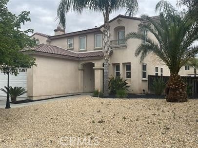 Welcome to your new home in San Jacinto. Spacious 5 bed and 3 bath home with open layout. Beautiful tile floors throughout the down stairs areas. Full bedroom and bathroom downstairs. Fireplace in family room. Modern kitchen cabinets and counter tops. New carpet in the upstairs areas. Fresh paint. This house is in "Turn Key Condition". Huge master bedroom with master bath and walk in closets. Back yard is perfect for entertainment; comes with a pool & jacuzzi (pool & jacuzzi are fenced for added security) concrete throughout for easy maintenance and a patio cover that stretches from one side of the home to the other. This home has solar panels for lower utility bills; Tenants must pay for the cost of monthly solar and have an electricity account which is still significantly less than an electric bill with no solar. Lastly a 3 car garage provides you with ample parking. This home will not last long, call now!