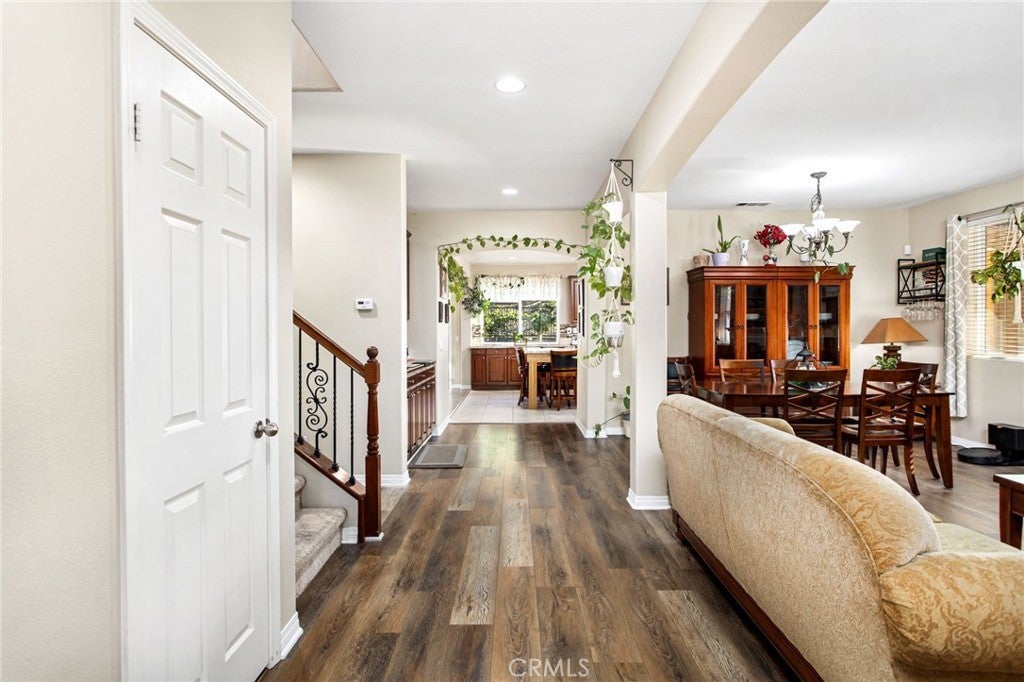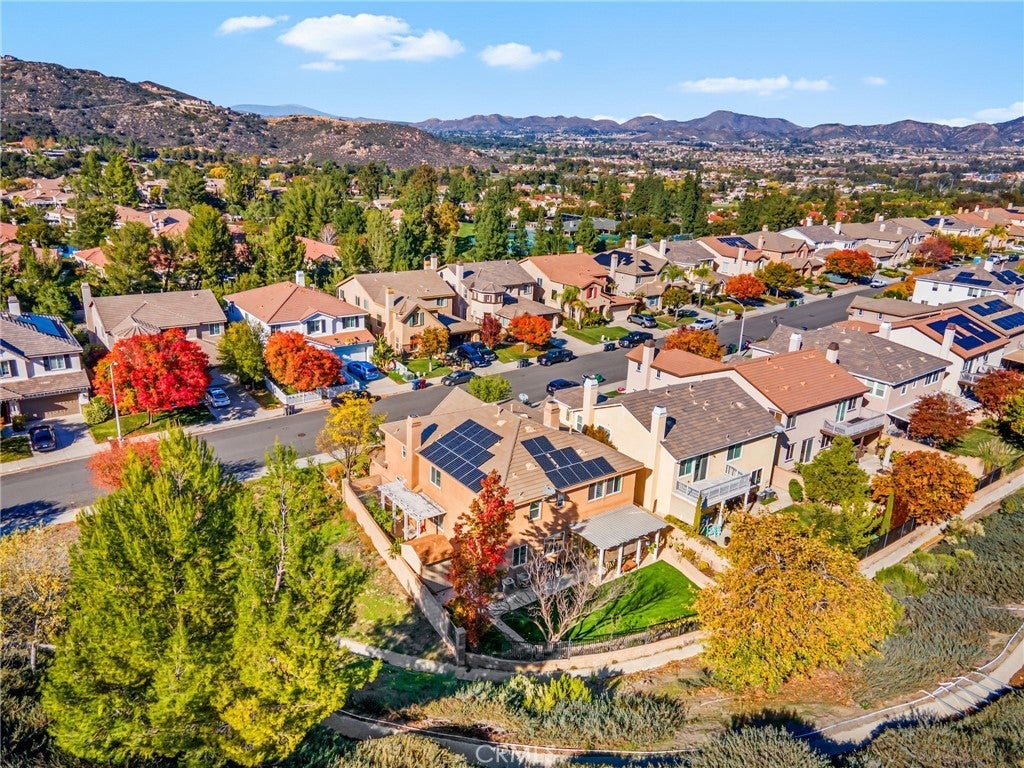 Nestled in the Copper Canyon community on the west side of Murrieta, this spacious 5-bedroom, 4-bath home offers 3,646 sq. ft. of well-planned living space with a private setting and only one neighboring property. The location is tucked against the hills and offers top rated schools. The main level includes a full bedroom and bathroom, ideal for guests, work space, or multi-generational needs. The entry opens to a large formal living and dining area with a fireplace and laminate wood flooring. The kitchen features a substantial center island, granite countertops, double ovens, a gas cooktop, tile flooring, and a walk-in pantry, and it flows into the family room with built-in cabinetry. Upstairs offers a generous loft that can serve as a media room, home office, or potential 6th bedroom. Secondary bedrooms each have access to well-appointed bathrooms with dual sinks and tub-shower combinations, including a Jack and Jill layout. The primary suite includes laminate wood floors, a large bathroom with dual sinks, a vanity, soaking tub, walk-in shower, and dual walk-in closets. The backyard features new sod, a covered patio structure, and a private setting with no direct neighbors on one side or behind. Additional highlights include a wrought iron staircase and a solar system to keep the energy bills low. A rare combination of size, functionality, and privacy in one of Murrieta’s most established west-side neighborhoods.