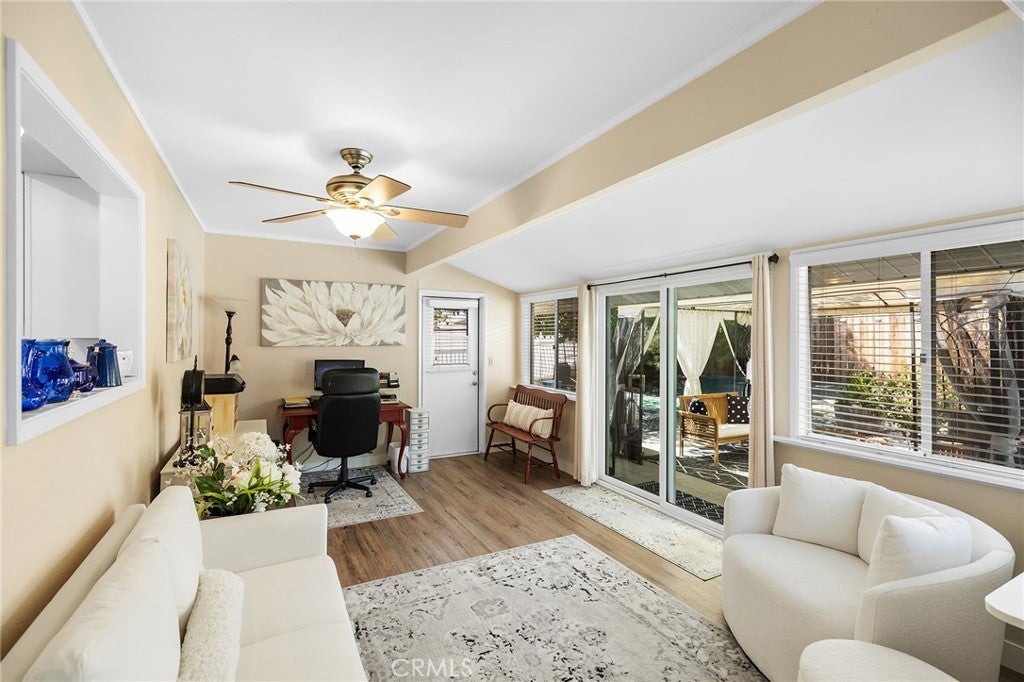 Welcome home to this recently renovated 2 bedroom, 2 bath charmer in an Active 55+ Community in Menifee. There are many updates in this home including new kitchen cabinets with quartz countertops, newer appliances, newer luxury plank flooring throughout, bath remodel and fresh paint. There is a bonus room that is not included in the square footage which adds approx 160 square ft to the home. This lovely home has an open and bright floorplan that flows well and offers plenty of space. There is an indoor laundry room with shelving and a storage/work room accessed from the backyard. There is also a one car direct access garage with new opener and door for added convenience. Other recent updates include new windows, a newer water heater, and newer electric panel. This home features low maintenance front and rear yards with rock scape, rose bushes and various trees and shrubs and a fenced yard. This home is in the Del Webb 55+ community which has a very low tax rate and low HOA of only $34 per month. The HOA amenities include two pools, one heated year round, spa, clubhouse, billiards, Outdoor games, fitness center and lots of classes and activities! Don't miss the opportunity to make this your new home! Call Lisa today to schedule your appointment.