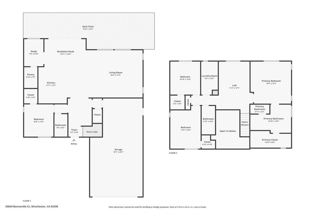 OWNED SOLAR!! BUILT IN 2022 - 4 BEDROOMS + LOFT + DOWNSTAIRS BED & BATH ON A CUL-DE-SAC!! Welcome to Bonneville Court, where this beautiful home sits at the end of a quiet cul-de-sac with only one side neighbor and sweeping views of snow-capped mountains and nearby rolling hills. Step inside to bright, airy interiors highlighted by gorgeous LVP flooring and neutral paint, creating a crisp, modern backdrop for any style. The main level features a full bedroom and bathroom, ideal for guests or flexible living needs. An expansive great room flows seamlessly into the open kitchen—perfect for entertaining. The chef-inspired kitchen showcases granite countertops, stainless steel appliances, rich espresso shaker cabinetry, and a large walk-in pantry. Just off the kitchen is a versatile space perfect for a home office, homework area, or extended storage. Upstairs, a spacious loft separates the private primary suite from the secondary bedrooms. The primary retreat offers stunning mountain views along with dual sinks, a separate soaking tub and shower, and a generous walk-in closet enhanced by a window for natural light. The low-maintenance backyard is designed for year-round enjoyment, featuring a solid Alumawood patio cover, artificial turf, vinyl and block fencing, plumbed-in gas BBQ, and lush plants. Additional highlights include a 3-car tandem garage and close proximity to shopping, dining, parks, and more. A rare combination of location, layout, and efficiency—schedule your private tour today!