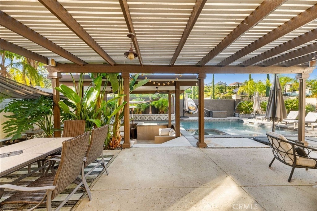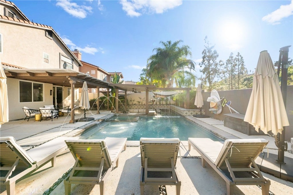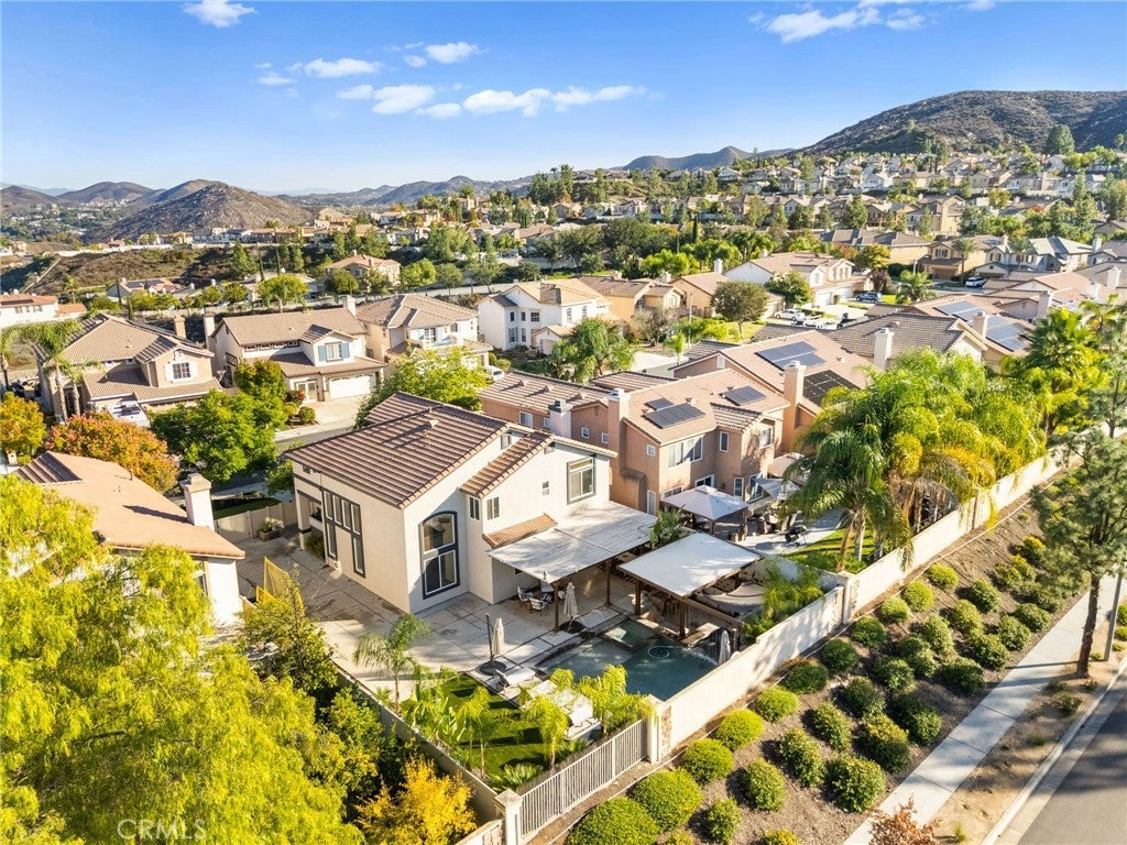 Experience elevated living in this beautifully refined 4 bed/3 bath residence tucked within the prestigious Tuscany Hills community. Thoughtful upgrades and timeless finishes create a luxurious yet comfortable atmosphere throughout the home. Newer vinyl plank flooring enhances the main living areas, while the refreshed kitchen features updated counters, contemporary fixtures, and modern appliances. The bathrooms have been tastefully upgraded, and additional enhancements—including a whole-house fan, newer water heater, exterior paint, and vinyl fencing with expanded concrete—add both style and convenience. Designed for relaxation and entertaining, the backyard offers a private resort-like escape with an Aqua Blue Pebble Sheen pool with ozone system, complemented by a beautifully reimagined landscape. PAID SOLAR with LG battery backup adds exceptional value and long-term energy efficiency. Residents enjoy access to Tuscany Hills’ renowned amenities: a resort clubhouse, pool and spa, fitness center, tennis courts, sports courts, and scenic walking paths. Ideally situated near Tuscany Hills Elementary, local shopping and dining, Canyon Hills Marketplace, Costco, and convenient 15 freeway access. A truly exceptional opportunity to own a tastefully upgraded, energy-efficient home in one of Lake Elsinore’s premier hillside communities.