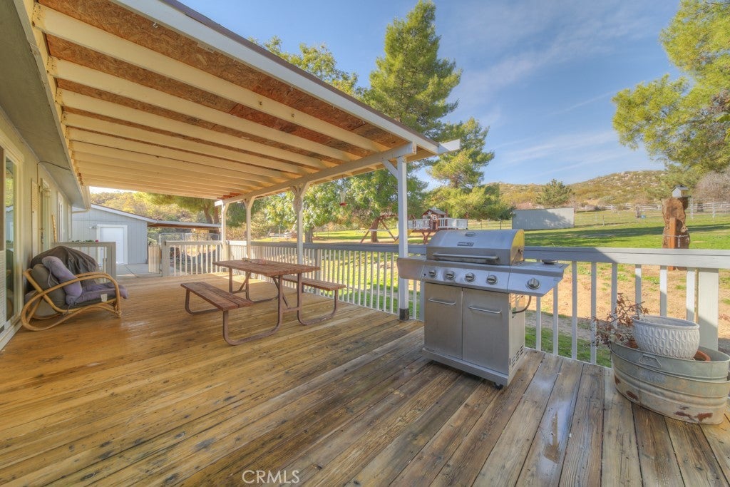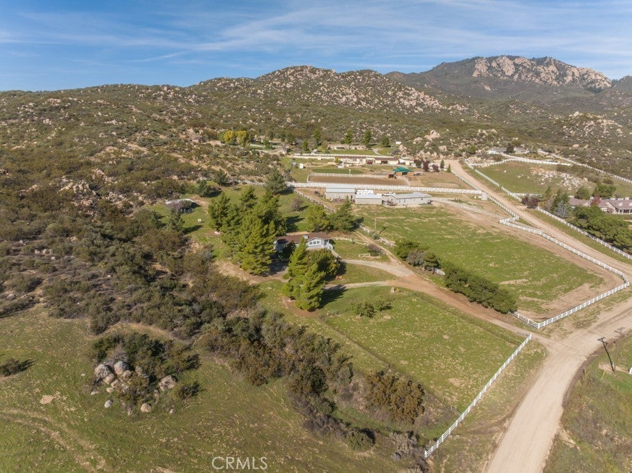 Oh So Beautiful!!!! Park setting on 4.10 Private Acres backing to open land/national forest with VIEWS!!!! This lovely, updated home will check all your boxes! Price, Location, Privacy, Spacious Land, Views and Updates!! Horse improvements include horse panel fenced in turnout with 3 sided shelter, tie up and direct access to trails. There is a detached 600SF garage with covered space behind AND a steel covered hay barn (or workshop, outdoor gym, parking (??). The entire property feels like a park from the moment you drive up the private entry passing your own Granny Smith Apple Orchard and continuing to the home privately tucked behind mature trees. The rear of the home opens to an expansive outdoor space with a spacious covered rear porch (see the pics!). Lots of mature trees with shade and room to add your own ideas as you want. This home has a nice bright open living space as the owners remodeled the kitchen which is open to the living space surrounded by windows to bring in the surrounding views! The kitchen remodel was approx. 6 years ago and includes a new oversized cooking center island, dining space combo, appliances, painted cabinets, custom copper farmer's sink, lighting and storage. Vinyl plank flooring has also been added in the living spaces, and the hall bath has been completely remodeled! ALL windows in the home and garage have been replaced with a lifetime warranty as has the living space sliding glass door. The exterior of the home was painted in 2023, the well has had upgrades with replaced booster pump and pressure tanks, and the garage door was recently replaced. You will find the primary bedroom spacious and enjoy waking up to beautiful views and trees. If you are an Equestrian, you will find yourself a few minutes away from miles of trails in the national forest behind or join your neighbors for a ride around the community and lake. If you enjoy walking and hiking, those same trails are available for your enjoyment. The Lake Riverside Community offers a private lake, tot lot, sports courts, picnic areas, pool, equestrian arena, and a private 3600 lighted airstrip (for community use only - guests okay). Cal Fire is located right within the gated community and Temecula is approx 25 min away offering all of the dining and shopping options you need! Also nearby enjoy Wine Country, Idyllwild, Julian and Palm Desert. So Cal's Last Frontier!!!!