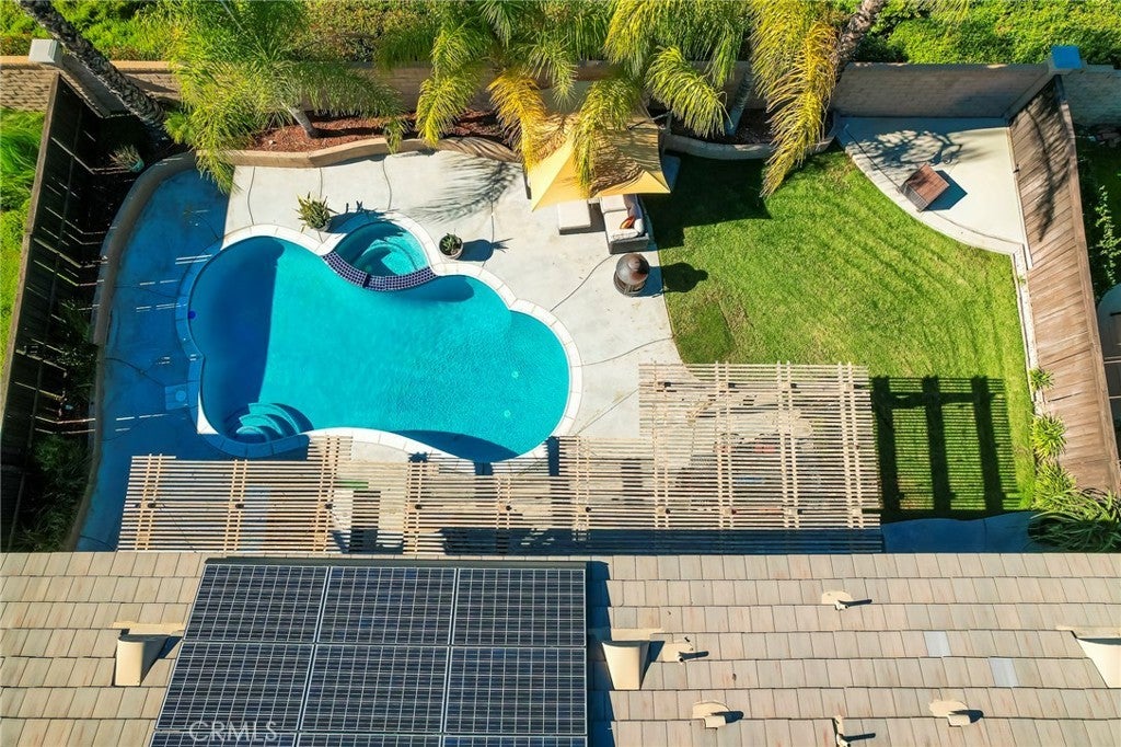 Welcome home to this beautifully upgraded, turn-key pool and spa property in the highly desirable Morningstar One community. This bright and spacious 6-bedroom, 3-bath home offers an exceptional layout with room for everyone, all within the highly regarded Temecula Valley Unified School District. Step inside to an open and inviting floor plan featuring a main-floor multi-generational suite conveniently located next to a full bathroom, ideal for guests, extended family, or private office space. The gourmet kitchen boasts a large island, double oven, extensive cabinetry, and upgraded appliances, all opening to a generous family room with views of the backyard. The oversized primary suite includes two walk-in closets and a spa-like ensuite bathroom with a soaking tub, separate shower, and dual sinks. Upstairs are four additional bedrooms, each with ceiling fans and ample closet space, plus a full bathroom. Enjoy resort-style living in the private backyard with no rear neighbors, a beautiful pool and spa, a recently installed pool heater, well-maintained pool equipment, lush landscaping, and a pergola spanning nearly the length of the home, perfect for relaxing or entertaining. Additional upgrades include dual-zone air conditioning with separate units for each floor, Tesla solar panels (buyer to assume low-cost lease), Nest thermostats, an electronic deadbolt, and high-end LVP flooring throughout the main level. Ideally located close to parks, shopping, dining, Wine Country, and more, this home offers comfort, convenience, and exceptional value. A must-see!