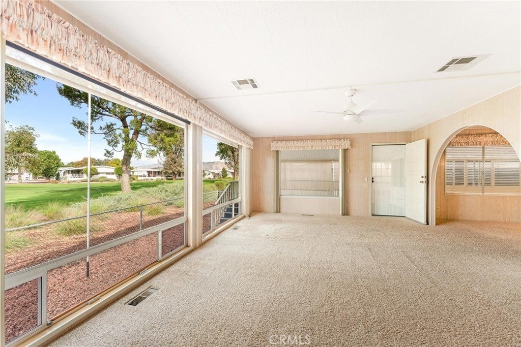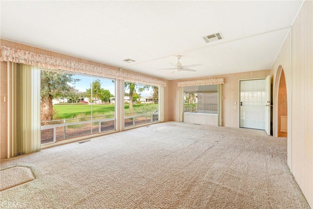 Step into your dream oasis with this exquisite 2-bedroom, 2-bathroom mobile home, perfectly situated on the golf course, offering stunning floor-to-ceiling windows that frame breathtaking mountain and fairway views. This updated and turnkey abode invites you in with its spacious bonus room and finished California room, ideal for entertaining or relaxing. The elegant formal living and dining areas are complemented by modern conveniences, including all appliances—washer and dryer included, both less than three years old! Indulge in the luxurious primary suite, boasting a sophisticated bathroom with a vanity area, a separate soaking tub, and a walk-in shower for your private retreat. Enjoy peace of mind with recent upgrades, including a new AC and water heater installed in 2019, as well as a roof installed in 2014, recently maintained to extend its life. With custom automatic window shades providing effortless elegance and accessibility features like a low-grade wheelchair ramp, this home caters to every need. A custom oversized storage shed and a large fenced yard await your furry friends, while the exclusive 55+ golf course resort community offers a vibrant lifestyle filled with social activities, from live music and taco Tuesdays to ample opportunities for golf, pickle ball, and shuffleboard. With picturesque lakes, stunning lighted fountains, and facilities that include a gym, outdoor BBQ areas, and a large dog park, this home isn’t just a place to live; it’s a gateway to a fulfilling lifestyle where every day can be an adventure. Don’t miss the chance to call this gem your own!
