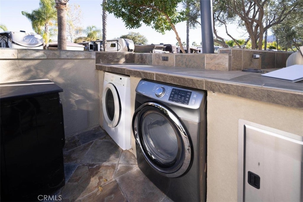 Massive Lot with all Slate Tile, Double Sided Fireplace and TV Island, Washer/Dryer, Built-In BBQ, DW, Ice Maker, Fridge and Large Island for Entertaining. The Double sided Fireplace allows multiple entertaining areas and views. Private Fire Pit is in a large back section with Views of the Great Outdoors/Mountains and lots of Privacy Trees. The Double sided waterfall at the front trickles in a great sound of Tranquility and makes you feel like your in Paradise. Looking for an RV Resort lot with space and privacy then come check out this perfect location nestled among the foothills of Palomar Mountain, minutes from Temecula Wine Country as well as a convenient location to Palm Springs in just under an hour, 1.5 hrs to San Diego and 1 hr to the beach in Oceanside. Rancho California RV Resort provides amenities such as a 14 hole Executive PAR 3 Golf Course (no fees for owners), 5 Pools/Jacuzzis, Tennis courts, Pickleball courts, Dog park, Club house, hiking trails, Horseshoe lawn and onsite grocery market. The resort is guard gated with no age restrictions. Monthly HOA fee includes use of the golf course, amenities, trash pickup at lot, water/sewer and common area maintenance. If you are considering a premier Southern California RV destination, don't miss out on visiting Rancho California RV Resort - schedule a showing today! Financing Available.....