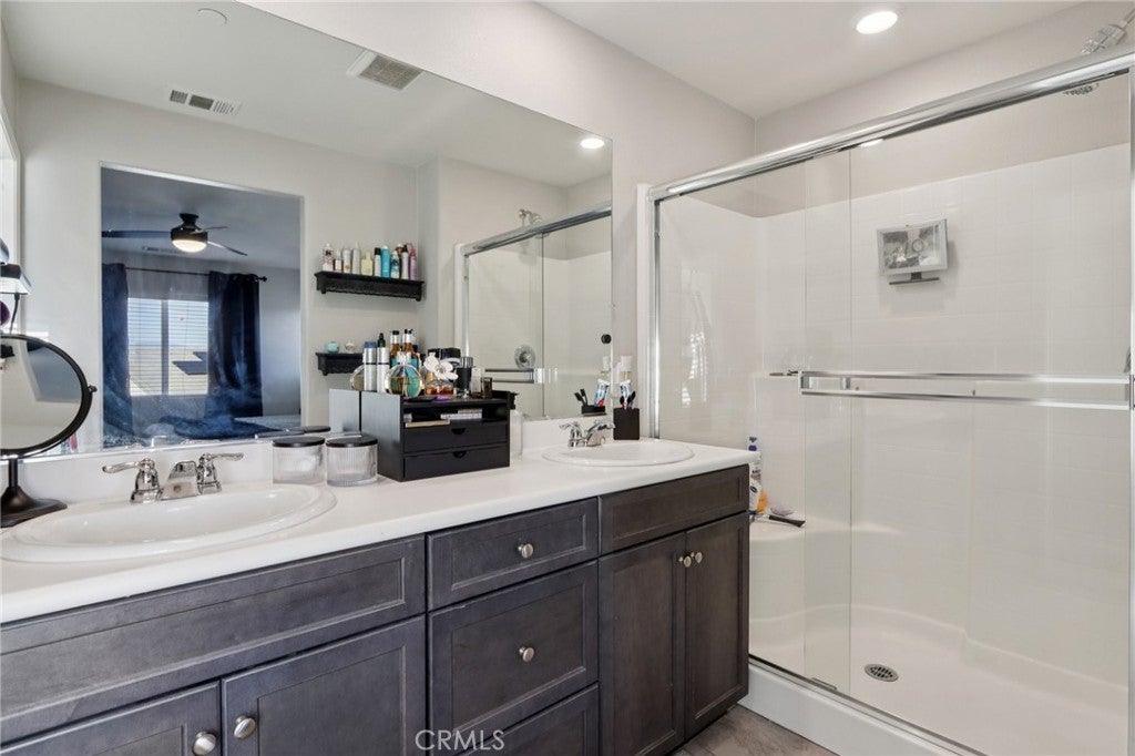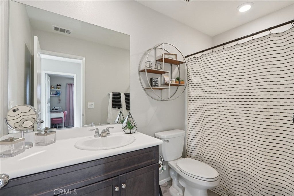 Welcome to this beautifully upgraded home situated on a quiet cul-de-sac with no HOA and desirable RV parking potential. Step inside to find vinyl flooring throughout the downstairs, leading to a spacious kitchen complete with a walk-in pantry, ample counter space, and room to entertain. The home offers thoughtful features throughout, including LED lighting, an upstairs linen closet for extra storage, and a QuietCool whole-house fan to keep energy costs low. The primary bedroom is generously sized and features a large walk-in closet. Enjoy outdoor living year-round with a low-maintenance backyard featuring artificial turf and a durable Alumawood patio cover—perfect for relaxing or entertaining. The epoxy-coated garage floor adds a clean, upgraded touch with long-lasting durability. Don’t miss this rare opportunity to own a move-in ready home packed with upgrades, convenience, and comfort in a fantastic location.