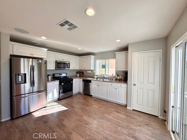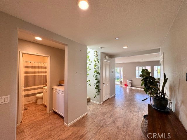 Welcome to your two story dream home in Winchester! This stunning 4 bedroom residence is situated on a spacious cul-de-sac lot and features a 2 car garage. Enter inside to a bright and airy interior, where high ceilings, upgraded flooring, and large windows fill the home with natural light. The main level boasts an open concept layout that seamlessly connects the living room, kitchen, and dining area. The kitchen is beautifully designed with white cabinetry, granite countertops, stainless steel appliances (including a refrigerator), and a pantry for ample storage. This level also includes a bedroom and full bathroom, direct garage access, and additional storage space. Upstairs, you’ll find a generous loft making it ideal for a home office, playroom, or entertainment area. The remaining bedrooms are thoughtfully positioned for comfort and privacy, with convenient access to nearby bathrooms and an oversized laundry room with extra storage (washer and dryer are NOT included). The primary suite serves as a tranquil retreat, offering large windows, abundant natural light, and an ensuite bathroom featuring dual sinks, a spacious shower, and a walk-in closet. Outside, the expansive backyard is perfect for entertaining or relaxing, complete with a covered patio, a large grassy area, an open patio space, and plenty of room to enjoy. Landscaping is included, so you won’t need to worry about the upkeep! This home also includes a water softener system! Don’t miss your chance to make this exceptional home yours, schedule a showing today!