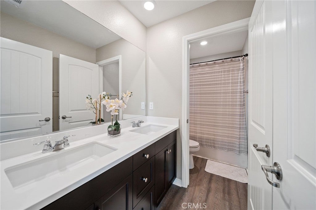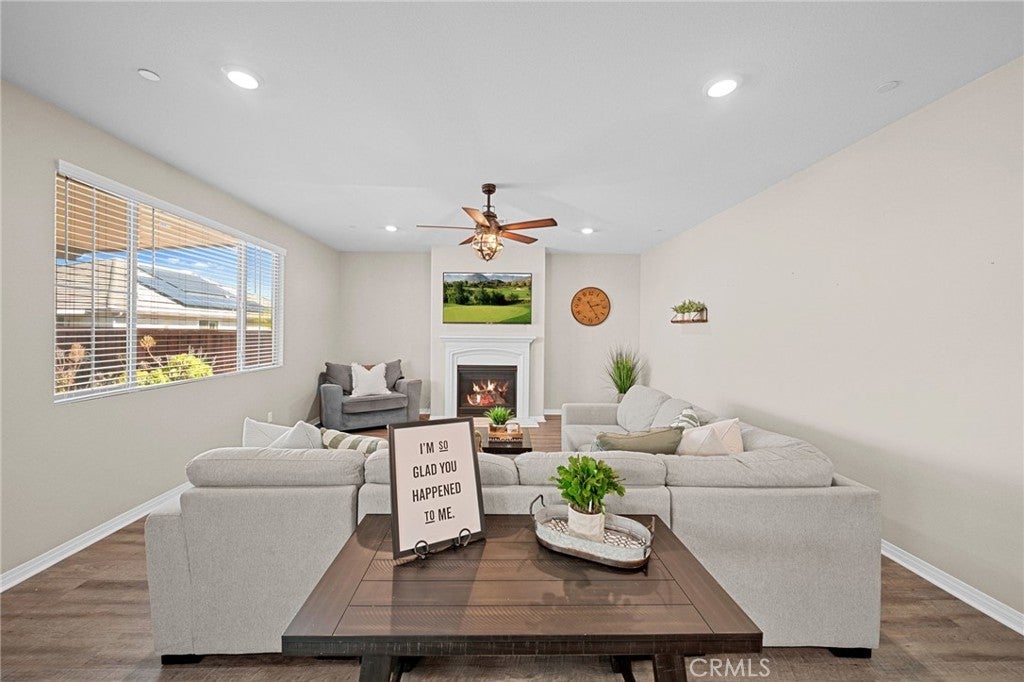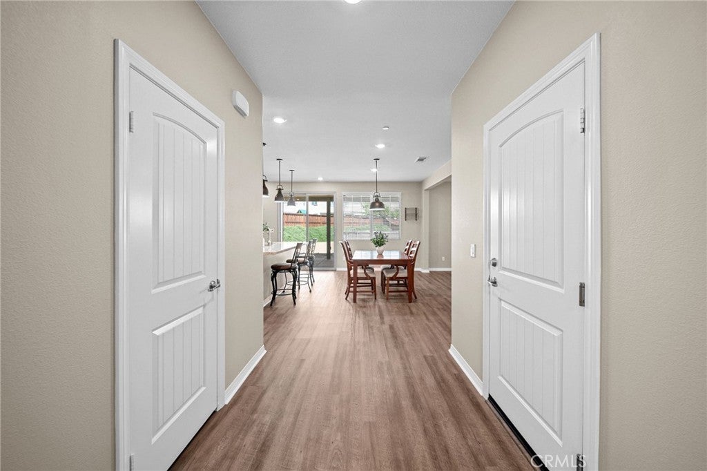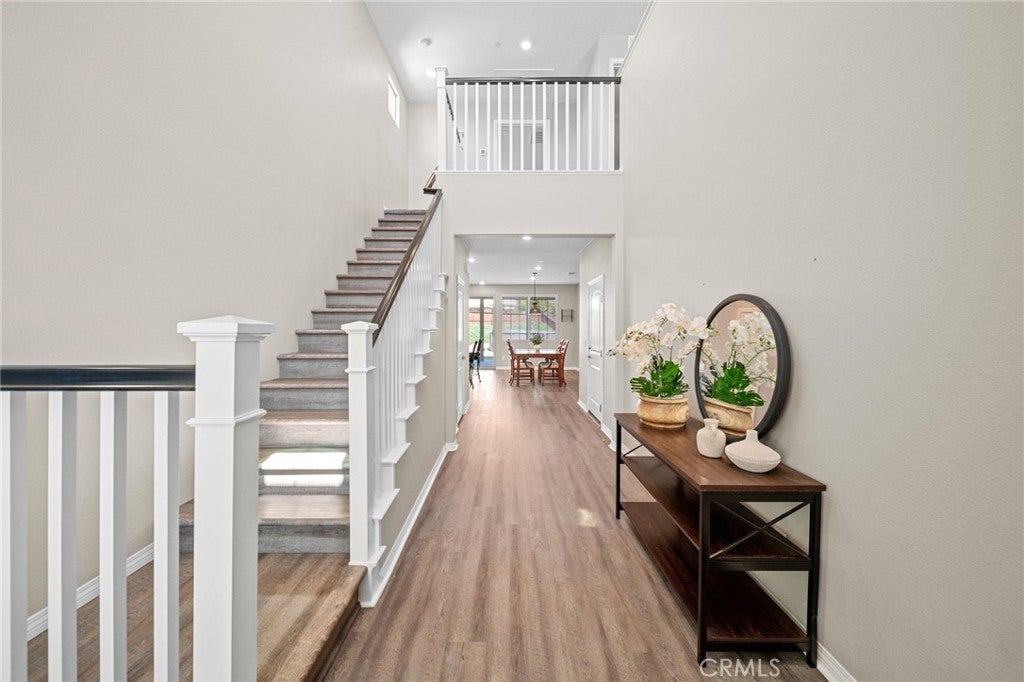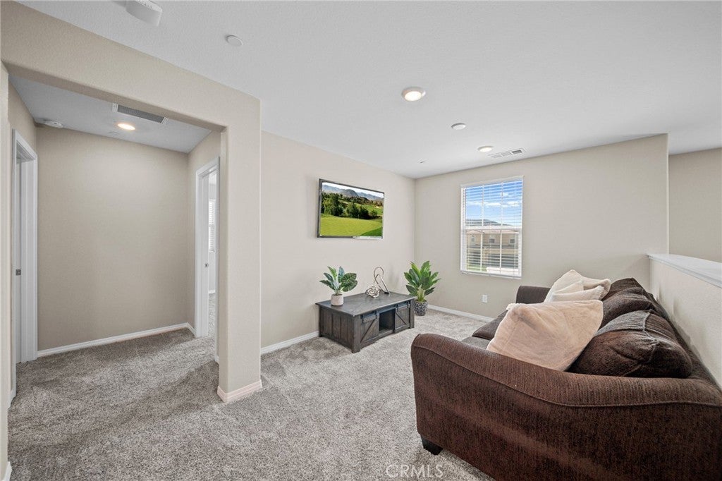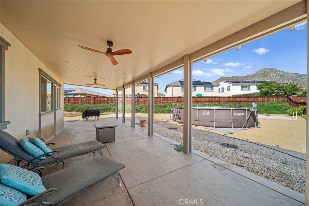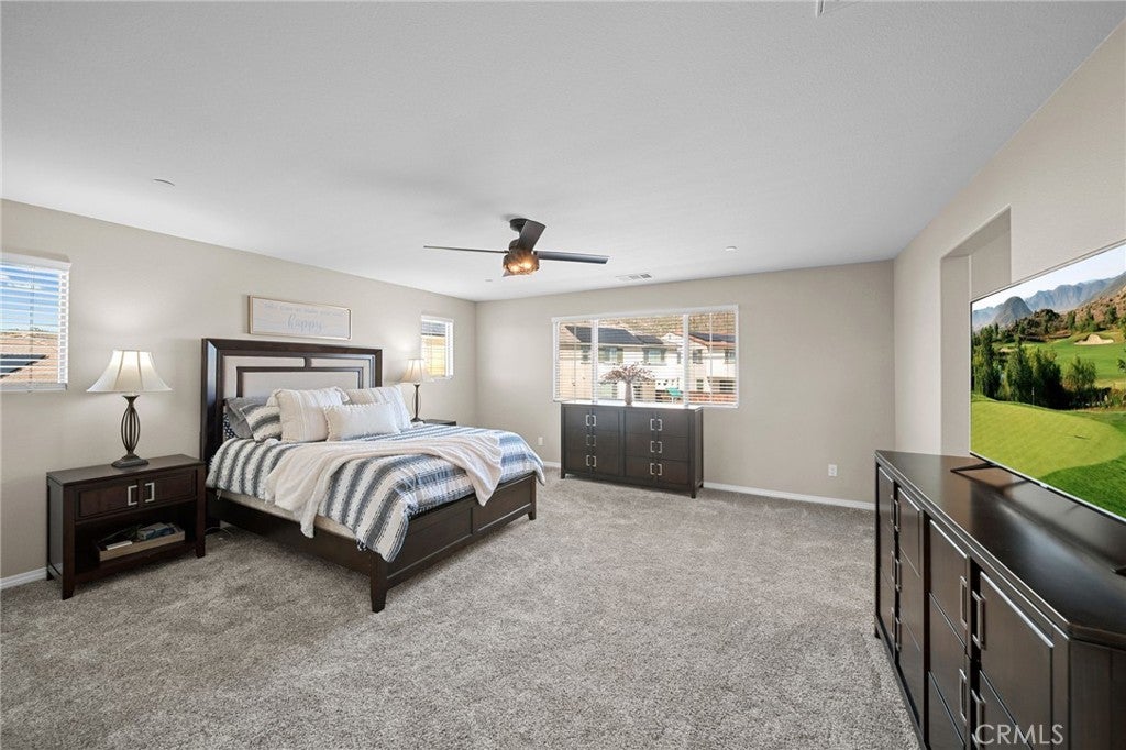 Welcome to your dream home in the prestigious Heritage Lake community of Menifee! Tucked away at the end of a peaceful cul-de-sac, this beautifully upgraded home offers one of the largest lots in the neighborhood, providing exceptional space, privacy, and versatility. Upon entering, you are greeted by a grand formal entry with soaring two-story ceilings and an abundance of natural light. The open-concept floor plan creates a warm and inviting atmosphere that flows seamlessly throughout the home. At the heart of the home is a stunning gourmet kitchen, featuring high-end stainless-steel appliances, a spacious center island, double ovens, a built-in range, and a walk-in pantry. This space effortlessly connects to the dining area and family room, creating the perfect environment for both entertaining and relaxing with loved ones. The thoughtfully designed floor-plan includes a full bedroom and bathroom on the main level, ideal for guests or multi-generational living. Upstairs, you'll discover a spacious loft, two additional bedrooms, a full bathroom, and a well-appointed laundry room with ample storage. The large primary suite features mountain views and a relaxing, spa-inspired bathroom with a walk-in shower, soaking tub, dual sinks, and a walk-in closet. The backyard is built for entertaining, featuring stamped concrete, a full-length Alumna-wood patio cover with ceiling fans, and plenty of space to add a pool, outdoor kitchen, sports court, or anything your imagination can envision. Additional highlights include a whole-house WiFi WAP system for seamless connectivity, energy-efficient solar panels, a Quiet-Cool attic fan, and a direct-access garage with built-in shelving for added convenience. The home is also enhanced with gorgeous new luxury vinyl plank flooring and modern fixtures throughout. Enjoy the many resort-style amenities of Heritage Lake, including a private 25-acre lake with paddle boats and catch-and-release fishing, two Jr. Olympic-sized pools, a splash pad, multiple playgrounds, sport courts, a fitness trail with outdoor exercise equipment, a rentable clubhouse, and year-round community events. You'll love the peaceful setting and the close proximity to shopping, dining, schools, and easy freeway access. This home offers an incredible blend of space, style, and an unbeatable lifestyle!