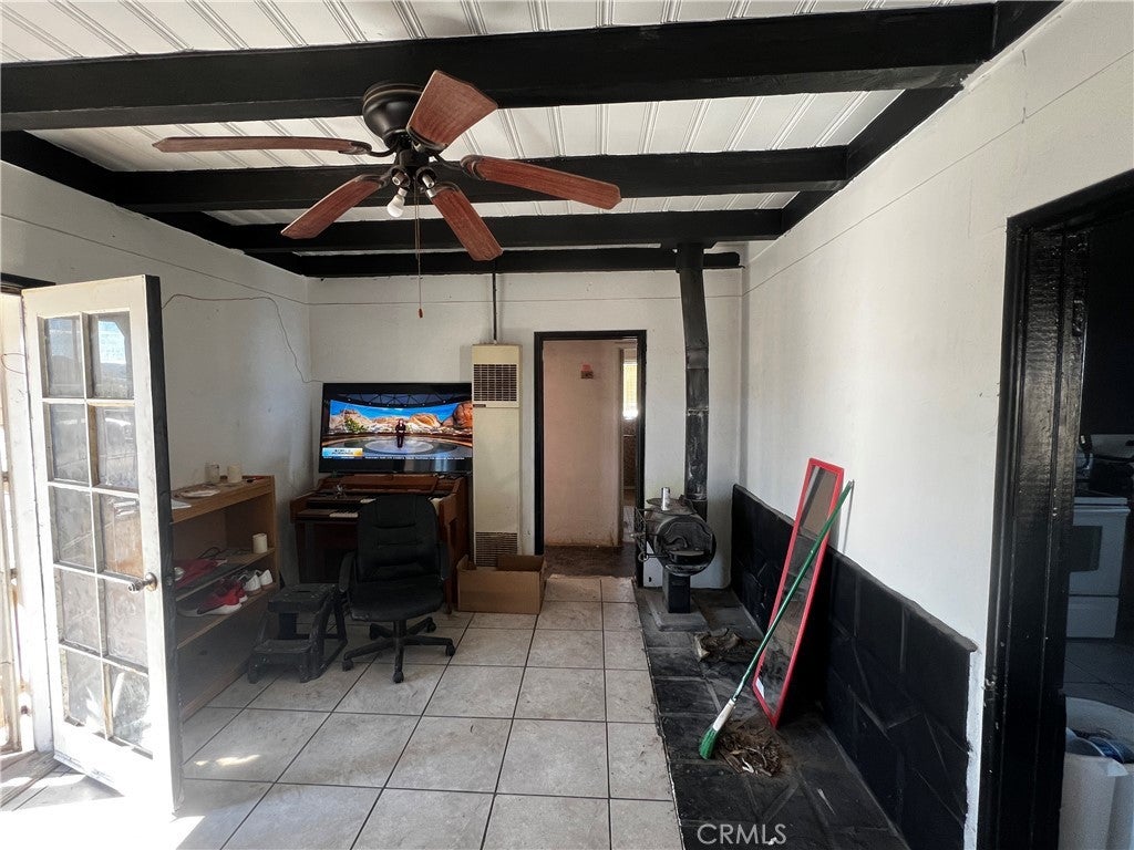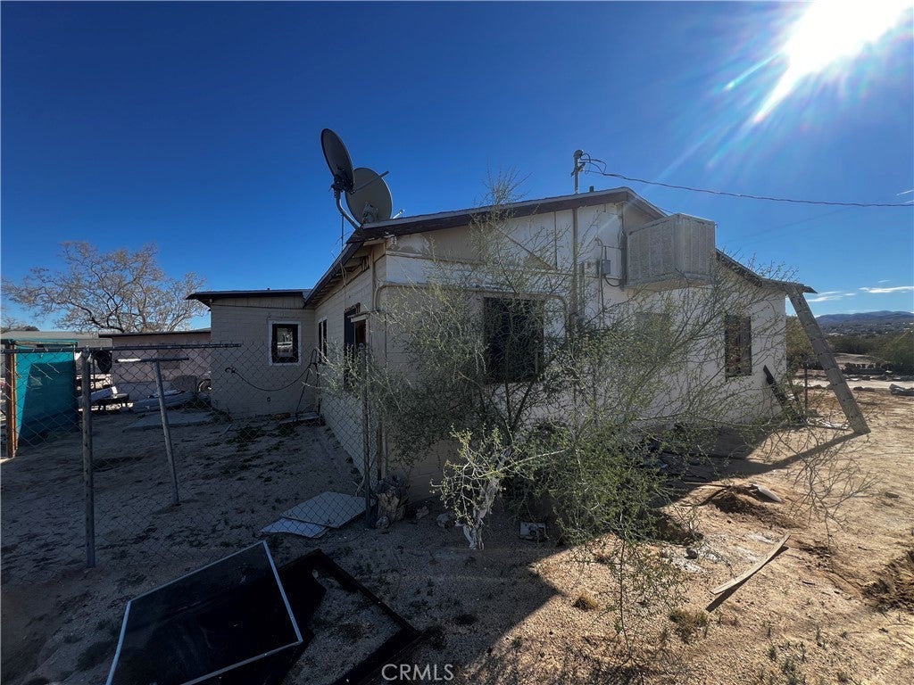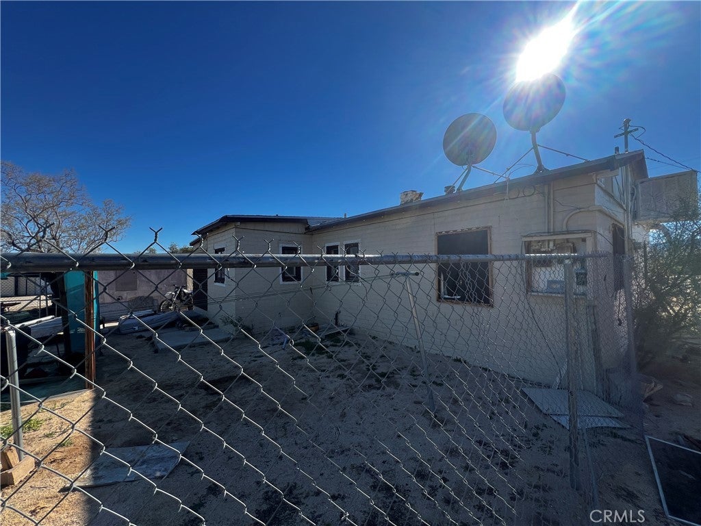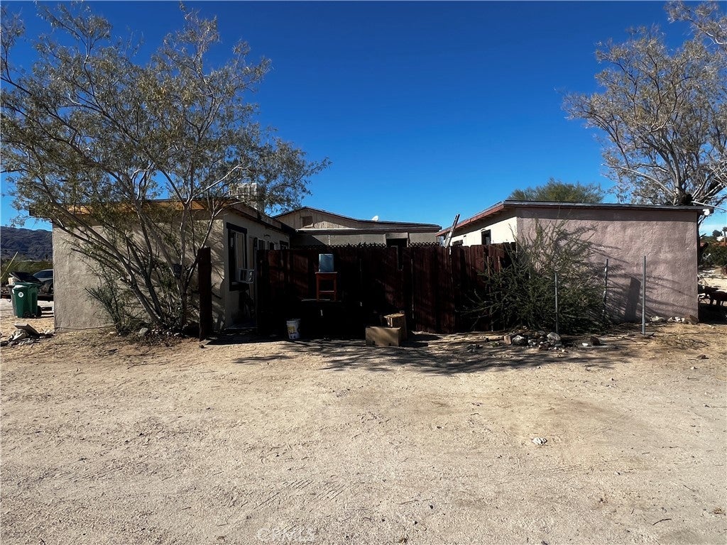 Welcome to 74262 El Paseo Dr. in 29 Palms, California—a rare multi-structure property with tremendous sweat-equity potential. Situated on nearly three-quarters of an acre, this unique compound features three separate structures surrounding a central courtyard. The main residence is a two-bedroom, one-bath block-construction home with impressive open-beam wood ceilings, a spacious floor plan, a generous bathroom, tile flooring throughout most of the home, and an enclosed laundry area plus a screened porch. The second structure, though not reflected in current tax records due to the age of the property, includes two bedrooms, one bath, and a kitchen, offering flexibility for future use. The third structure is an oversized laundry room/workshop, providing valuable additional utility space. While the property will require a full rehab, the roof appears free of obvious leaks and the overall bones feel solid, making this an excellent candidate for transformation. In addition, a separate lot located directly behind the property is available for purchase, and the home next door is also for sale, creating a unique opportunity for buyers seeking to assemble a large multi-property compound.