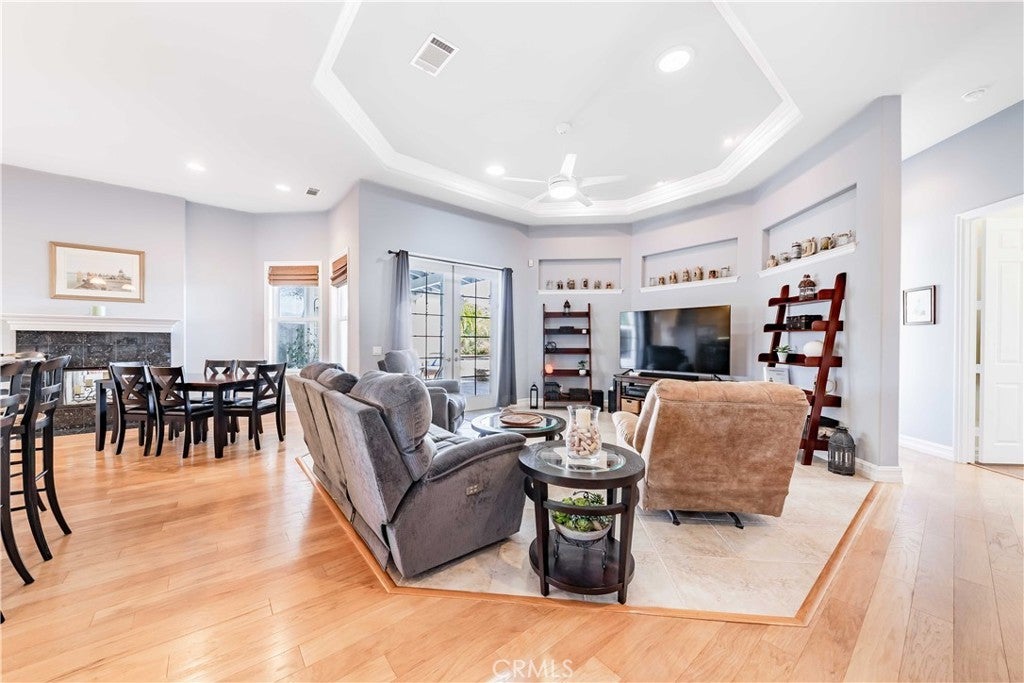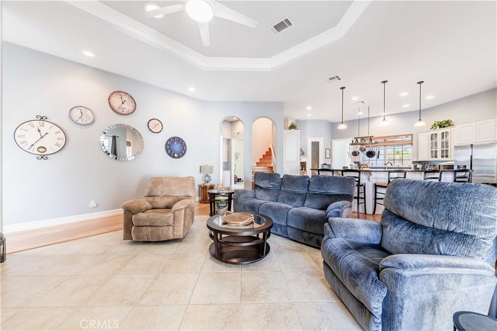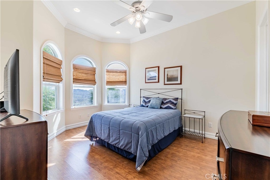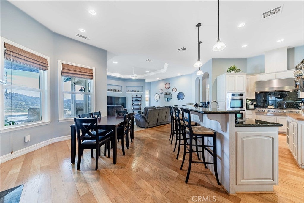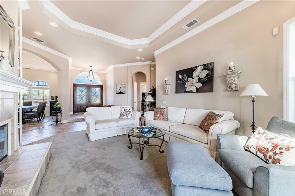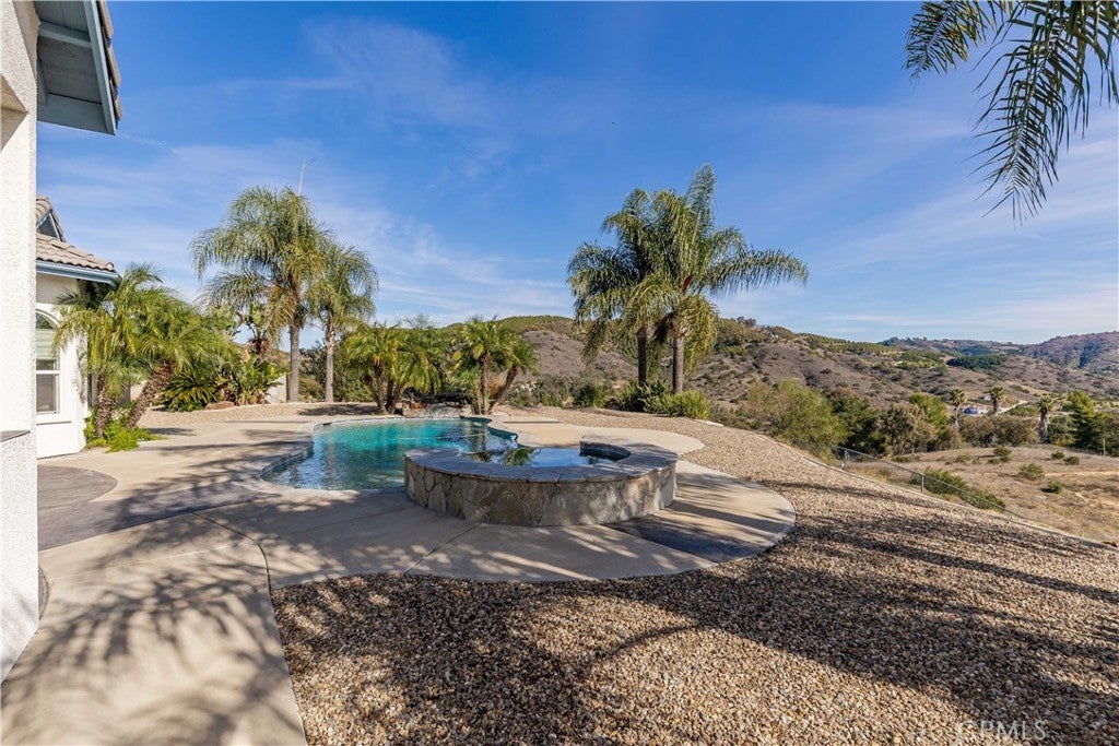 Welcome to 25025 Las Palmeras Drive, a commanding Mediterranean estate perched atop nearly five acres within the unmatched De Luz community of Temecula. From the moment you pass through the dual-gated entry and travel up the long, palm-lined driveway, this property delivers an extraordinary sense of arrival. Perfectly positioned on a hilltop with panoramic views of rolling hills, lush groves, and the entire De Luz valley, this home offers unmatched privacy, incredible scale, and the ultimate Southern California lifestyle. Built with timeless craftsmanship and meticulously maintained, the residence spans 4,275 sq. ft. and features soaring 11–12 foot coffered ceilings, extensive crown molding, solid oak flooring, and natural light flooding in from every angle. The grand foyer opens to formal living spaces anchored by a two-sided fireplace, French doors, and expansive windows framing the breathtaking views. The chef’s kitchen is both elegant and functional, offering granite countertops, custom white oak cabinetry, high-end appliances, a pot filler, double ovens, two islands, a veggie sink, and abundant storage—perfect for both everyday living and large-scale entertaining. All bedrooms are located on the main level, each oversized, ensuite, and beautifully appointed. The primary suite is a true retreat, complete with an enormous walk-in closet, luxurious soaking tub, spa-like shower, and private access to outdoor patios. Upstairs, a spectacular game room and wet bar serve as the ultimate entertainment space, complete with its own full bath and a balcony overlooking some of the most stunning vistas in all of Temecula. The outdoor living experience is resort caliber. A custom pool with spa and waterfall sits at the edge of the property, capturing sweeping hilltop views. The outdoor kitchen, fire pit, shaded lounge areas, and expansive patio space make this estate ideal for gatherings of any size. The grounds also feature low-maintenance landscaping, Birds of Paradise, manicured lawns, RV parking, space for 20+ vehicles, multiple flat pads ideal for an ADU or future development, and a charming walking path with a wooden bridge over a seasonal ravine. Located just minutes from Old Town Temecula, Wine Country, and the I-15, this home offers the best of privacy, convenience, and the coveted De Luz lifestyle. 25025 Las Palmeras Drive is a rare hilltop sanctuary offering space, elegance, and spectacular views in one unforgettable package.