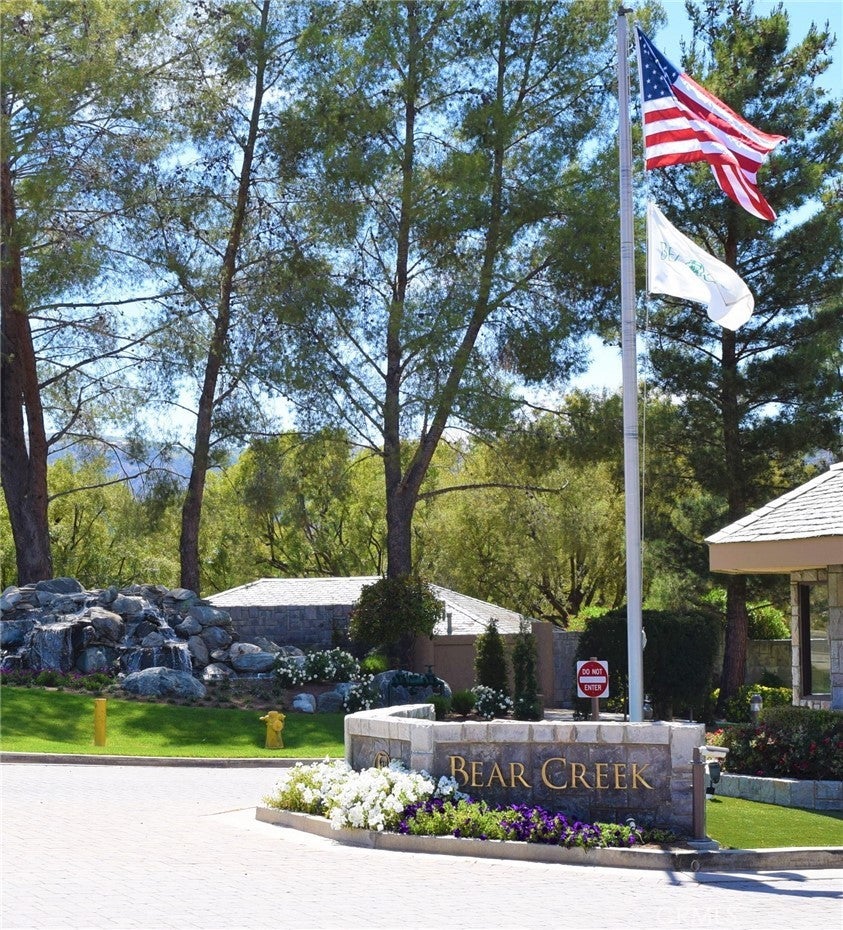Start 2026 in a beautiful new home! Location, Location, Location with breathtaking mountain views, sunset views and seasonal creek views. This home is located in the highly desirable gated, golf course community of Bear Creek. The gated community amenities include 24/7 security patrol, a community center with weight rooms, cardio rooms, a huge, heated swimming pool, spa, 6 tennis courts, 4 Pickleball courts, Bocce ball courts, locker rooms, sauna rooms, an event room with kitchen and more. The community also provides many social events and activities throughout the year. This prestigious Jack Nicklaus signature golf course has lush greens surrounded by beautiful mountain views and offers fine dining at the Clubhouse. The Bear Creek Golf Club has social and golf memberships available. This property has a fully fenced pie-shaped yard surrounded by mature trees. It’s located at the end of a quiet cul-de-sac with no one behind, just a gorgeous view of nature to start and end your day, all with low taxes and no Mello-Roos. This spacious single-story detached home has vaulted ceilings, a large living room with fireplace, dining area, 3 bedrooms, 2 bathrooms and spectacular views. The dining room, primary bedroom and sunroom all have sliding glass doors that open to the quiet, fully landscaped, low water use, low maintenance side and backyard. The yard is planted Kurapia - a pet friendly, highly versatile, drought tolerant ground cover. The newly enclosed covered patio sunroom has energy efficient floor to ceiling window walls. Bedroom 3 is currently configured as an office. Don't miss out on this fabulous home! This unattached condo is located in the “Retreat” of Bear Creek, a private cul-de-sac enclave of 20 single-level detached homes within the Bear Creek gates with all Bear Creek has to offer. The Retreat has the lowest HOA fees of all the condo sub associations in Bear Creek. This home is located near the south gate for quick entry and exit for your convenience. It’s a wonderful place to live! Come see for yourself.