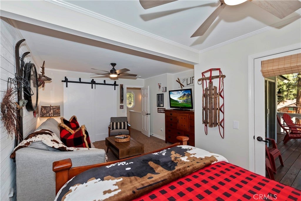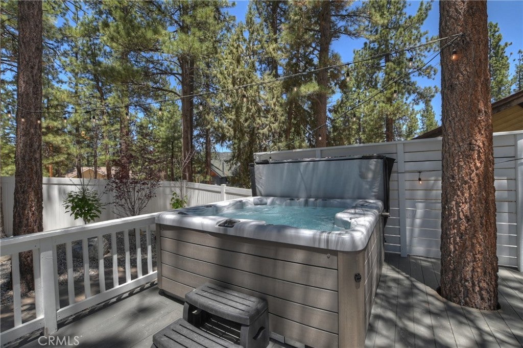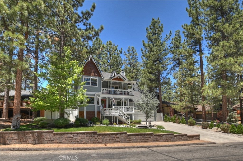 BIG BEAR HOME IN THE MOUNTAINS. 3 BD 2 BA HOME WITH AN ADDITIONAL ROOM FOR AN OFFICE OR 4TH BEDROOM. PRIVATE DECK OFF THE MASTER. WOOD FLOORS, FENCED AND LEVEL LOT WITH Balconies off of each bedroom, SPA. 2 CAR GARAGE WITH ADDITIONAL (room) SPACE ABOVE. Driveway will fit 6 cars, LOW MAINTENANCE LANDSCAPING! GREAT NEIGHBORHOOD CLOSE TO SLOPES & TOWN. Vintage look kitchen with real wood flooring! Claw foot soaking tub in bathroom. This beauty has AC! This home has plenty of space for entertaining family and friends. Garage fits 2 cars, currently is being used as game room w/ upper loft with workout space, shelving, cabinets, racks for snowboards and skis, bike racks, kayak storage racks. Lower garage- epoxy floor, dry bar built in w/cabinets and built in fridge. New vinyl fencing. Roof is 3 years , exterior recently painted, upgraded electrical panel, new dual pane windows throughout w/gorgeous bamboo blinds throughout.Above ground spa. Meticulously maintained. Buyer will not need to do anything, just move in, kick up your feet and enjoy the quiet & peaceful neighborhood. Front & backyard professional landscaped w/irrigation. Furnishings not included.
