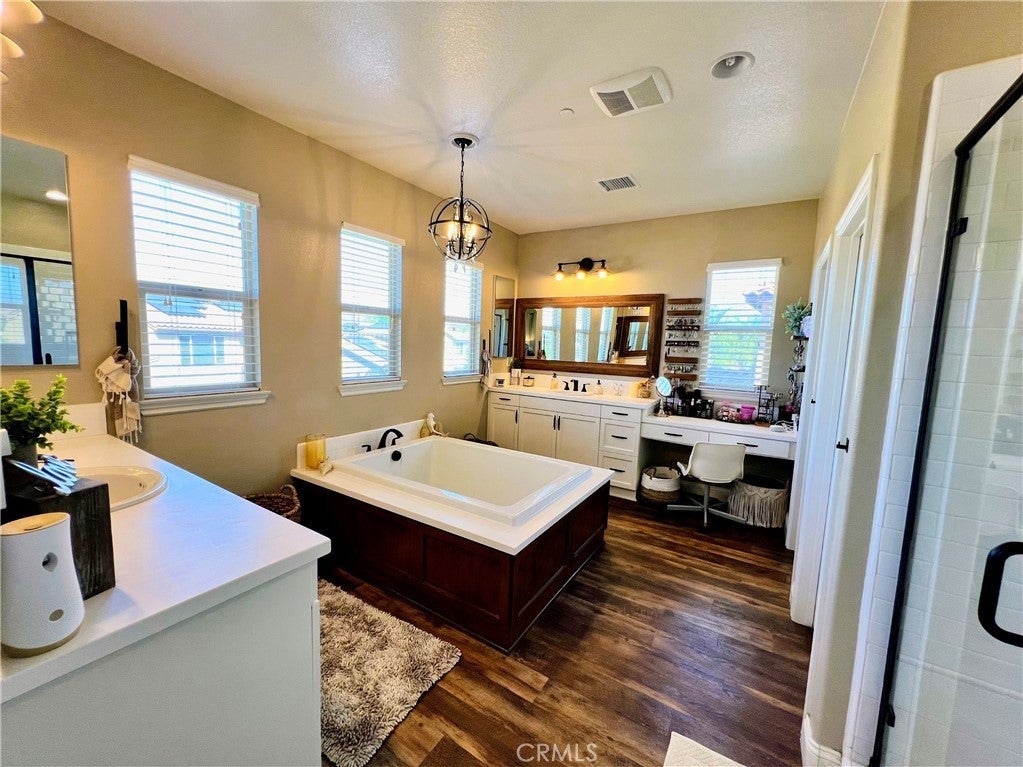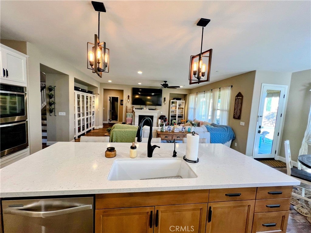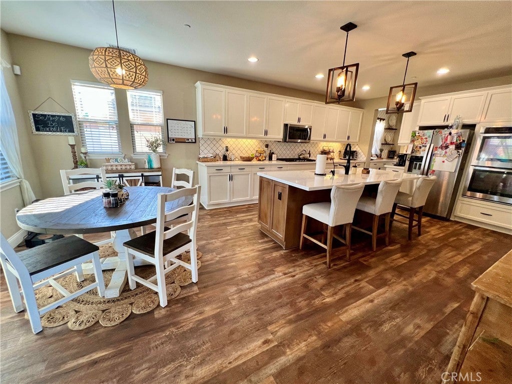 Don't miss this incredibly beautiful home just reduced and ready to make family memories for years to come. More than move in ready, large family home! Beautiful custom bathrooms for your guests and yourself! Many other custom touches throughout! Five bedroom/three bath home with stunning Boho/Farmhouse style, and with one bedroom and bathroom on the main floor. Plenty of room to entertain with a living, a dining and a great room, and oversized kitchen with room for a breakfast table as well. The kitchen boasts double ovens, a very large island with quartz countertops and custom backsplash, with dozens of cabinets. In addition, there is an extra large butler’s pantry and prep area between kitchen and dining. The large backyard with built in patio is great for those with a large group of family and friends. The side yard could easily be converted into RV parking on this large lot. The three car tandem garage has had the tandem area fully converted to a home gym, complete with its own AC unit for comfort. Once again, perfect for the health conscious family on the go, saving the precious travel time to the local gym! All bathrooms have upgraded countertops, and several with rustic cabinetry and floor to ceiling custom tile. There are more extra large storage closets upstairs with built in shelving and customization. Four of the bedrooms and the laundry is conveniently located upstairs. Oversized primary bedroom and large en-suite with large tub is the perfect sanctuary after a busy day. If all of this is not enough? This home also has paid off solar and a whole house water softener/filtration system! The seller is also willing to leave a few of the perfectly selected and fitting pieces in this stylish family home. This one is a must see for those needing lots of room for family and storage, yet not wanting to compromise on style!