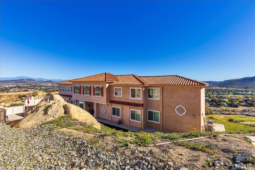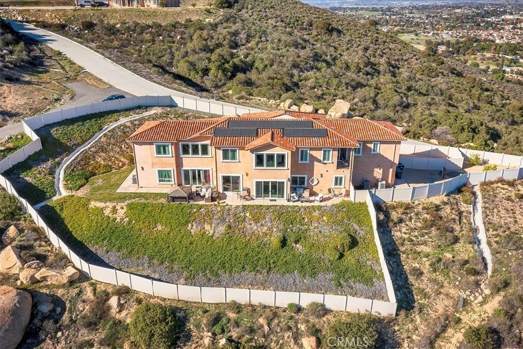 Elevated to capture breathtaking panoramic views of city lights, the golf course, and the mountains, this exceptional 2022 custom estate offers refined living across 5,057 sq. ft. on 6.31 private acres. Designed for luxury and comfort, the home features 5 ensuite bedrooms which includes dual primary suites plus 2 powder rooms. Closets were professionally done by the Container Store. The residence showcases sophisticated living spaces including two offices, billiard room (pool table negotiable), 3 wet bars, sound system throughout including the 3 car garage. Thoughtful details continue with Plantation shutters, professionally designed kitchen and premium built-ins, laundry room with a dog wash station. Move-in ready, the home includes all kitchen appliances. Outdoor living is elevated with a free-standing jacuzzi, BBQ island, and breathtaking views from every angle. Additional amenities include owned solar, plus a 1,300 sq. ft. (approx) detached garage/shed, gated entry, low HOA, and favorable low taxes. Supported by septic, propane, and a nearby high-pressure fire hydrant. A rare opportunity to own a turnkey luxury estate with extraordinary views and amazing privacy.