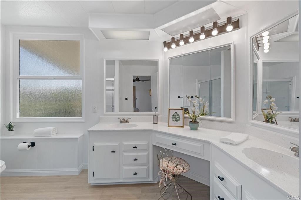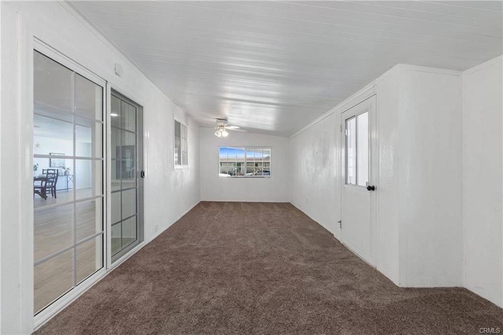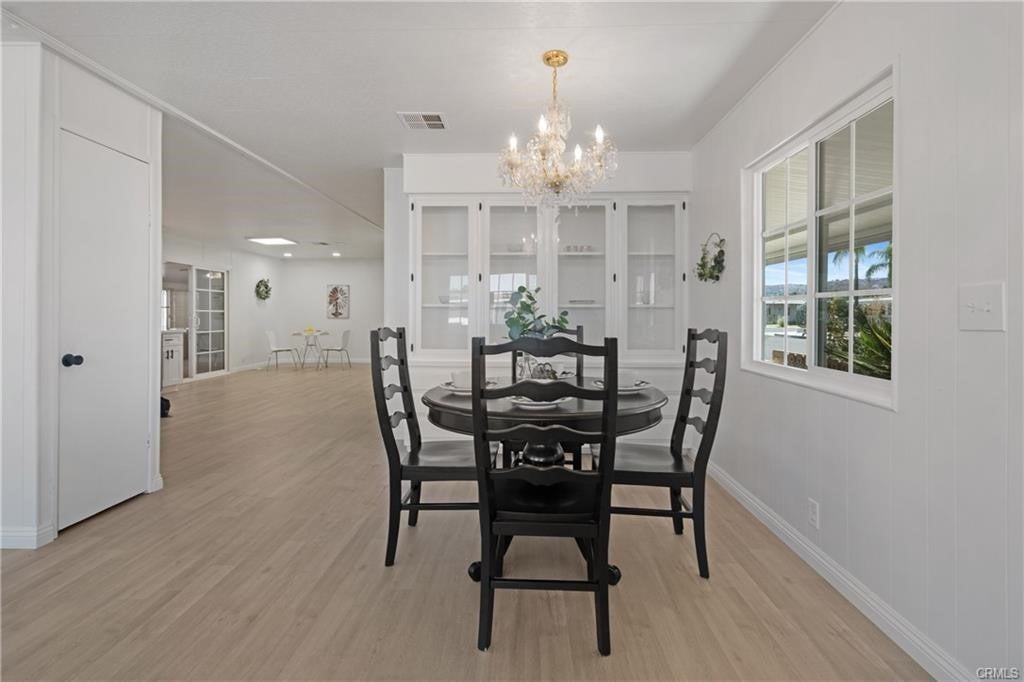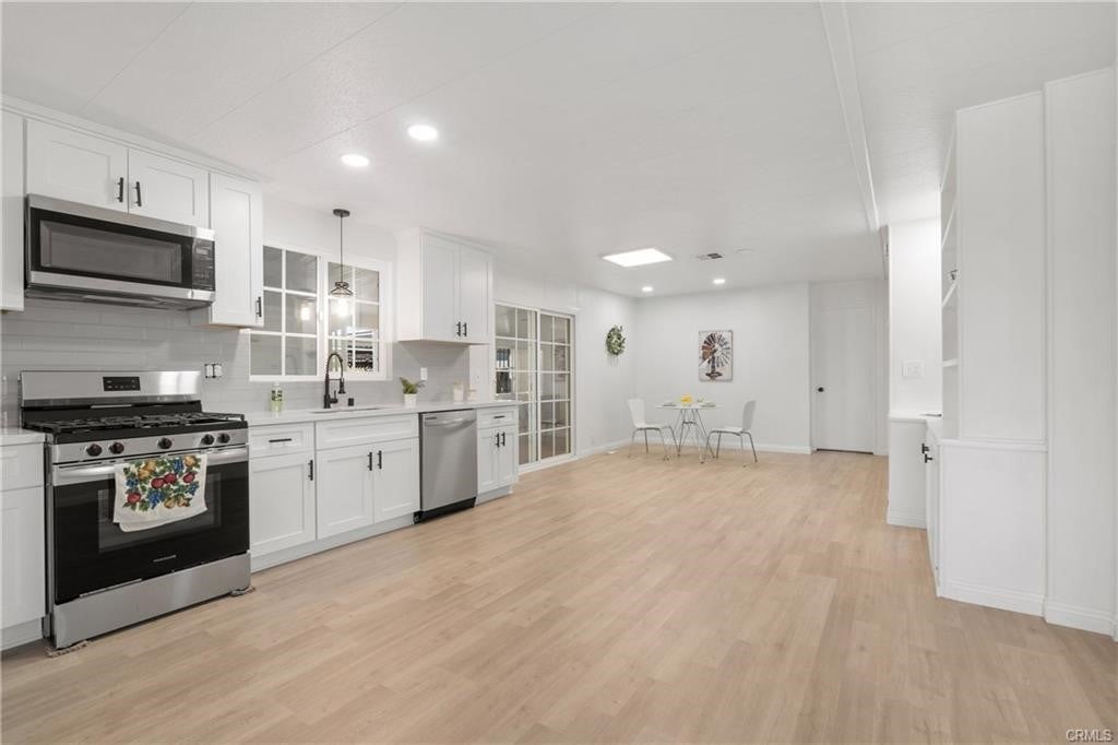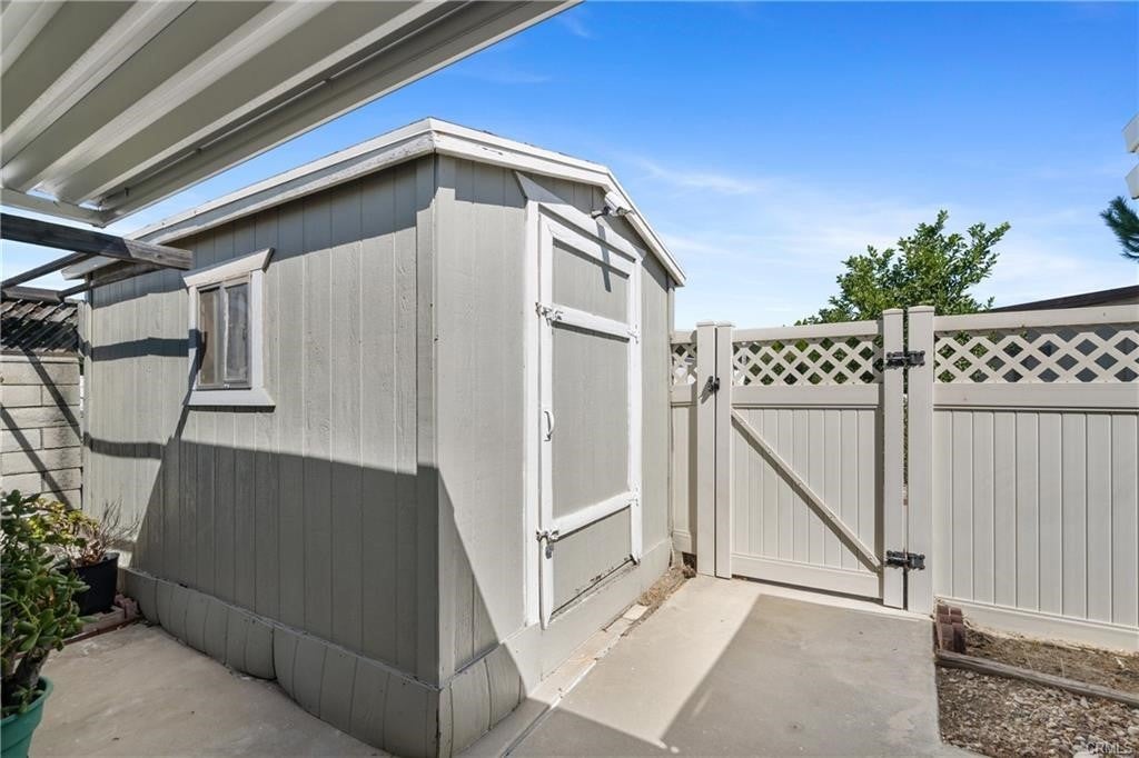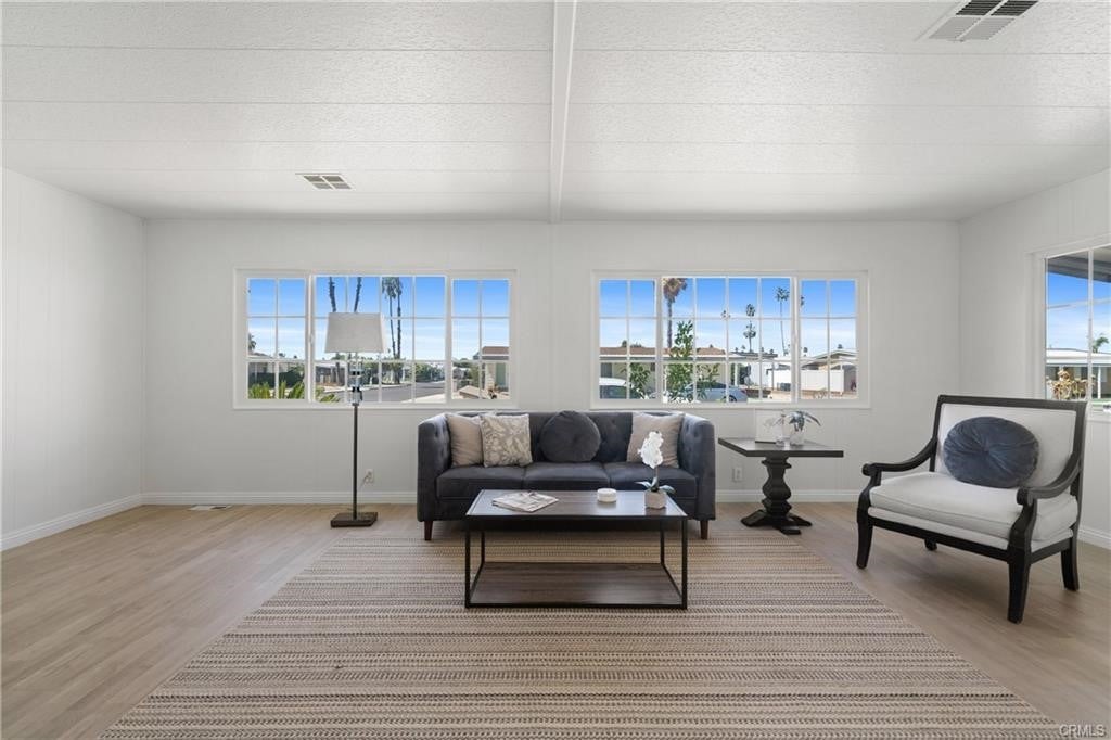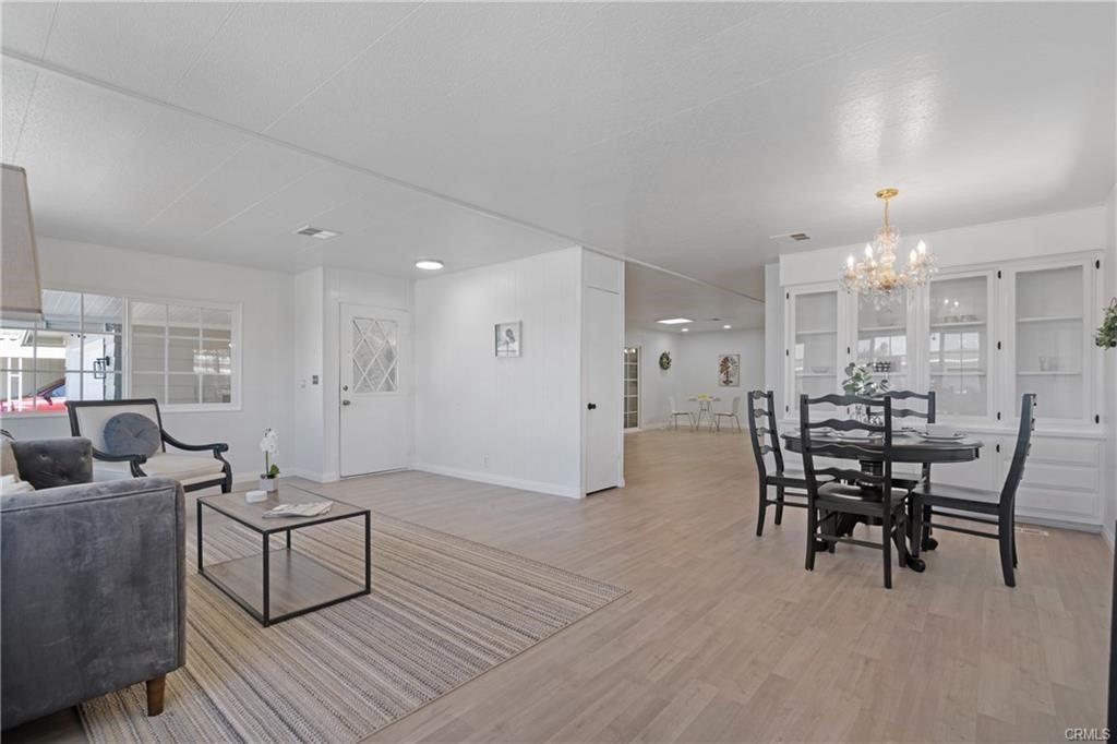 Welcome to this beautifully updated home located in the 55+ community of Sierra Dawn Estates in Hemet, CA. This spacious 2-bedroom, 2-bathroom manufactured home offers 1,440 sq-ft of comfortable living space on a large corner lot and best of all, you own the land with no space rent! Move-in ready and fully renovated, this property features a bright and open layout with a large living room, spacious recreation room, and a beautifully upgraded kitchen complete with new self-closing cabinets, quartz countertops, new stainless steel sink and faucet, built-in microwave, and brand-new appliances. Fresh interior and exterior paint, new dual-pane windows, recessed lighting, updated light fixtures, and a new roof add to the home’s modern appeal. The primary suite offers two walk-in closets, while both bathrooms provide comfort and function. Enjoy the outdoors on the cozy covered patio with decking, and take advantage of the fully fenced lot with a separate large storage structure—perfect for hobbies, tools, or extra storage. Additional highlights include a 1-car garage, low taxes, and a low HOA with access to community amenities. Conveniently located near shopping centers, dining, parks, and medical facilities, this home combines affordability, lifestyle, and comfort in one of Hemet’s most established senior communities. Don't miss this incredible opportunity.