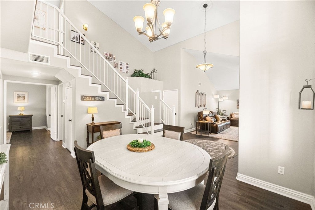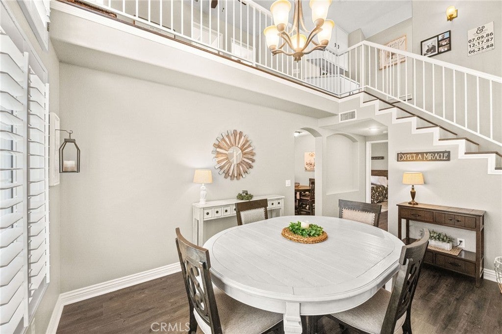 Welcome Home, to 6055 Spanish Trail Cove, a beautifully upgraded “Muirfield” model in the highly sought-after Sun Lakes Country Club, a premier 55+ guard-gated community offering a True resort-style lifestyle. This meticulously maintained home features 3 bedrooms, 2.5 bathrooms, a family room, living room, dining room, and loft, with the Master suite conveniently located on the main level. Upstairs, two guest bedrooms offer privacy and comfort for visitors or family. Step through the double front doors and be greeted by soaring cathedral ceilings, rich luxury vinyl plank flooring, and abundant natural light streaming through plantation-shuttered windows. The remodeled kitchen is a chef’s dream with granite countertops, a large island with breakfast bar, upgraded stainless steel appliances, and a cozy fireplace. Sliding glass doors lead to a cheerful backyard with a covered Alumawood patio, multiple ceiling fans, mature landscaping, and fruit trees complete with a full drip sprinkler-system for ease —perfect for entertaining or relaxing in the shade. The master suite offers a vaulted ceiling, ceiling fan, and a partially remodeled ensuite bathroom with dual granite vanities, walk-in shower, and spacious walk-in closet. Custom molding and elegant finishes continue upstairs, enhancing the charm and character of the home. Additional highlights include a recently redone roof, newer HVAC system, and an Included golf cart, and all appliances, ensuring a true move-in-ready experience. Sun Lakes Country Club is an active, vibrant community featuring two 18-hole golf courses, driving range, putting greens, three clubhouses, three fitness centers, indoor and outdoor pools/spas, tennis, pickleball, paddle tennis, bocce courts, billiards, restaurants, lounges, and over 80 clubs and social groups. HOA dues include cable TV and internet, and the neighborhood offers meticulously maintained front yards, walking trails, and year-round events. With low taxes, no Mello Roos, and unmatched pride of ownership, this home perfectly blends comfort, convenience, and elegance. Discover the lifestyle you deserve—truly all the amenities you could ever want, right at your doorstep. Call today to schedule your private tour and experience 6055 Spanish Trail Cove for yourself!
