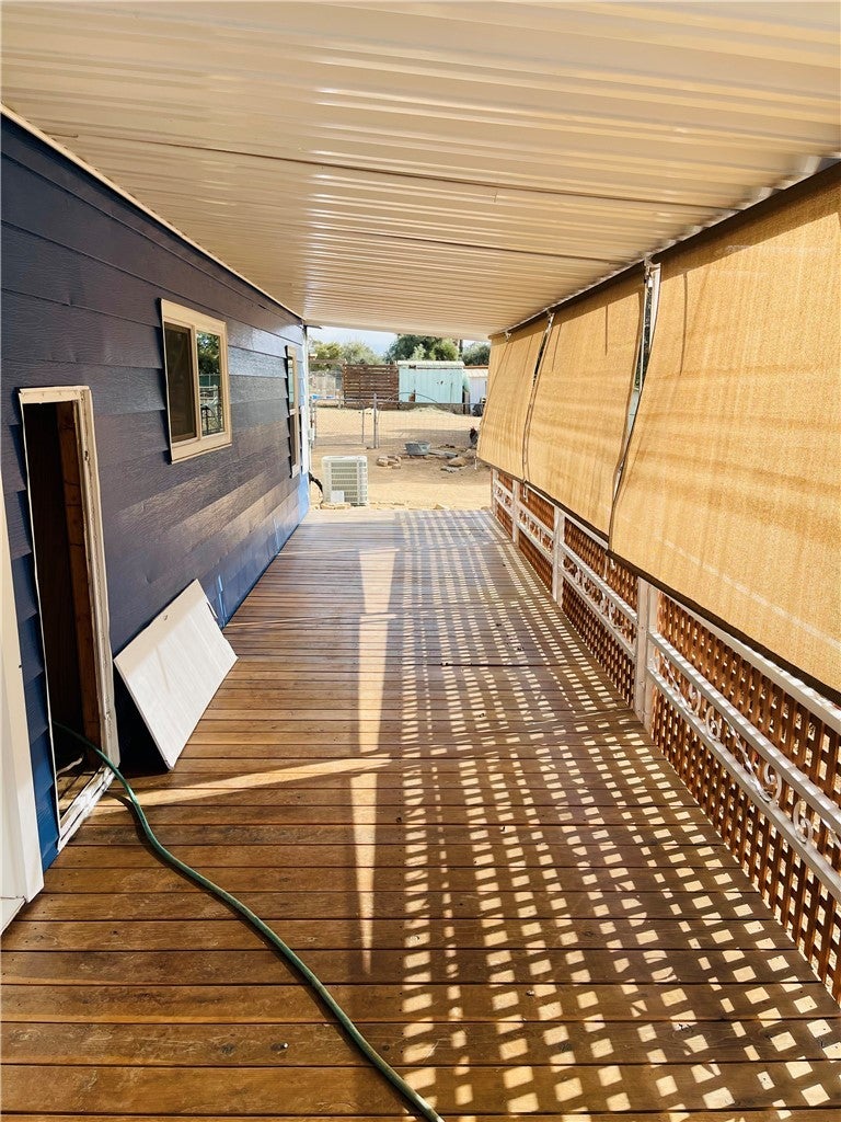 BEAUTIFULLY Remodeled 3 Bedroom, 2 Bath, Manufactured Home on land in Wildomar. This home received new decks (front and back), new interior and exterior paint, new plumbing, new flooring, new kitchen cabinets and stainless steel appliances (including fridge and counter-top microwave), new blinds, remodeled bathrooms...everything is new! The home also features upgraded counter-tops, new dual pane windows and slider doors, central AC and heating and new washer and dryer. The home has a single car covered parking area and space out front for vehicles. Owner is in the process of converting the carport to a single car garage with a gravel floor. RV/Boat/Trailer parking to discuss...A MUST SEE!