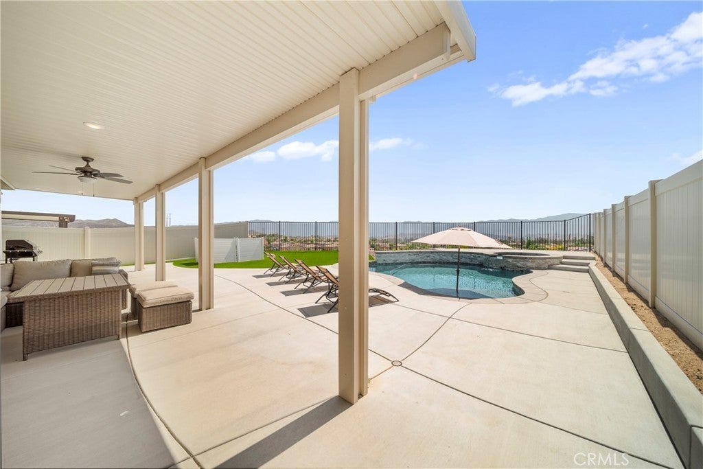 Discover this beautifully upgraded single-story POOL home for sale in Rosetta Canyon, offering breathtaking panoramic views, energy-efficient upgrades, and smart home technology—all nestled in one of Lake Elsinore’s most desirable communities. This spacious layout features 3 bedrooms plus a flexible bonus room that can easily function as a 4th bedroom or home office. Enjoy modern dimmer lighting throughout the bedrooms, kitchen, and main living areas, enhancing comfort and ambiance. The backyard is an entertainer’s dream, featuring a custom pool with full LED lighting, energy-efficient pool pump, and smartphone app control. Relax beneath the Alumawood patio cover with built-in lights while taking in incredible mountain and canyon views. Turf landscaping in the front and back keeps maintenance low and curb appeal high. Located in a family-friendly neighborhood with parks, trails, and close freeway access, this Rosetta Canyon home is ideal for those looking for eco-conscious living with modern conveniences. Don’t miss your chance to own a solar-powered pool home with views in Lake Elsinore—schedule your private showing today!