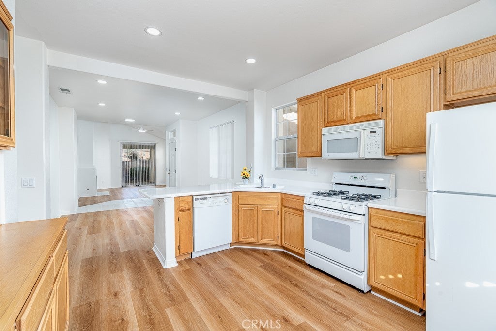 Location, location, location! Welcome to the desirable 55+ gated community of **The Estates at Rancho San Jacinto**, where comfort, convenience, and resort-style living come together. Residents enjoy fantastic amenities including a swimming pool, spa, BBQ area, clubhouse, and planned activities—offering an active and social lifestyle. This lovingly maintained single-story **2-bedroom, 2-bath** home is full of character and charm. Even better, the **front landscaping is maintained by the HOA**, adding to the home’s effortless appeal. From the moment you arrive, you’ll appreciate the inviting curb appeal, open and spacious floor plan, high ceilings, and tasteful custom paint throughout. Laminate flooring flows through the main living areas, creating a warm and cohesive feel. The well-appointed kitchen is conveniently located and features abundant cabinetry—perfect for both everyday living and entertaining. The primary suite is a private and comfortable retreat, offering a walk-in closet, a spacious bathroom with dual sinks, and an easily accessible walk-in shower. A sliding glass door provides direct access to the backyard patio, blending indoor and outdoor living. The guest bedroom is thoughtfully positioned on the opposite side of the home, ensuring privacy for visitors. Step outside to a peaceful, private backyard with low-maintenance landscaping, block wall, and wood fencing—ideal for relaxing or entertaining. Additional highlights include an indoor laundry room and a large two-car garage. Perfectly situated in the heart of it all, this home is just minutes from shopping, dining, movie theaters, shopping centers, and even a Super Walmart. Don’t miss this opportunity to enjoy low-maintenance living in one of Rancho San Jacinto’s most convenient and welcoming 55+ communities!