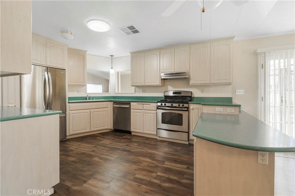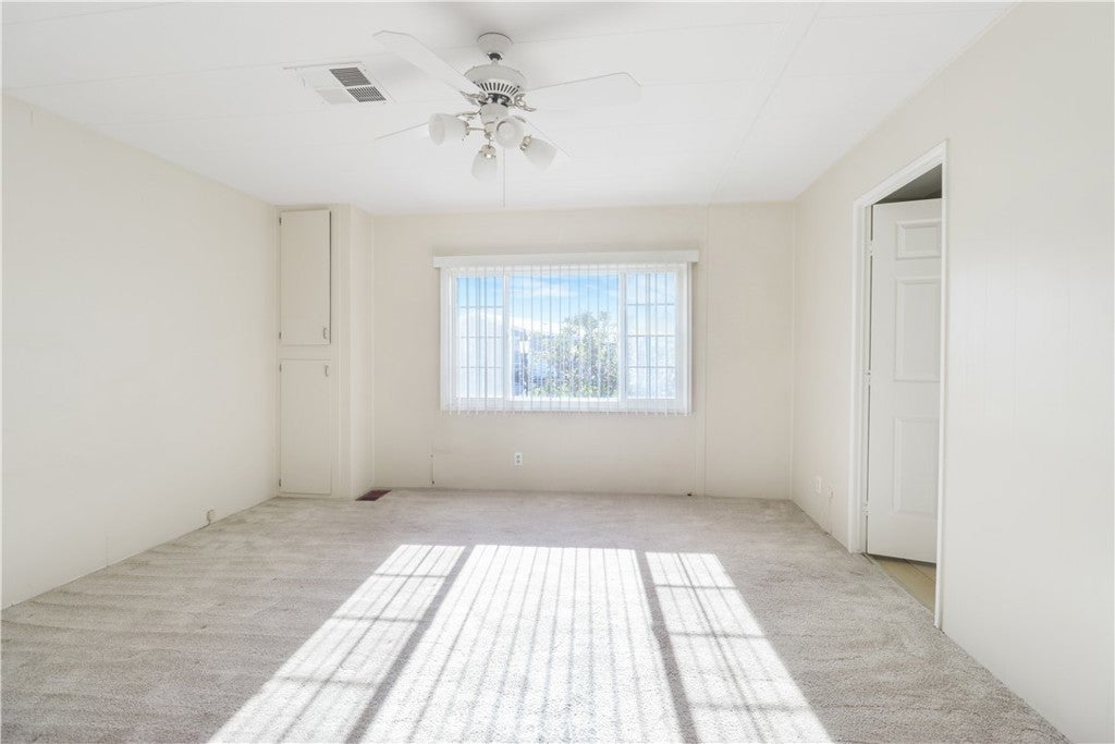 Beautiful 1978 manufactured home situated right on the course! With over 1,800 sq ft of living space this manufactured home is located in the 55+ senior community of Highland Springs in Cherry Valley and features a single-story layout with two bedrooms and two bathrooms, as well as a two car semi-attached garage. The light paint scheme and natural light, along with the ceiling fans, central hall, and fireplace, create a comfortable and inviting living space. The home features a kitchen equipped with a refrigerator, 4-burner stove, dishwasher, and plenty of white cabinets for storage space. The living room, dining room, center hall, and kitchen have a light paint scheme and natural light, with ceiling fans throughout. There is an indoor laundry room with ample cabinets for storage and washer and dryer hookups, plus a sink and a folding clothes area. The master bedroom has a large window allowing natural light, separate closets, and a ceiling fan. It also has an attached full bathroom with laminate floors, a walk-in shower, and a dual-sink vanity. The second bedroom features a walk-in closet and a Jack-and-Jill bathroom with a shower, sink, and Formica countertops that connects to the laundry room. Both rooms have carpet flooring, windows, and ceiling fans. This home also has an open central hall with tile flooring, and a sink located in the corner, making it perfect to adapt the space into a bar for entertaining. Outside the home, you'll find low-maintenance landscaping with a mixture of grass and rock and a concrete walking path. This must-see home has beautiful golf course views, and it’s conveniently located near major highways, shopping, dining, and more!