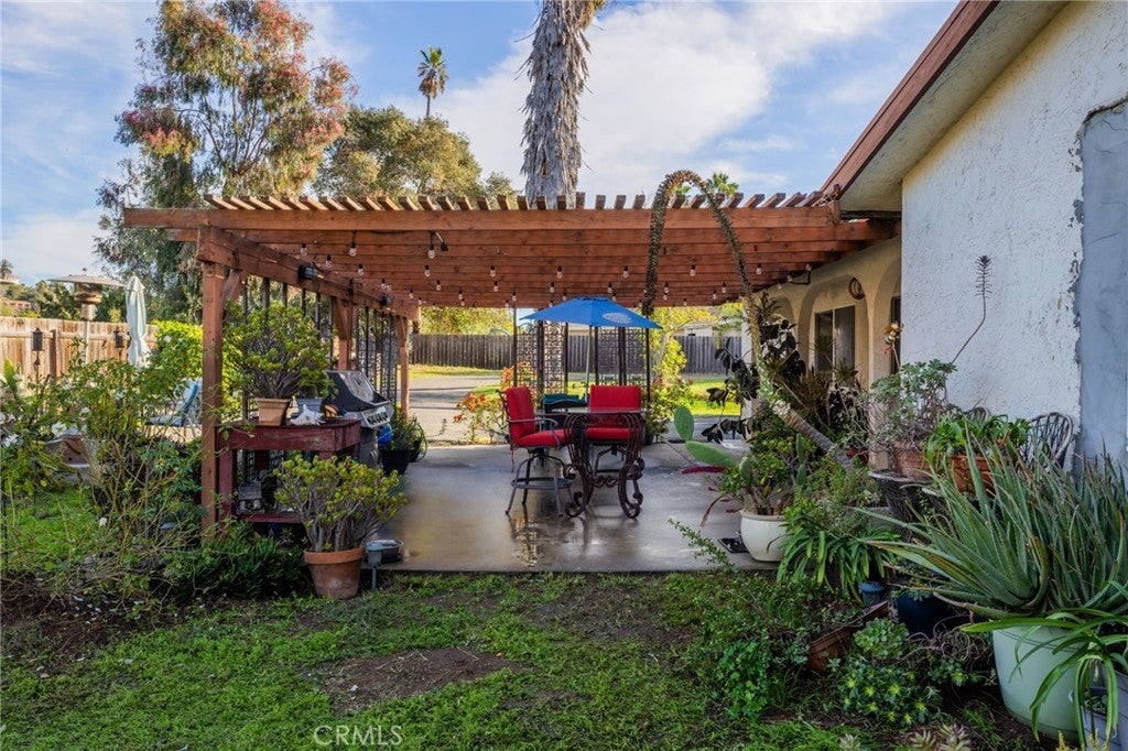 Situated in a central Escondido location, this beautifully updated single-story home sits on an expansive quarter-acre lot and offers the perfect blend of comfort, style, and functionality. From the moment you enter, you’re welcomed by an open-concept layout where your the kitchen, dining area, and living room flow seamlessly together—ideal for both everyday living and entertaining friends and family. The updated kitchen is a true focal point, featuring rich espresso hardwood cabinetry, granite countertops, stainless steel appliances, and a large island with a gas cooktop. The main living areas are complemented by updated dual-pane white vinyl windows and attractive vinyl flooring throughout, enhancing both style and energy efficiency. Down the hallway, the full guest bathroom offers generous space with dual sinks and a shower-tub combination. The secondary bedrooms are well-sized and thoughtfully updated with new flooring, windows, ceiling fans, and ample closet space. Privately positioned at the rear of the home, the primary suite serves as a relaxing retreat with new windows, a sliding door leading to the backyard, a ceiling fan, ample closet space, and an en-suite primary bath. Step outside and discover endless possibilities. The oversized lot provides abundant room for a garden, pool, or potential ADU, along with space to accommodate multiple RVs or trailers. Enjoy a cozy covered outdoor seating area just off the front of the home, along with pleasant views of the surrounding community and rolling hillsides. Conveniently located near shopping, dining, schools, and just minutes from the I-15 freeway, this home truly offers it all.