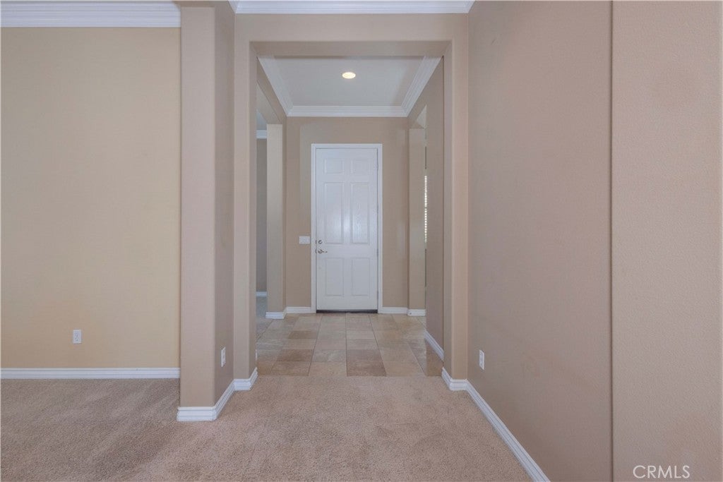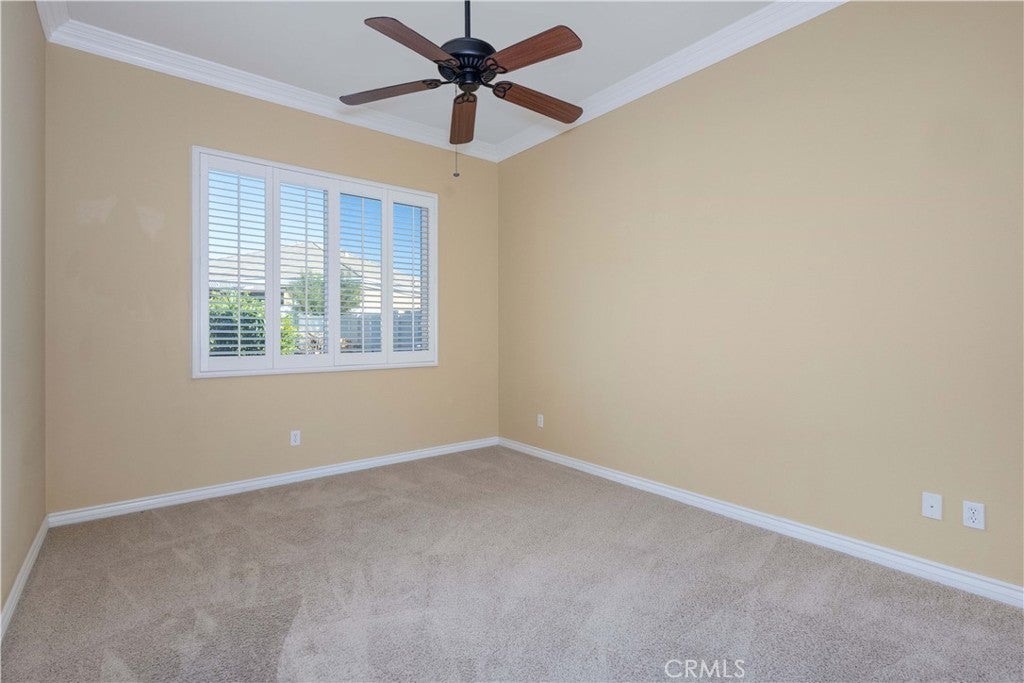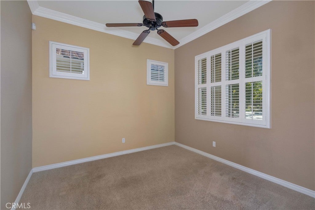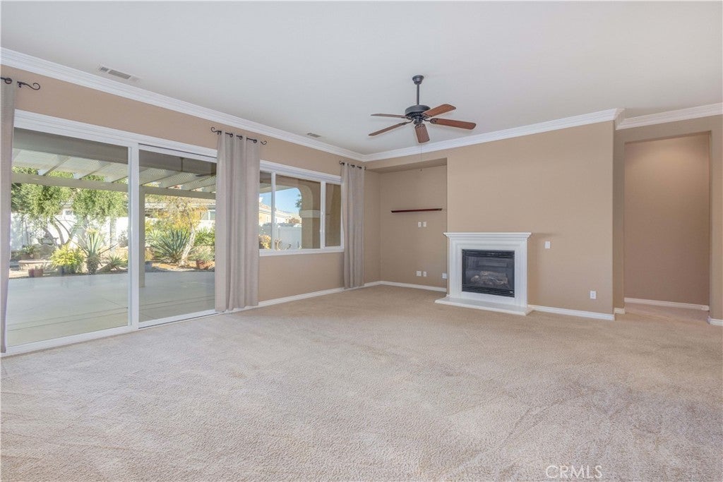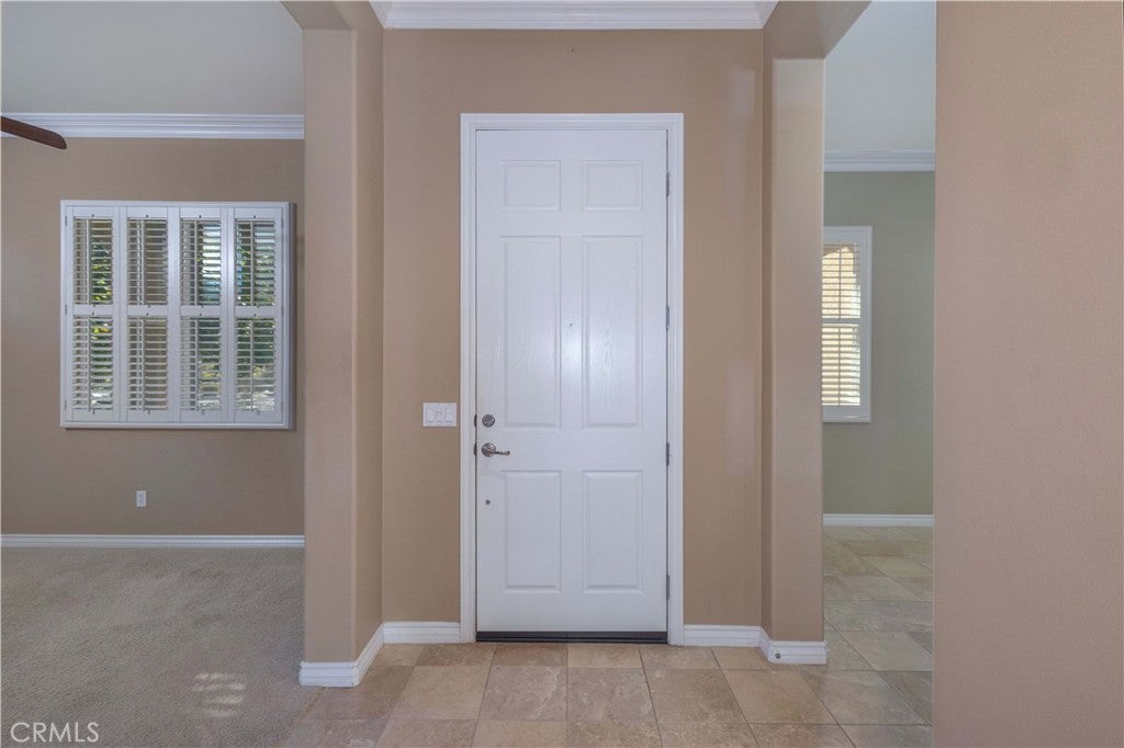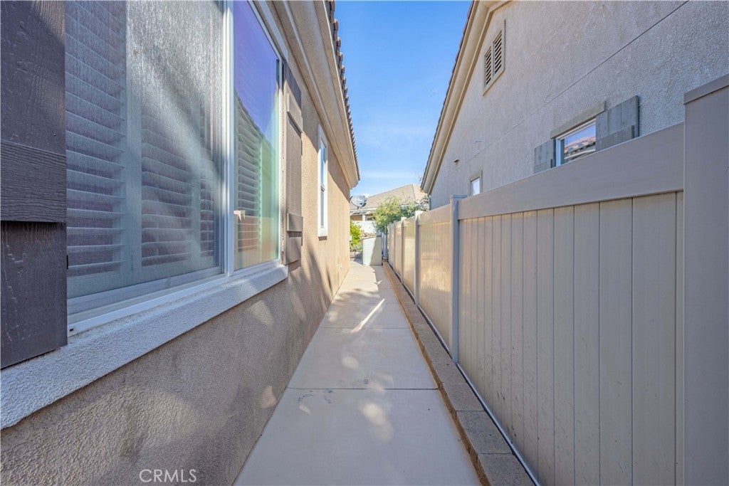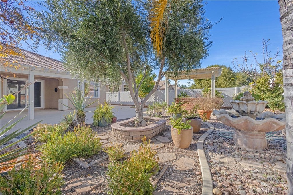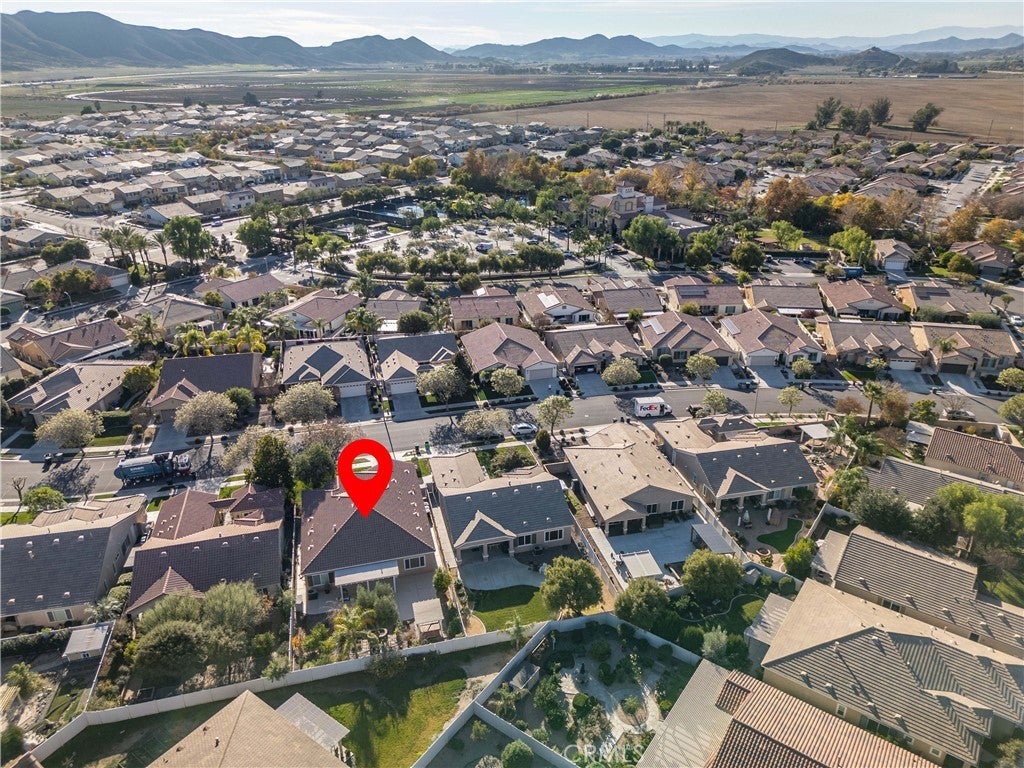 HUGE PRICE DROP! Welcome to this beautifully upgraded home located in the highly desirable 55+ community of Solera Diamond Valley by Del Webb; located within walking distance to clubhouse. Thoughtfully enhanced from top to bottom, this spacious & versatile popular "El Dorado" floor plan offers 2 bedrooms (each on opposite sides of home) 2.5 bathrooms, formal dining room & generous bonus room that can be used as a den, hobby room, exercise rm, or optional 3rd BD. From the moment you enter, you'll notice the attention to detail with crown molding throughout, custom plantation shutters, upgraded paint, & ceiling fans in nearly every room, including the patio. The open-concept kitchen flows seamlessly into family room & features stainless steel appliances, center island with breakfast bar, Corian countertops, recessed lighting, upgraded cabinetry, pull-out shelving & newer sink. The primary suite is a true retreat, offering a large walk-in closet with custom shelving & a spa-inspired bath complete with oversized soaking tub, separate step-in shower featuring a custom teakwood shower mat & dual vanities. The half bath has been tastefully updated with bead board accents & Pottery Barn mirror. The laundry room includes upper & lower cabinetry, utility sink & decorative stainless shelving. Step outside through oversized sliding doors to a peaceful & meticulously designed backyard oasis, complete with private Caldera spa which includes pump, filter, ozone system & heater. Enjoy year-round relaxation under the extended alumawood patio cover with ceiling fan or gather around the freestanding outdoor fireplace with chimney. Custom concrete, river rock, stepping stones, fountain, raised planters, fruit trees, solar lighting, perimeter water faucets, block walls & vinyl fencing create a serene & functional outdoor living space. The garage is equally impressive with epoxy flooring, Gladiator cabinets, rail systems with hooks, Rubbermaid mounting bars, upgraded lighting, workbench with solid wood top, replaced garage door opener, newer gas water heater & replaced pressure regulator. Residents enjoy resort-style amenities including indoor & outdoor pools, spa, workout fitness center that includes indoor walking track, library, billiard tables, conference rooms, bocce ball courts, pickleball courts & tennis courts. The community has daily, monthly & annual events that bring the community together! This exceptional home offers comfort, quality & lifestyle; truly a must-see!