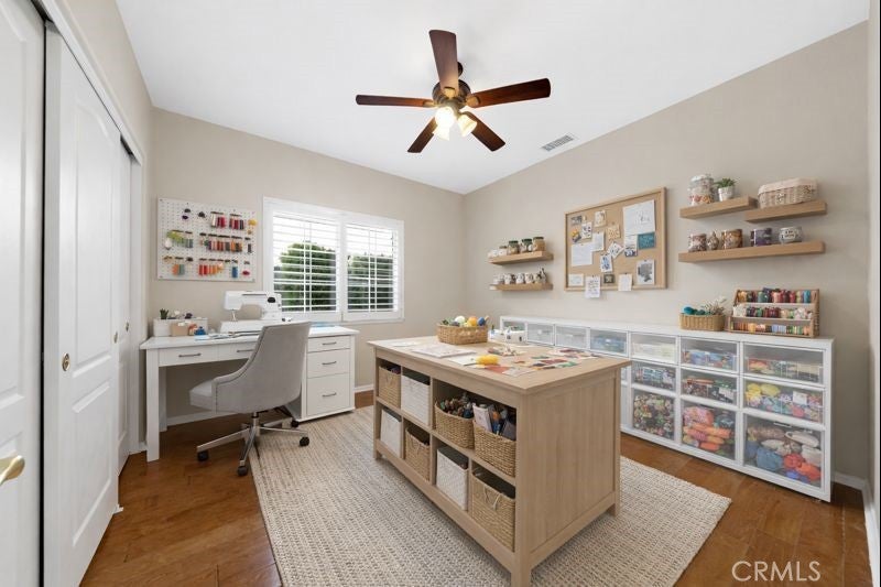 Welcome to resort-style living at The Colony, Murrieta's premier 55+ community. This well maintained 3-bedroom, 2-bathroom home offers no rear neighbors and is move-in ready with fresh interior neutral paint, high ceilings, custom baseboards, a skylight, plantation shutters, and ceiling fans throughout. Designed for entertaining and daily comfort, the heart of the home is an expansive Great Room with a volume ceiling and cozy fireplace, seamlessly flowing into a dining area—perfect for all your gatherings. The spacious, sun-filled kitchen is a cook’s delight, opening to the Great Room and featuring a dining nook, newer appliances with room for a future island. Retreat to your private primary suite, which opens to the Alumawood covered patio and boasts an en-suite bathroom with dual vanity, a sit-down dressing table, a large walk-in closet, walk-in shower, and a relaxing soaking tub. Practical features include a centrally located laundry room with sink, counter space and plenty of storage cabinetry. Enjoy the oversized garage with an alcove for storage, a workshop, or a golf cart. Have peace of mind with recent updates: REPIPED PLUMBING with PEX (2024), updated HVAC (2024), an Ecobee Smart thermostat, wall-oven and dishwasher replaced in 2023/24. Washer/Dryer and Refrigerator convey with the sale and were purchased in 2020/21. THE HOA WATERS AND MAINTAINS THE FRONT YARD. Live the vibrant, maintenance-light lifestyle in this guard-gated community with 24/7 security. The resort-class amenities are unparalleled: a clubhouse, year-round pool, spas, tennis/pickleball courts, Bocce Ball, salon, gym, library, a 400-seat auditorium with catering facilities for dances, movies, plays, musical productions & club activities. There is a beautiful lounge with fireplace and bar, great for PARTIES FOR ALL OCCASIONS. A privately-owned 18-hole public golf course is within the community. Perfectly located near shopping, medical centers, parks, Temecula Valley's famed wineries and the Pechanga Casino Resort.