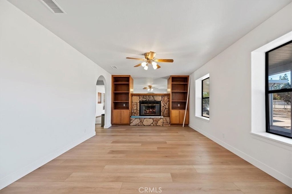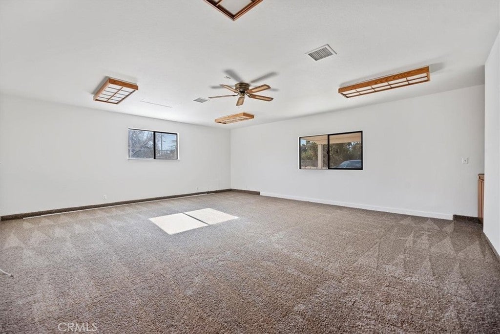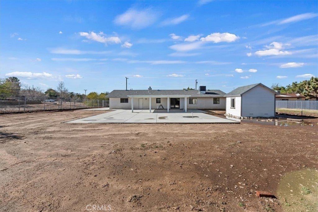 Don't miss out on this fantastic buy in the Mesa area of Hesperia. This single story plan has 3 beds, 2 baths, on a 19,000 ft flat lot. The house has all new paint and LVP flooring. The seller just installed a new AC system. The garage was converted into a huge family room, perfect for entertaining. The lot is fenced, with RV parking as well as a large covered concrete patio area. There is also a spacious shed for storage, and plenty of room to add a shop or garage.