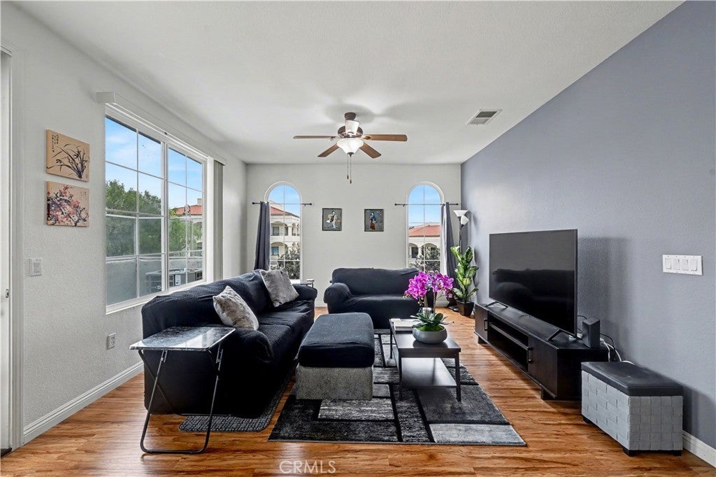 Welcome to this move-in-ready condo in Oceanside’s desirable Pelican Cove community, located just a few miles from the ocean in a quiet, well-maintained neighborhood. This thoughtfully cared for home offers 2 bedrooms and 2 bathrooms across 1,005 square feet of light filled living space with a functional, open-concept layout—perfect for hosting family and friends. Nearly all of the living area is located on the main level after entering through the attached single-car garage, creating a convenient and private flow. The home is filled with natural light and features refreshed flooring, energy-efficient dual-pane windows, and newer central air conditioning. The kitchen provides ample countertop space, generous cabinetry, and a breakfast bar, and comes fully equipped with all Samsung appliances, including a black stainless steel refrigerator, range, microwave, dishwasher, and a champagne-colored washer and dryer. The spacious primary suite includes a walk-in closet and private en-suite bathroom, while the second bedroom and bath offer flexibility for guests, a home office, or family. Step outside to enjoy a large private balcony—ideal for BBQs or entertaining. Additional highlights include an attached one-car garage with laundry and extra storage, plus an additional permitted uncovered parking space. The Pelican Cove community offers a tot-lot and grassy common areas and is conveniently located near hiking trails, schools, shopping, and Camp Pendleton. A fantastic opportunity to enjoy coastal living in a welcoming community—schedule your tour today!