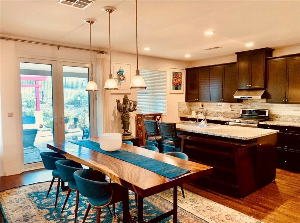 Gorgeous Murrieta 5 Bedroom Home with private yard backing to Open Space for Serene Views and PRIVACY, No neighbor behind home! Location, Location, Location! No HOA, Owned Solar, This Exceptional Home has lots of natural lighting and has been Professionally Landscaped and Features a Formal Entry, 5 Large Bedrooms, Main Floor Den/Office (possible 6th bedroom), Large Loft (possible 7th bedroom), plus Expansive Great Room with Spacious Living Room, Kitchen, Dining Area and Luxury Vinyl Plank Flooring Throughout the entire house! There is a Large Downstairs Bedroom and Full Bathroom. The Kitchen includes Upgraded Cabinets, Granite Counters, Custom Tile Back Splash, Stainless Steel Appliances, the Impressive Island includes a Stainless Steel Sink, Water Filtration System, Dishwasher, Custom Lighting and lots of Seating. The Walk in Pantry has Custom Built-ins for all your storage needs. The Luxurious Master Bedroom has a Large En-Suite Bathroom with Large Soaking Tub, Walk in Shower, Double vanity, Walk in Closet with Custom Built-in Organizers. All additional Guest Rooms are Very Large and have Custom Built-in Closet Organizers and All bathrooms have Upgraded Tile and Cabinets. The Cozy Loft is an added bonus and could be a 7th bedroom! The Great Room and Dining Room have 3 Sets of French Doors that lead out to the "Private " Back Yard that has been Professionally Landscaped with a Large Custom Patio, Insulated Aluminum Patio Cover, Remote Controlled Sun Shades, Custom Pavers, Custom Lighting, Fountains, Vibrant flowers, Plants, Trees. This Serene Yard is very Private, backs up to a Nature Preserve and is Perfect for Entertaining! The 3 Car Garage has a Utility Sink, Tankless Water Heater and Plenty of Room for Storage! The Owned Solar will provide Energy Cost Savings! This Amazing home is located near Alderwood Public Park with Playgrounds, Large Enclosed Dog Park, Pickle ball, Basketball Courts and Picnic Tables!! Its close to Schools, Shopping, Wineries, Costco, Loma Linda University Medical Center , Kaiser Permanent and the 215 & 15 freeways for an Easy Commute. Welcome Home!