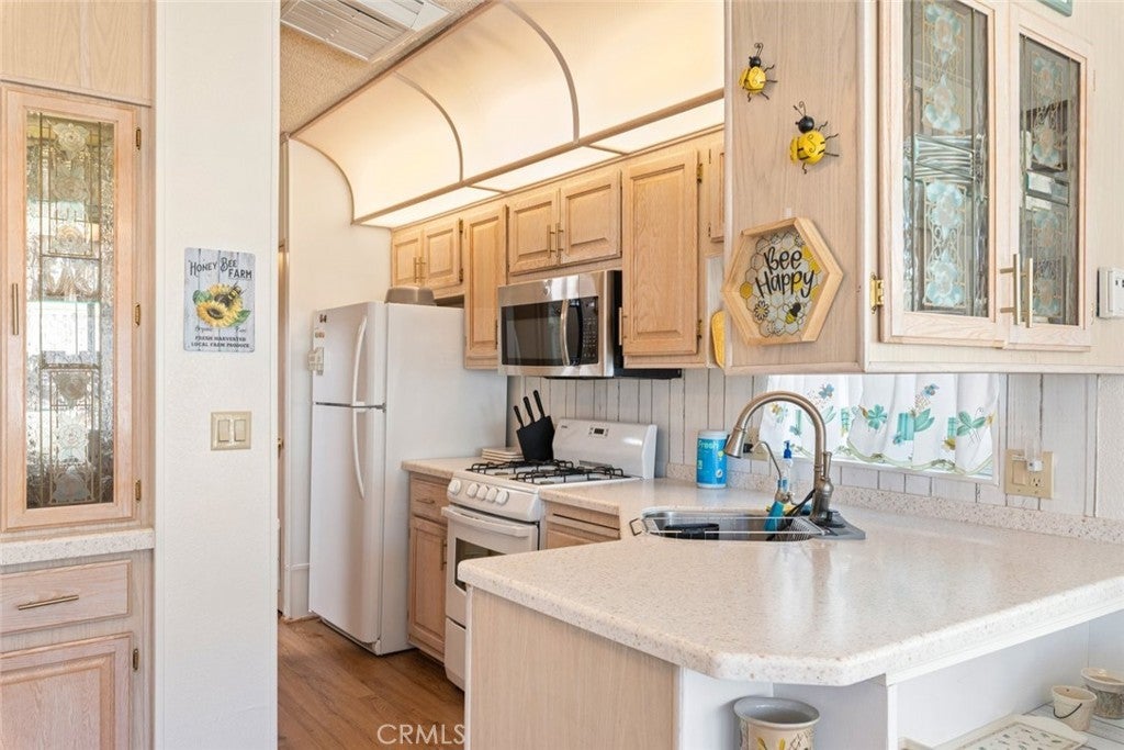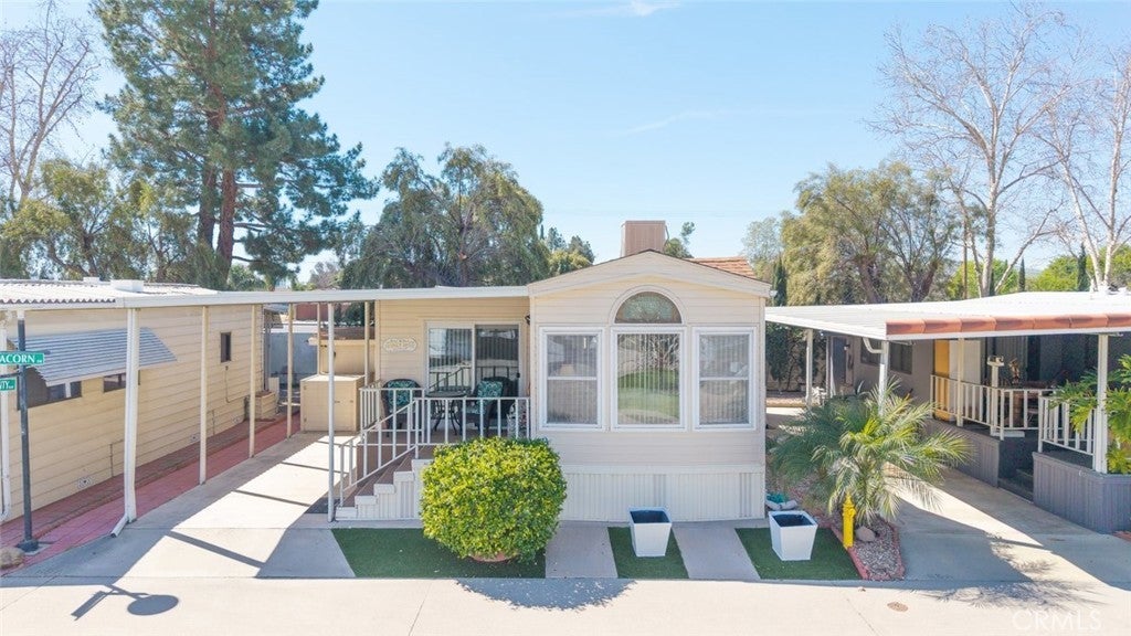 Enjoy Resort Style Living at Heritage Ranch. This 55+ gated community offers an affordable lifestyle where you own the land. Monthly HOA fee is only $218 and includes water, sewer, trash, basic cable & internet. The featured home is a 1990 Cavco Park Model, with earthquake bracing and shows pride of ownership. You will appreciate the added family room (which can be used as a second bedroom), newer luxury vinyl flooring, carpet, shower and countertops. Easy maintenance yard with pavers and concrete all around. Large shed has enough room for the furnished washer/dryer and any needed storage. To top it off this home is being sold furnished. Shopping, Restaurants and Soboba Casino are nearby. Come take a look before this home is gone!