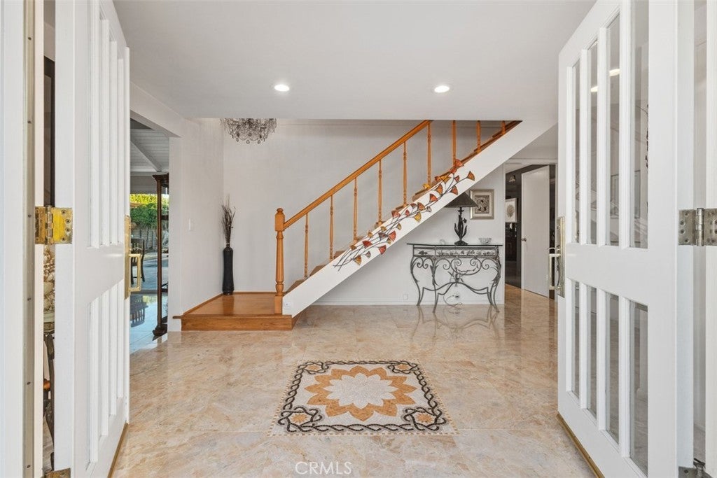 LOW TAXES • NO HOA • PAID-OFF 26-PANEL SOLAR • CUL-DE-SAC LOCATION Nestled in the coveted North Gainsborough neighborhood, this stunning solar-powered residence offers an exceptional blend of luxury, comfort, and timeless design. Spanning 3,254 square feet, the home features 3 bedrooms plus a bonus room, a library, and 2.5 bathrooms, all meticulously upgraded with uncompromising attention to detail. From the moment you arrive, the home’s spectacular curb appeal sets the tone. Impressive double front doors open to a bright, open-concept layout that feels airy, sophisticated, and effortlessly inviting. Abundant natural light highlights the elegant combination of marble, porcelain, and oak wood flooring throughout. The living room is anchored by a custom statement fireplace and offers serene views of the resort-style pool and spa, creating a seamless indoor-outdoor connection. The gourmet kitchen is a true showstopper, featuring Sub-Zero refrigeration, a Thermador range, Dacor oven and warming drawer, custom cabinetry, designer countertops, and a striking backsplash—perfect for both entertaining and everyday living. The formal dining room makes a bold impression with exquisite stained-glass windows, adding character and timeless elegance. The primary suite is a private sanctuary, filled with natural light and overlooking the pool. Its spa-inspired ensuite boasts a beautifully designed walk-in shower with refined, modern finishes. Additional bedrooms are generously sized with ample closet space, and each bathroom has been thoughtfully redesigned to reflect the same elevated aesthetic found throughout the home. Step outside to a private backyard oasis featuring a newly renovated pool and spa, custom accent lighting, and an expansive patio ideal for entertaining or relaxing. The home also includes a stainless-steel BBQ, teak dining table, and granite bar, making outdoor living effortless. Conveniently located near top schools, shopping, dining, and major freeways, and just a short drive to Irvine, Newport Beach, and Orange County’s stunning coastline, this extraordinary home presents a rare opportunity to own a truly special property in one of the area’s most desirable neighborhoods.