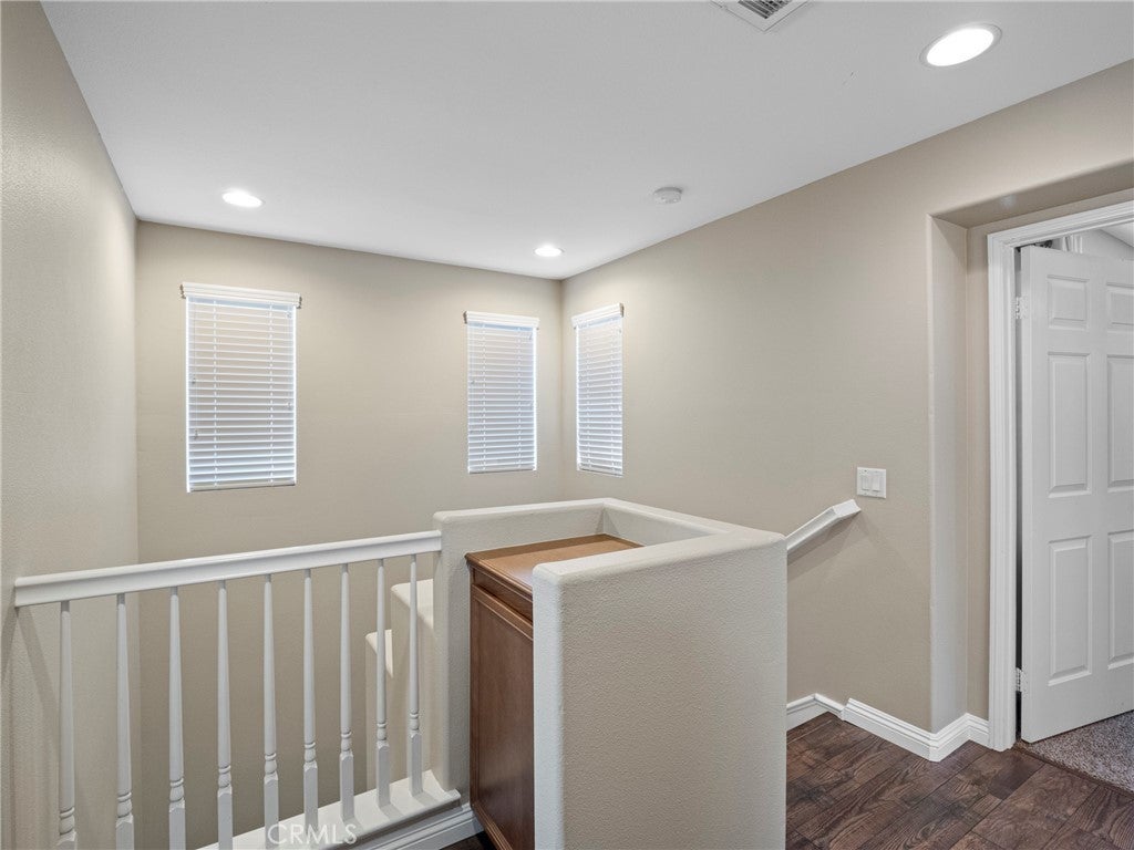 Welcome to this beautiful two-story Moorefield home showcasing a light-filled, open floor plan perfect for everyday living. The main level features a private living space highlighted by a cozy fireplace and a well-designed kitchen complete with eye-catching countertops, stainless steel appliances, a large deep sink, and a versatile storage closet that doubles perfectly as a pantry. Durable ceramic tile flooring throughout the downstairs adds both style and easy maintenance. A lovely half bathroom on the main floor is ideal for guests. Upstairs offers a thoughtfully laid-out living space with a convenient laundry room, all bedrooms, and a shared Jack-and-Jill bathroom. The spacious primary suite provides a peaceful escape with a walk-in closet, shower/tub combo, and a separate enclosed toilet area. Completing the home is an attached two-car garage with built-in storage racks and a private backyard—perfect for relaxing or hosting friends. Enjoy living in a well-maintained community featuring a resort-style pool and spa, playground, and beautifully landscaped grounds, all with a low HOA. Centrally located near the 15 and 215 freeways, Costco, Starbucks, shopping, and dining options. This home truly offers comfort, convenience, and lifestyle—welcome home!