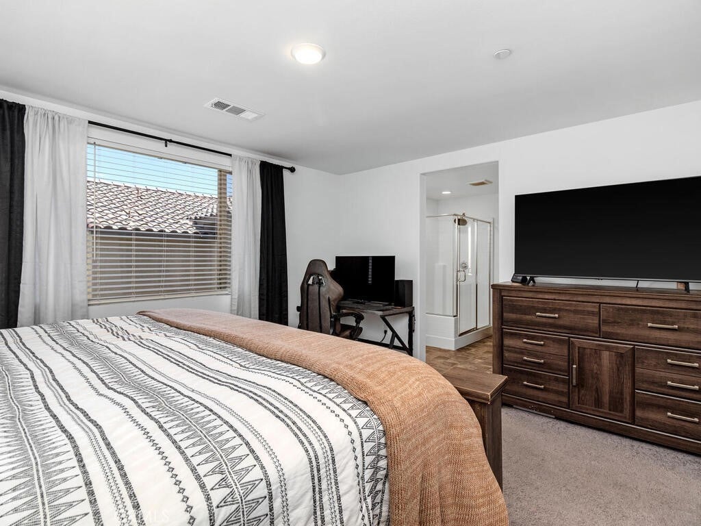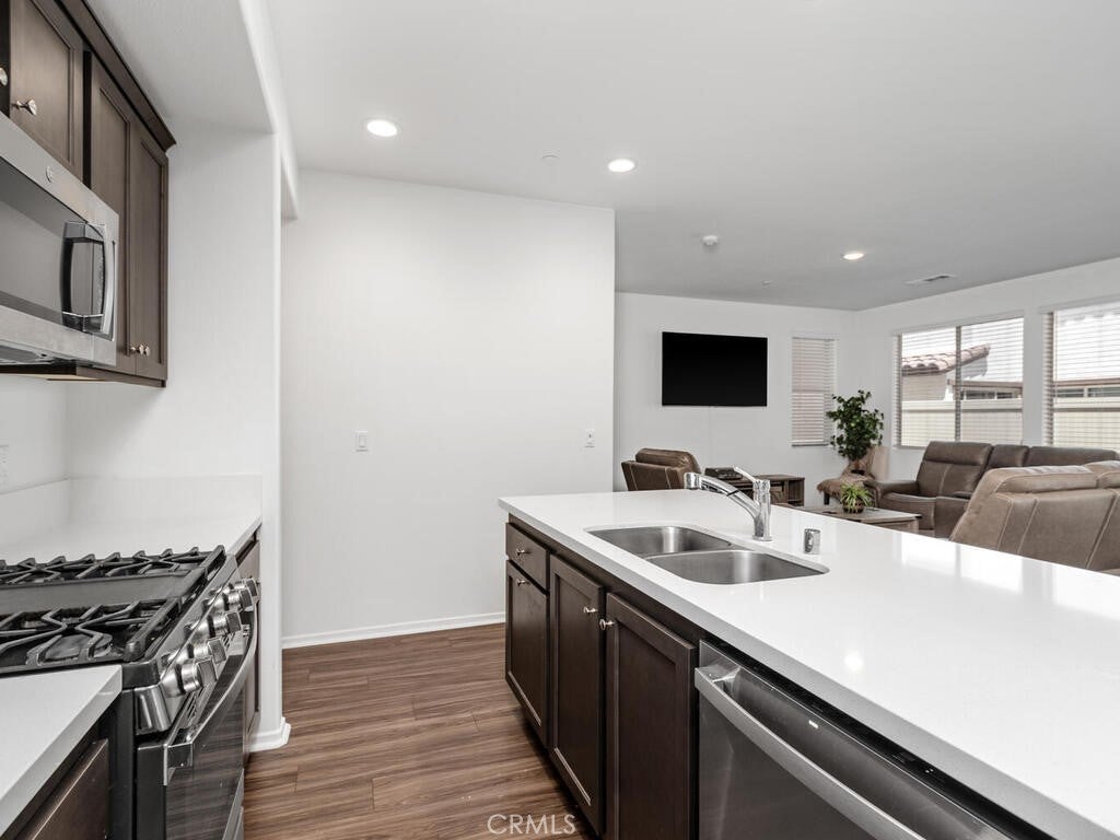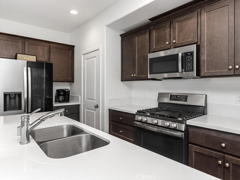 Welcome to Copper Sky, one of Winchester’s most desirable communities by Tri Pointe Homes. This better-than-new, beautifully maintained Plan 4 model offers one of the largest layouts in the development, featuring an open-concept design with luxury vinyl plank flooring, a light-filled great room, and a spacious kitchen complete with a generous island, stainless steel appliances, quartz countertops, and a walk-in pantry. Upstairs, you’ll find a versatile loft, perfect for a home office, playroom, or second living area, alongside all three bedrooms and a conveniently located large laundry room. The primary suite boasts a sizable walk-in closet and an ensuite bath with a walk-in shower and dual vanities. Additional highlights include recessed lighting throughout, new window blinds, eight solar panels for energy efficiency, and brand-new turf in the backyard for low-maintenance living. The home is just steps from the resort-style community pool, spa, BBQ area, and nearby parks. Located minutes from shopping, dining, and entertainment, with easy access to both Menifee and Temecula, this home combines style, space, and an unbeatable location.