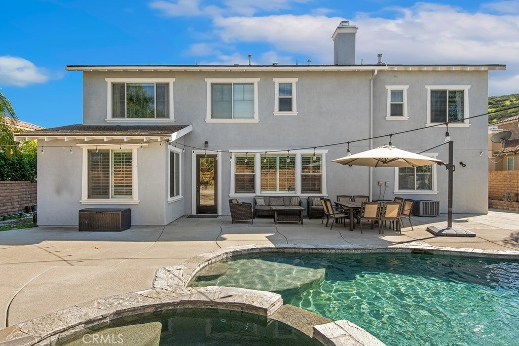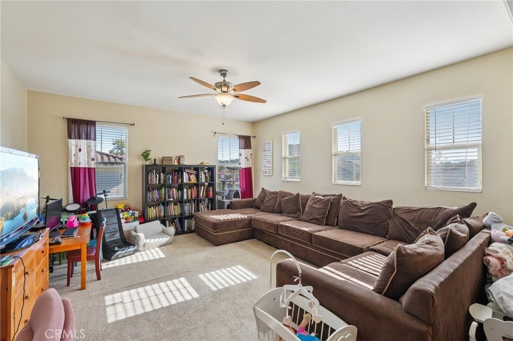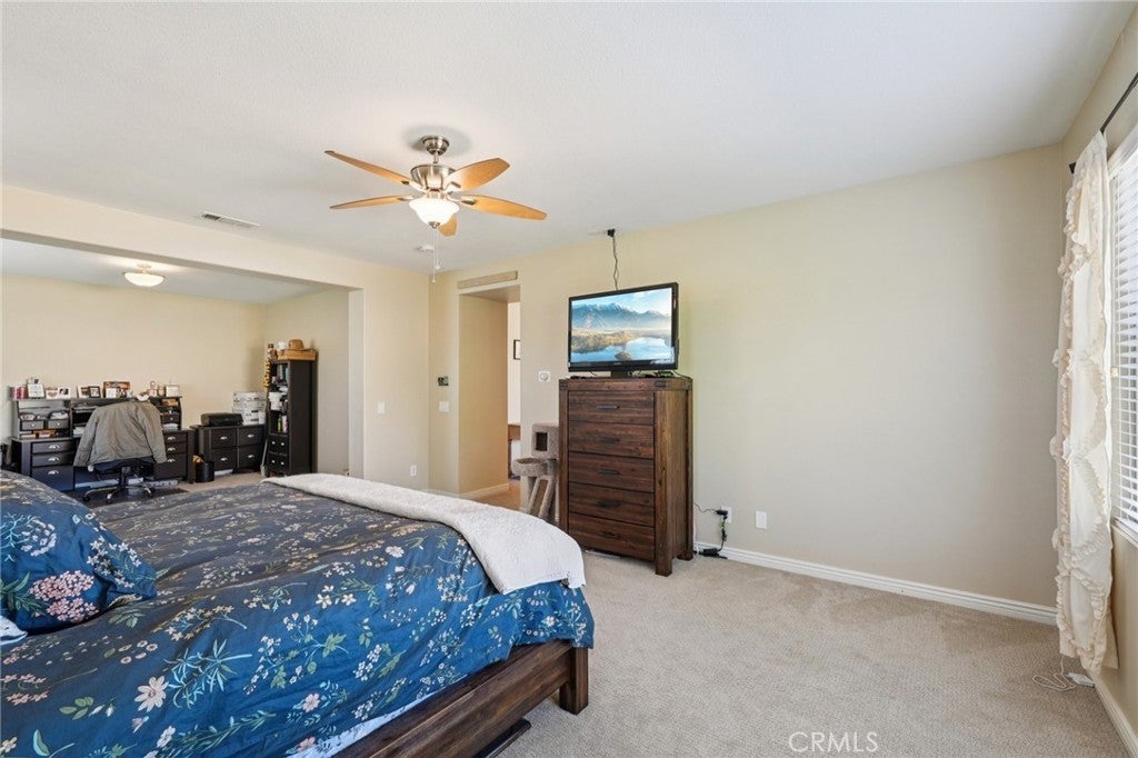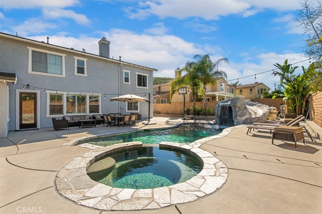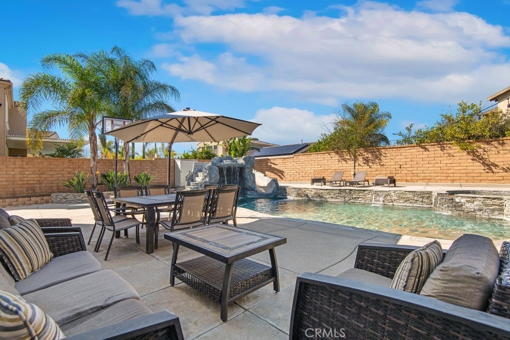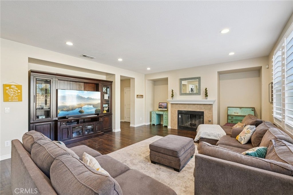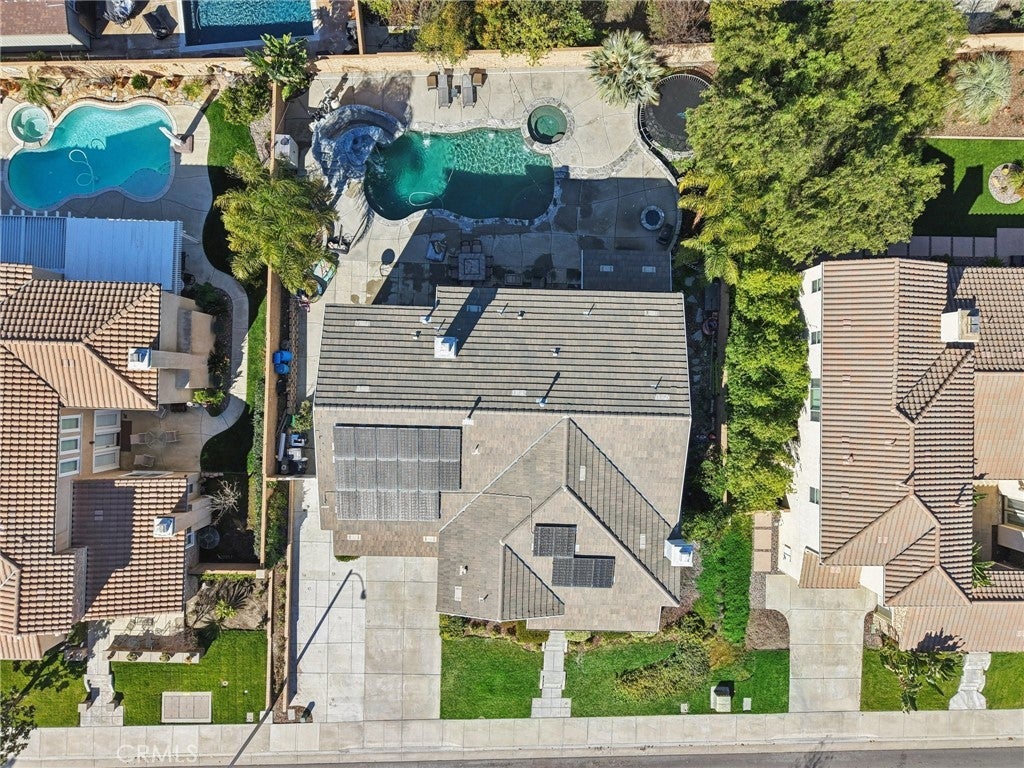 Welcome to your dream home! This stunning 6-bedroom, 4183 square-foot residence sits on an expansive 10,890-square-foot lot and offers exceptional indoor and outdoor living. The resort-style backyard is an entertainer’s paradise, featuring a saltwater pool and spa with a grotto, waterfall, and built-in slide, along with a firepit perfect for evening gatherings. RV parking adds extra convenience. Step inside to a formal living room highlighted by the first of two fireplaces. The main level includes a private bedroom with its own bathroom, ideal for guests or multigenerational living, followed by an oversized formal dining room. Wood flooring flows throughout the downstairs, complemented by wood shutters on the windows. The light and bright kitchen is beautifully appointed with quartz countertops, a large center island, stainless steel appliances, and a double oven. A casual dining area with abundant cabinetry sits just off the kitchen and opens to the spacious family room anchored by the second fireplace. A generous laundry room completes the main level. Upstairs, an open staircase leads to an expansive loft, perfect for a media room or additional living space. A secondary bedroom features its own private bathroom. The primary bedroom is thoughtfully designed with an adjoining private suite that can be used as a home office or sitting area. The primary bath offers a separate soaking tub and walk-in shower, along with a spacious primary closet. Additional hallway storage cabinets provide excellent organization and lead to three more bedrooms and a full bathroom. Outside, enjoy serene hill views directly across the street and easy access to Morning Star Park just down the road. Ideally located near schools and shopping, this remarkable home offers the perfect blend of comfort, elegance, and resort-style living. Temecula Valley Unified School District!