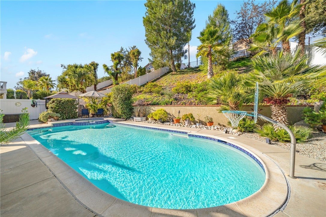 Set in a peaceful Murrieta cul de sac, this spacious property offers room to live, relax, and enjoy both indoor and outdoor living. The oversized 10,109 square foot lot sits across from open land, giving the home a sense of space and privacy that is hard to find. With four bedrooms, two and a half bathrooms, and a three car garage, there is plenty of flexibility for daily life, hobbies, and storage. The garage includes a workshop area, attic storage, and a washer and dryer that stay with the home. The interior features a comfortable and open layout with high ceilings in the main living area that bring in natural light and create an easy flow. Luxury plank vinyl flooring runs through much of the home and pairs well with the neutral color palette. The family room centers around a stacked stone fireplace and opens to the kitchen, making it ideal for everyday living or hosting friends. The kitchen offers generous counter space, ample cabinetry, stainless steel LG appliances and a clear view of the backyard. Updated windows and plumbing throughout the home add efficiency and peace of mind. Upstairs, one of the secondary bedrooms opens to a private balcony through French doors, offering a quiet place to work, unwind, or enjoy fresh air. The primary bedroom is generously sized with a walk in closet and an updated shower. A remodeled secondary bathroom continues the clean and modern feel. Outside, the backyard feels like a private retreat. A custom pool and spa are surrounded by mature landscaping, colorful plantings, and extensive hardscape designed for low maintenance and relaxation. A built in firepit creates a welcoming space for evening gatherings. Additional improvements include newer fencing, rain gutters, a newer pool heater, and Pentair pool equipment. The wide side yard provides room for extra vehicles, a boat, or potential small RV parking, while raised planter beds invite you to grow your own vegetables. A large outdoor shed is included for added storage or projects. Located close to shopping, dining, parks, and well regarded Murrieta schools, with convenient access to both the 15 and 215 freeways, this home offers a balance of comfort, location, and value. Warm, inviting, and thoughtfully maintained, it is a place that truly feels like home the moment you arrive.