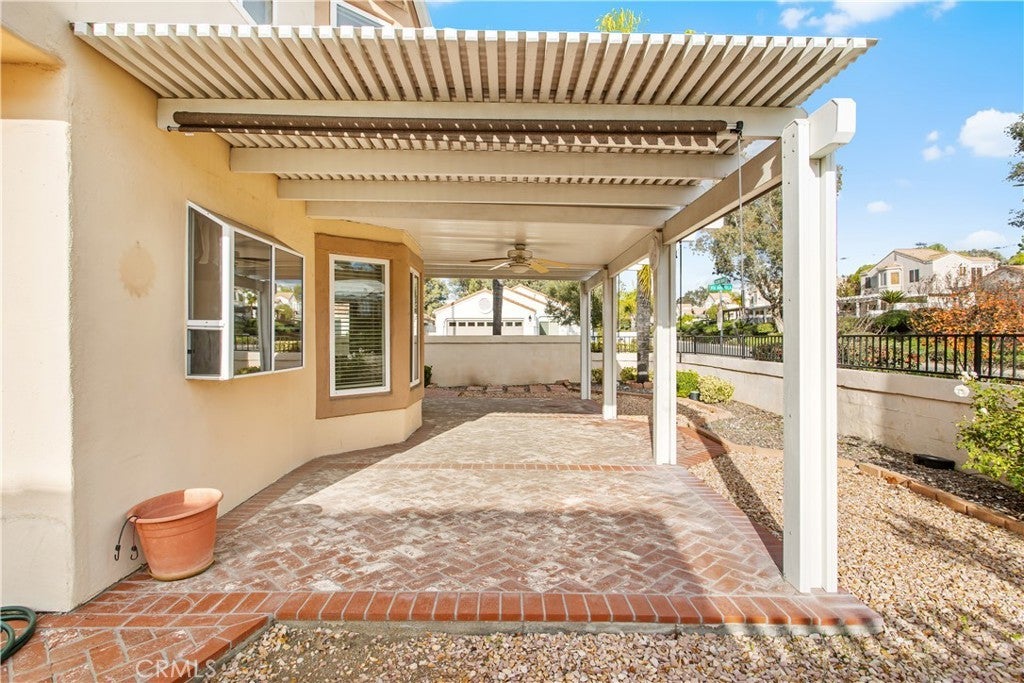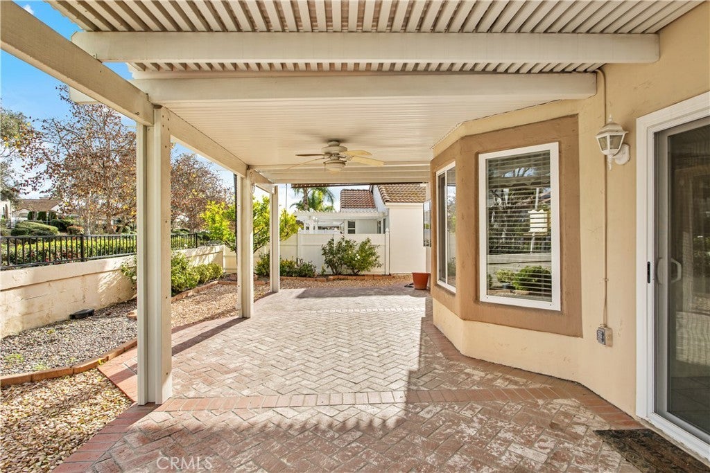 LOCATION! LOCATION! Beautiful home in The Colony, a prestigious 55+ gated community in Murrieta. This 1,722 sq ft charmer features 3 beds, 2.5 baths, and a spacious 2 car garage with room for a golf cart, workshop, or extra storage. The Colony is known for its gorgeous golf course, incredible clubhouse, and top tier amenities. The HOA maintains the front yard, and the low maintenance/ low-water backyard is ready for your green thumb! Enter through double doors into a large, open foyer. To the right is the expansive family room with vaulted ceilings, abundant natural light, a cozy gas fireplace, and luxury laminate wood flooring. To the left, the dining room offers tile floors, large vinyl windows, and sliding doors leading to the covered patio and custom concrete porch with a convenient pass through to the kitchen. The upgraded kitchen includes a breakfast nook, ample storage, granite countertops and backsplash, and a boxed ceiling with recessed lighting for a modern feel. There is plenty of counter space and cabinetry for hosting family gatherings. Past the family room is the primary ensuite, featuring a spacious bedroom with vaulted ceilings, storage, and a full bathroom with a separate tub, stand up shower, dual walk-in closets, and a dual sink vanity with custom quartz countertops. Across the hall, the utility room includes cabinetry, a sink, and included washer and gas dryer. The upgraded half bath offers granite countertops and a large mirror. Upstairs are two well sized bedrooms, a shared bath with storage, tub, and vanity, plus a perfect nook for a desk or study area. Outside, enjoy a beautifully maintained fenced yard with a large, covered patio, custom brick inlay concrete, and walkways all around easy to access, maintain, and personalize! The Colony’s newly remodeled clubhouse offers a pool, spas, fitness center, billiards, lighted tennis and paddle tennis, hair salon, library, cards, shows, events, and of course, the stunning golf course! Close to shopping, groceries, Reading Cinemas, Kaiser, the 1-15 and I-215, this ideal location paired with a low tax rate of around 1.2% makes this GEM a must see!