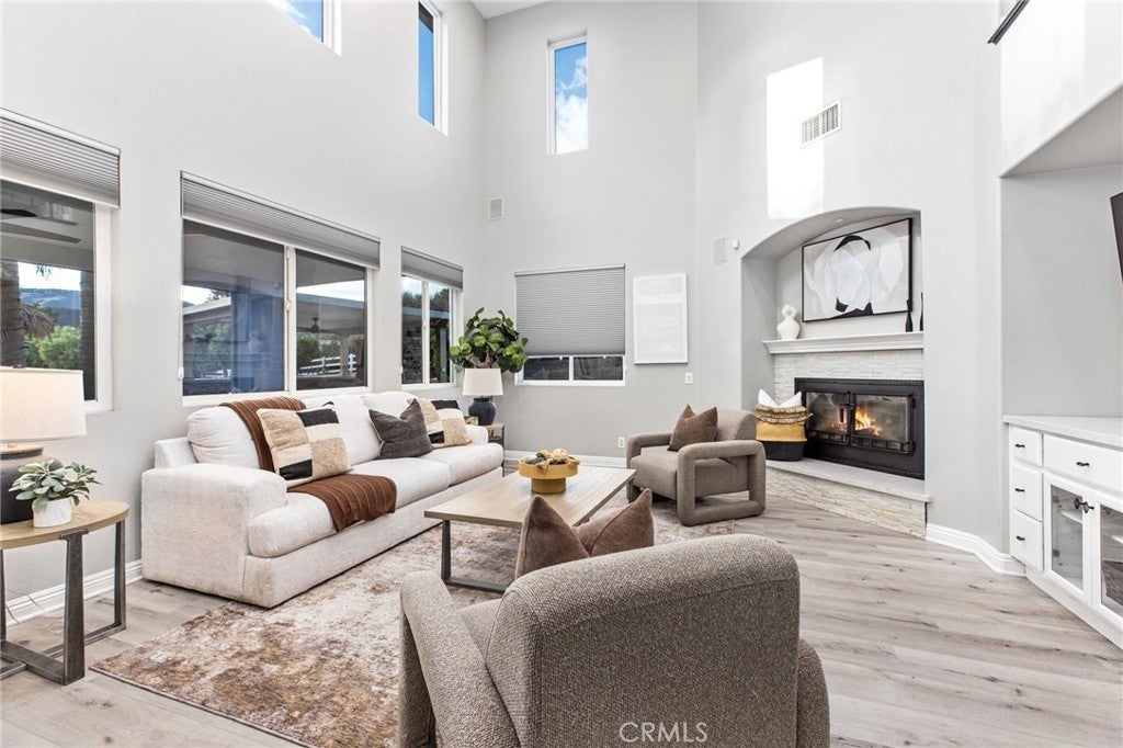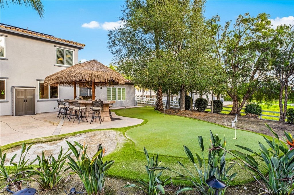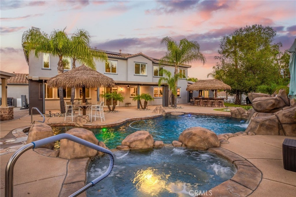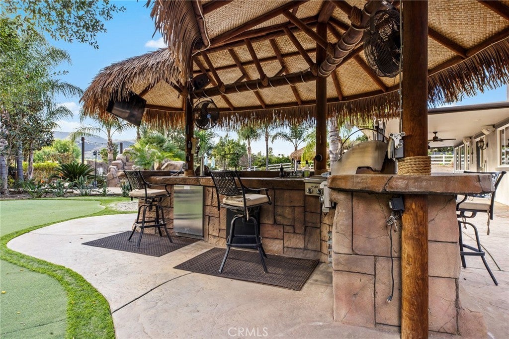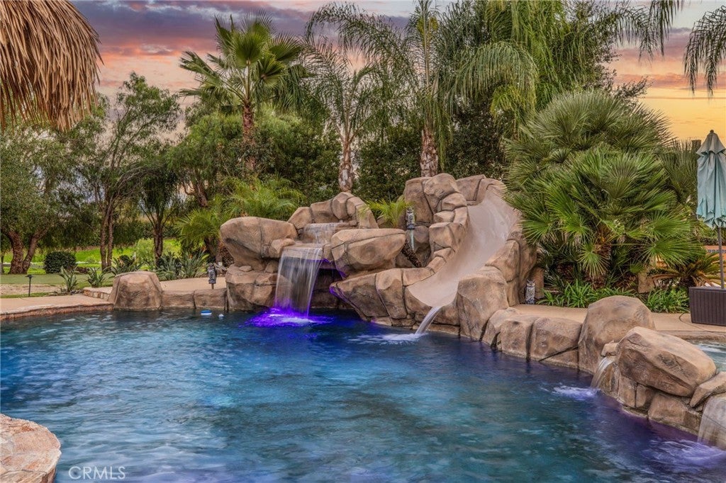 Located behind the gates of the prestigious Wynfield Estates, this exceptional residence offers a rare blend of refined luxury, privacy, and expansive ranch-style living. A private gated entrance, manicured landscaping, and striking curb appeal immediately reflect the pride of ownership throughout the estate. The thoughtfully designed home offers 6 bedrooms and 5.5 bathrooms, including a highly desirable downstairs junior suite and a separate downstairs ensuite with a full bathroom and built-ins, ideally suited for NextGen living with its own private entrance, along with a dedicated downstairs office. A custom double-door entry welcomes you into a light-filled, open floor plan that balances elegance with comfort. Formal living spaces include a private sitting room with a fireplace and a sophisticated dining room featuring a built-in bar and custom cabinetry, creating the perfect setting for entertaining. The expansive, fully remodeled kitchen serves as the heart of the home, offering a walk-in pantry, generous bar seating, and sweeping views from every window. The kitchen opens seamlessly to the spacious family room, highlighted by soaring ceilings and a statement fireplace. Upstairs, oversized bedrooms and well-appointed bathrooms create an ideal and functional layout. The primary suite is a true retreat, complete with its own fireplace, dual walk-in closets with custom built-ins, a luxurious soaking tub, and a separate walk-in shower. Designed for resort-style living, the outdoor spaces are truly exceptional. The flat, fully usable grounds feature a saltwater pool with spa grotto and rock slide, expansive views, an oversized built-in firepit with seating, and a pool cabana with its own fireplace. Entertaining is effortless with a full outdoor kitchen and BBQ, multiple seating areas, a custom palapa, dedicated area for family movie nights, and two custom covered patios. The property is fully gated and beautifully landscaped, complete with a putting green and additional flat land ideal for horses or the future addition of an ADU. Completing the estate is an immaculate four-car garage with epoxy floors and ample storage. Wynfield Estates is a private, gated enclave of custom homes offering equestrian zoning, 2.5-acre parcels, and a peaceful ranch-style lifestyle—just minutes from shopping, dining, and everyday conveniences.