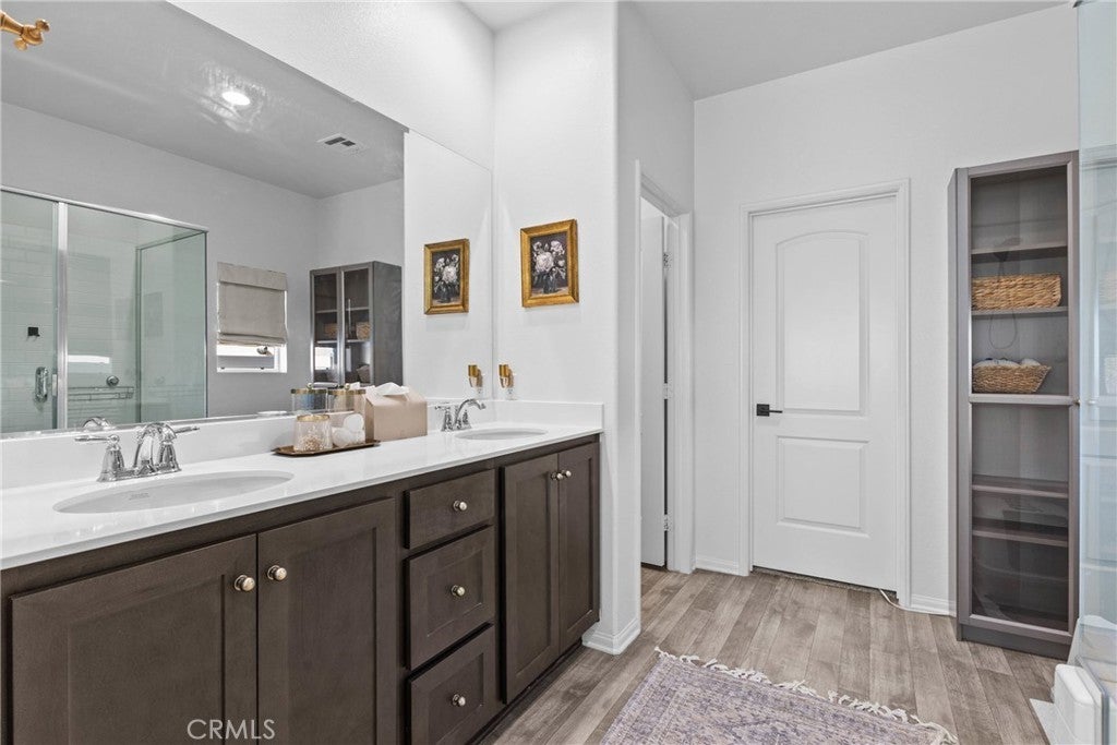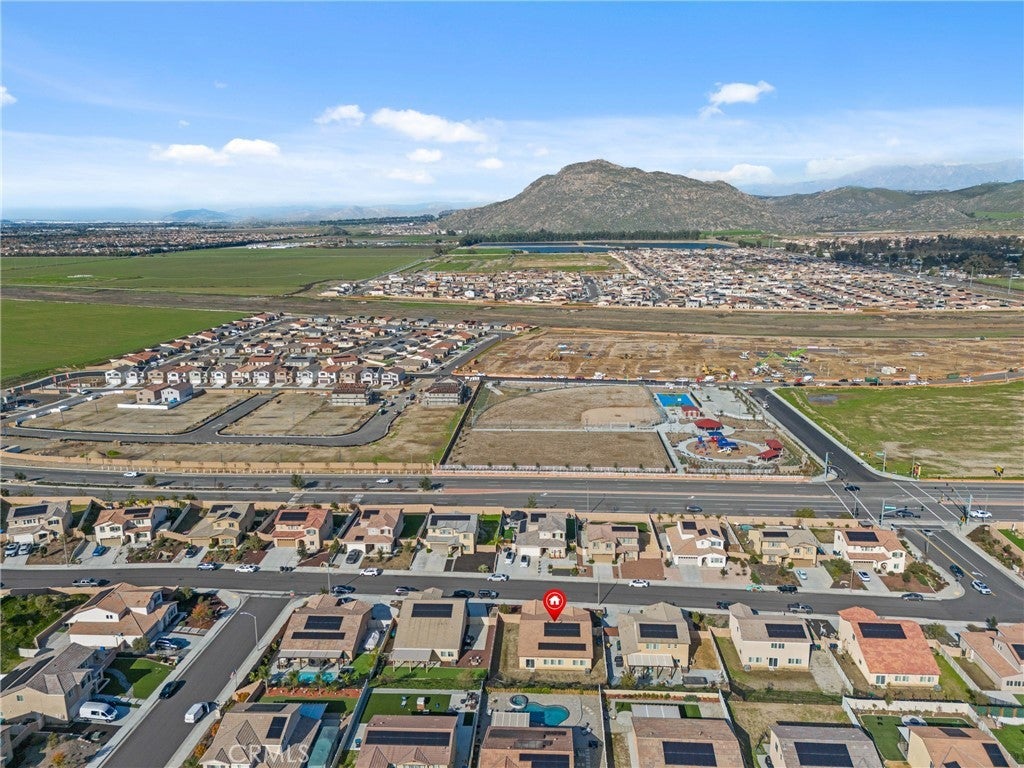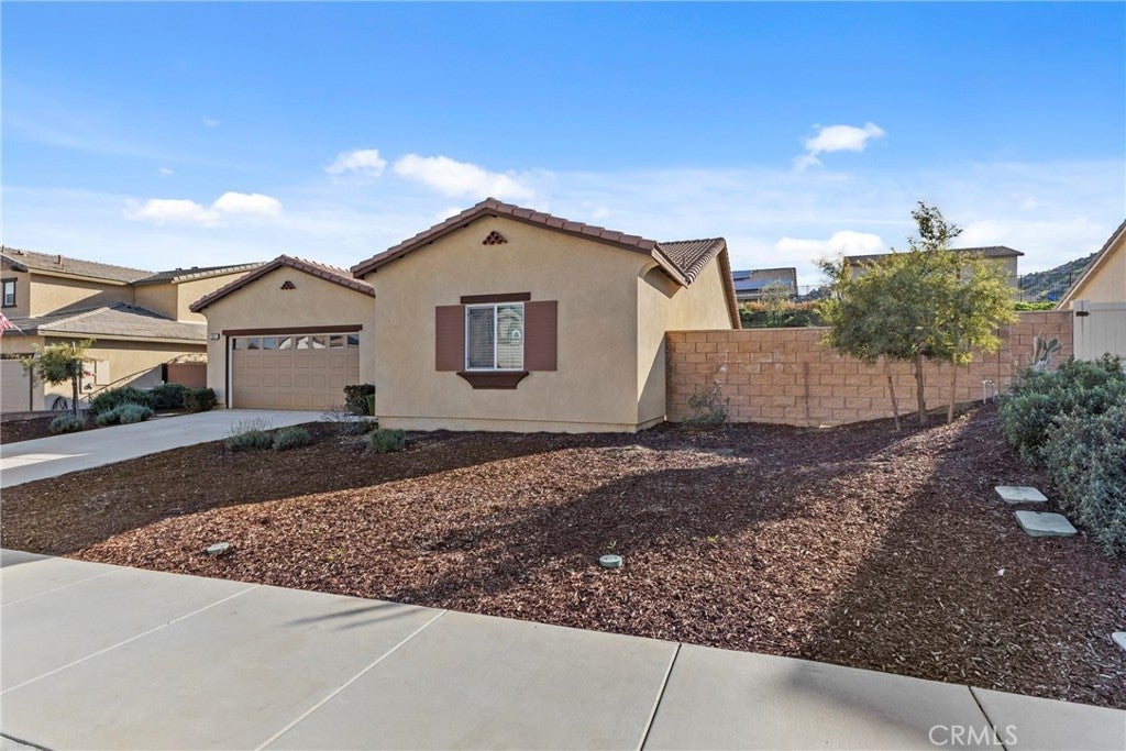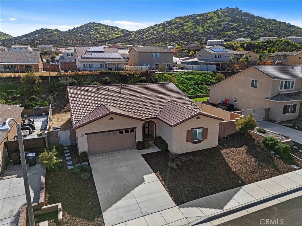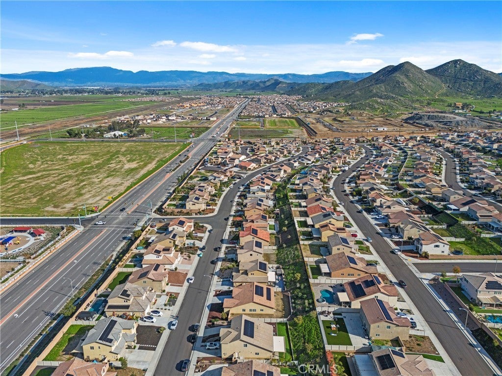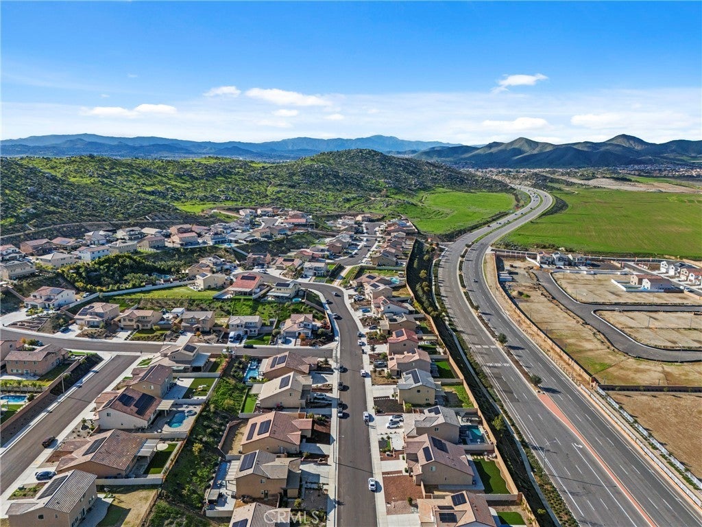 Stunning Turnkey home nestled in the heart of Winchester with beautiful Mountain Views! Built in 2022, this thoughtfully designed single story residence offers 3 bedrooms, 2 bathrooms, plus a versatile flex room located just off the entry hall. A separate hallway leads to two secondary bedrooms and a full bathroom providing privacy and functionality. The spacious Flex room offers endless possibilities and can be used as a optional fourth bedroom, home office, den, library or craft room. The open-concept floor plan flows seamlessly into the expansive great room, filled with natural light from the large windows overlooking the generous backyard - perfect for entertaining and modern living. The contemporary kitchen and dining area are bright and inviting, featuring impressive smoke maple cabinetry, Carrera Quartz Island countertops, and stainless steel appliances. The oversized primary suite includes an en-suite bathroom with dual sinks, a large walk-in shower, and a spacious walk-in closet. Sliding glass doors from the dining area open to a very large backyard - an open canvas ready for the new owner's imagination, ideal for creating a personalized outdoor retreat, garden or entertainment space. Additional highlights include owned solar purchased through the builder, D. R. Horton, with the buyer to assume only the solar lease for additional owner-added panels, providing enhanced energy efficiency. The 2-car attached garage offers direct access to the home for added convenience. Possible RV Potential.