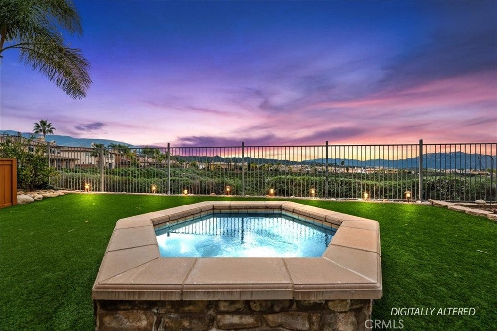Welcome to this single story Temecula home in the very popular community of Morgan Hill. Enjoy stunning panoramic sunset views from your private back yard spa. This is a beautifully maintained home featuring three spacious bedrooms, an additional den/office and formal dining room. The open concept kitchen and family room with a fireplace provides the perfect setting for entertaining or family time. The kitchen offers an abundance of cabinet and storage space, a large center island with sink, butler's pantry and walk-in pantry as well as upgraded Bosch double oven, cooktop and dishwasher. The primary bedroom offers privacy from the other bedroom areas and also spectacular views you can take in from bedroom or direct walk-out into the back yard. The primary bath includes a gorgeous upgraded walk-in shower and spacious walk-in closet. To top it off you get PAID FOR solar. Located in the South Temecula community of Morgan Hill which features a unique clubhouse with amenities including pool and spa, tennis and basketball courts, kids playground, meeting rooms and much more. Close to walking trails, Pechanga Casino, Old Town and Temecula Wine Country. Located in the Great Oak High school district. This is a truly must-see.