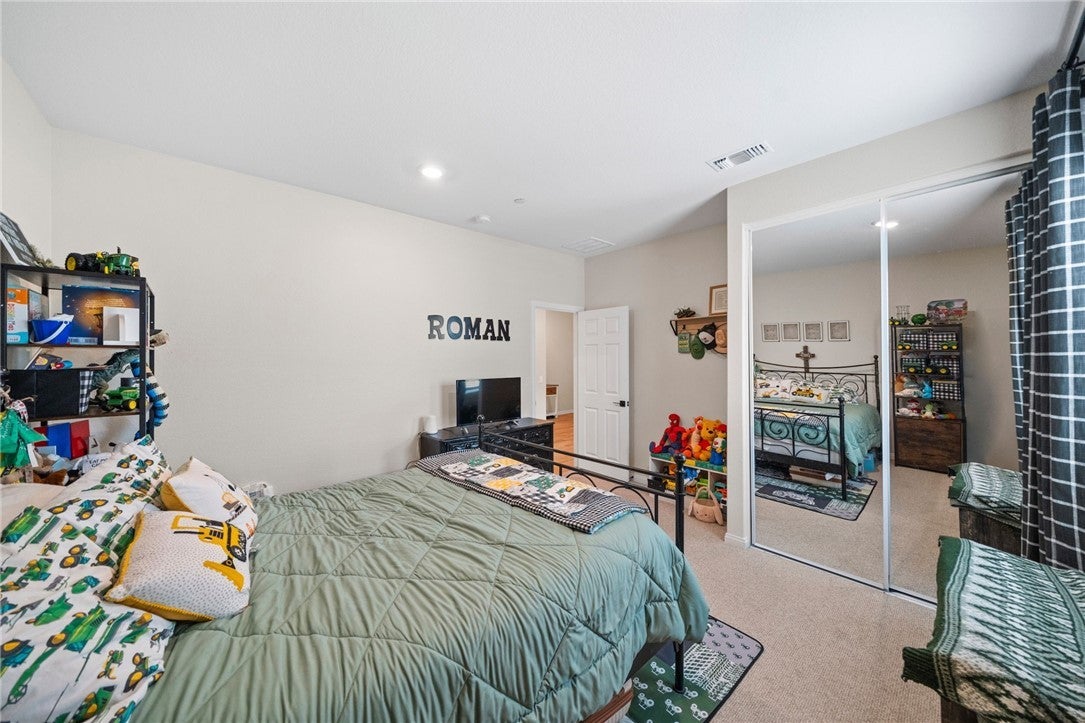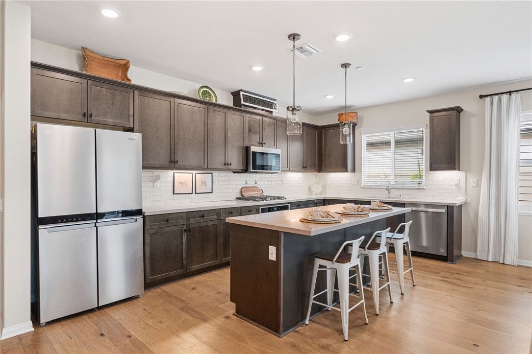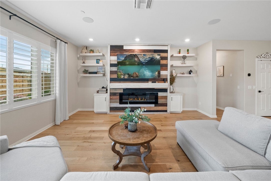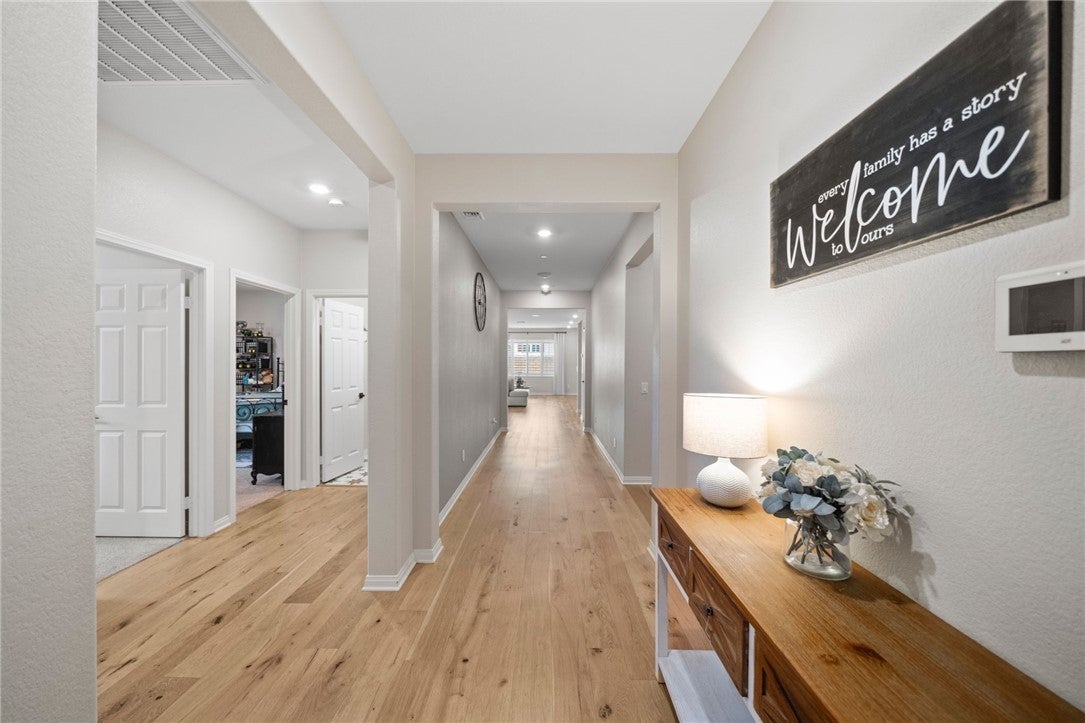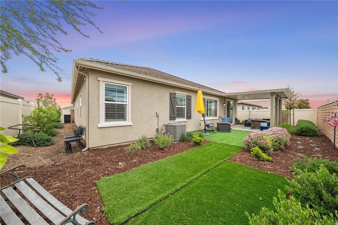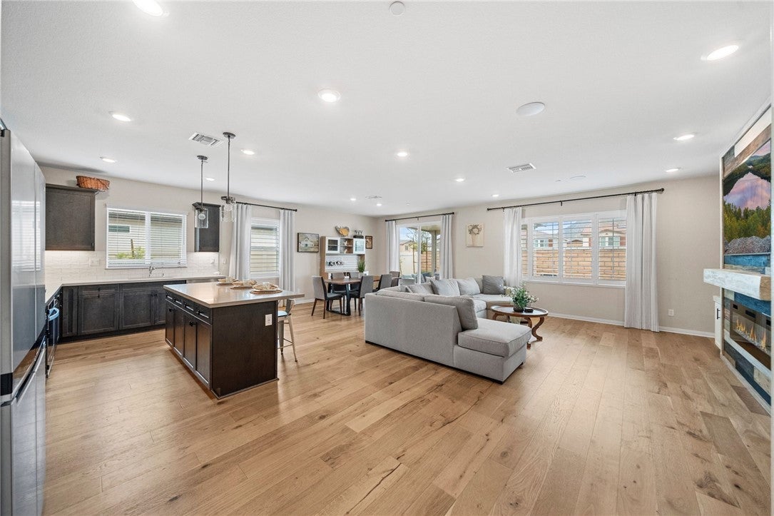 Looking for a move in ready single story home? This home qualifies for a USDA loan with ZERO downpayment! Built in 2024 this former model home offers a perfect blend of modern design and high end finishes. Featuring 5 bedrooms, 2 bathrooms, and two car garage. The open concept floor plan is enhanced by wood flooring throughout and custom paint. The chef’s kitchen showcases maple stained shaker cabinets, quartz countertops, subway tile backsplash, stainless steel appliances, pendant drop lighting over the island, and elegant finishes ideal for both everyday living and entertaining. The living area is highlighted by a beautiful custom decorative fireplace with wood panel mantel, built in cabinets, and shelving. The spacious primary suite includes a custom walk in closet designed by closet world, double vanity sinks, a soaking tub, and a walk in shower. Guest bathroom also has double vanity sinks and stylish tile flooring. Secondary bedrooms two, three, and four are a nice size with neutral tone carpeting. Laundry room has white cabinets offering plenty of storage and stylish tile flooring. This Energy Star certified home also includes window shutters, and blinds in secondary bedrooms. The inviting backyard has an Alumawood patio and low maintenance artificial turf offering comfort, efficiency, and perfect for entertaining. The home's owned solar system means lower utility bills with no lease or loan to assume. Don't miss out on this beautiful home. Schedule a showing today!