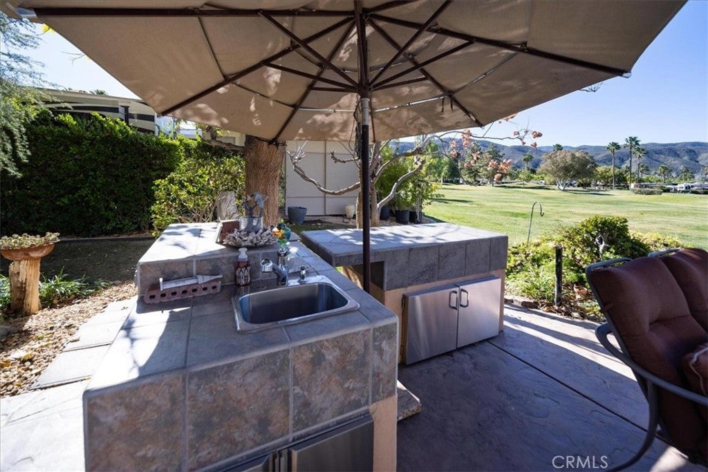 Discover your perfect retreat on a truly expansive lot offering the ultimate in outdoor luxury. This standout space features a built-in barbecue, a washer and dryer, a full kitchen with an oven, three convenient islands, and a refrigerator-freezer combo. Enjoy the shade of an Alumawood cover and pick fresh lemons right from your own tree. Step outside to a spectacular setting with panoramic views: a gorgeous waterfall, a huge grassy knoll, a large pond, and a prime view of the golf course’s fourth hole. Whether you're relaxing, entertaining, or simply soaking in the surroundings, this lot is a rare gem. Come see what makes this location a standout in Rancho California RV Resort! In addition, Rancho California RV Resort enriches your lifestyle with a host of top-tier amenities. Owners enjoy a 14-hole executive par-3 golf course at no extra cost, along with access to five pools and jacuzzis, tennis and pickleball courts, a dog park, two clubhouses, a fitness center, a fishing pond, horseshoes, and a bocce ball area. The resort is guard-gated with no age restriction, ensuring a welcoming environment for all. Monthly HOA fees cover unlimited use of the golf course, all amenities, trash pickup, and water, sewer, and common area maintenance. With financing available, the RV Resort offers the perfect blend of a private property lifestyle and a vibrant community atmosphere.