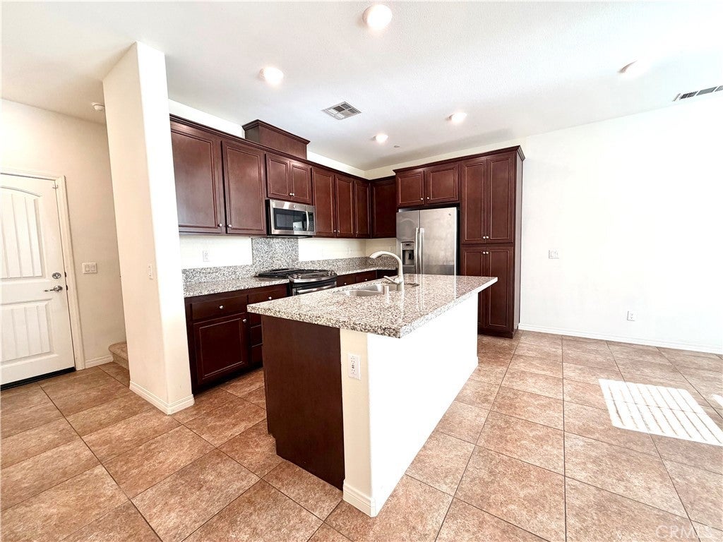 Welcome to the community of Arroyo Vista! This beautiful two story condo, boasting three bedrooms, two and a half bathrooms, and over 1400 square feet of living space, is now available for LEASE! Nestled within a gated patio entry, this home welcomes you into a spacious open concept layout with tile flooring and high ceilings. The kitchen serves as the heart of the home, featuring a large island, granite countertops, stainless steel appliances, and cherry wood cabinets that offer ample storage space. Seamlessly integrated, the kitchen flows into the inviting living and dining room, creating an ideal setting for entertaining guests! Completing the downstairs layout is a convenient half bathroom. Venture upstairs to find a spacious versatile nook, all the bedrooms, including a generously sized primary bedroom featuring a walk-in closet and an attached bathroom with dual sinks, a soaking tub, and a separate shower, two additional bedrooms and another full bathroom. The Laundry room is conveniently located upstairs, adjacent to the primary bedroom. This condo offers a two car garage boasting epoxy flooring and is equipped with a tankless water heater. The Arroyo Vista community offers a resort-style living with access to a sparkling pool and spa, complete with a cozy firepit and patio area, and a sports park offering a playground, picnic area, basketball hoops, and walking trails! Conveniently situated near the 15 and 215 Freeways, easy access to nearby schools, shopping, dining, and entertainment, ensuring that all your daily needs are within reach! Schedule a showing today!