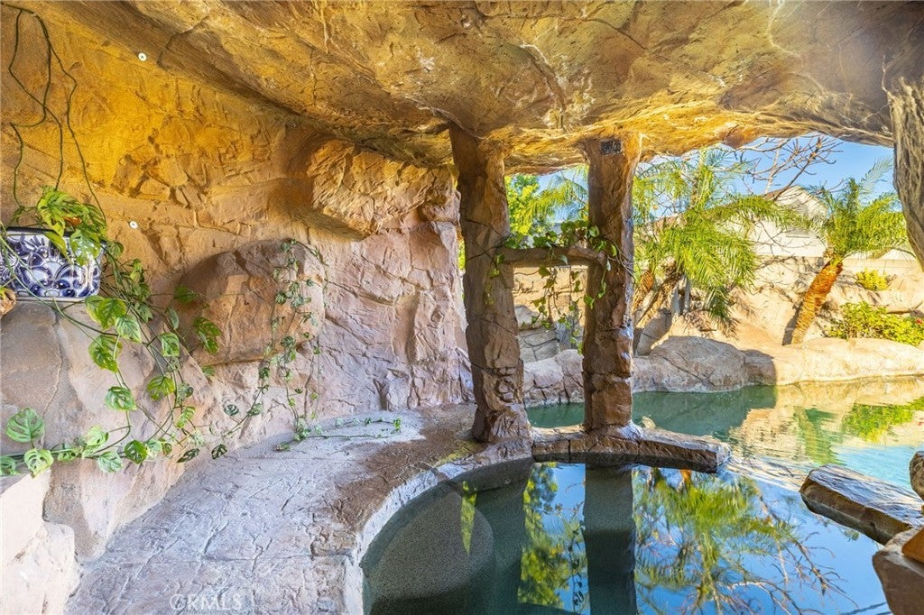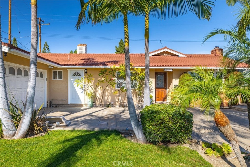 Single-story residence with resort-style grounds, engineered for privacy, recreation, and serious entertaining capacity. The front elevation delivers immediate curb appeal: manicured lawn, mature palm trees, decorative stone wall, and a wide concrete driveway leading to an attached garage. Warm stucco, brick accents, and a tile roof create a cohesive exterior that reads established rather than generic. The backyard is a purpose-built outdoor environment rather than a collection of upgrades. A custom freeform pool and spa anchors the space, featuring an 8-foot deep end, integrated heater, dramatic waterfall, and built-in waterslide. A grotto-style swim-through adds architectural depth and creates multiple experiential zones within the pool itself. The sound of moving water carries across the yard, reinforcing the resort feel. Entertaining infrastructure is extensive. A pergola-covered patio supported by stone-clad columns houses a built-in BBQ island with countertop workspace. Nearby, a full stacked-stone outdoor fireplace establishes a second gathering zone for evenings. Dining patio, bar, fire feature, and pool deck function as distinct but connected environments, allowing the yard to host multiple activities simultaneously without feeling congested. Hardscape is cohesive throughout, utilizing stamped concrete and pavers to define circulation and maintain visual consistency. Landscaping reinforces the tropical aesthetic while remaining functional and productive, with mature guava, fig, and avocado trees integrated into the grounds. Location adds strategic value: California State University, Fullerton is under 4 miles away, and Disneyland is also under 4 miles, positioning the property favorably for both lifestyle and long-term demand. This is not a standard backyard with features added over time. It is an intentionally designed outdoor environment built around experience, utility, and impact. Ideal for buyers who value privacy, hosting, and a high-use outdoor lifestyle.