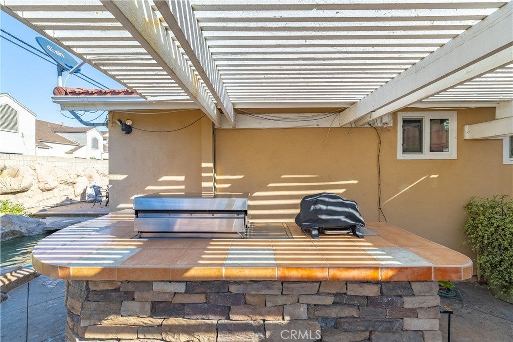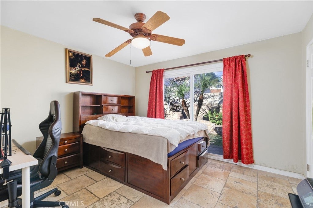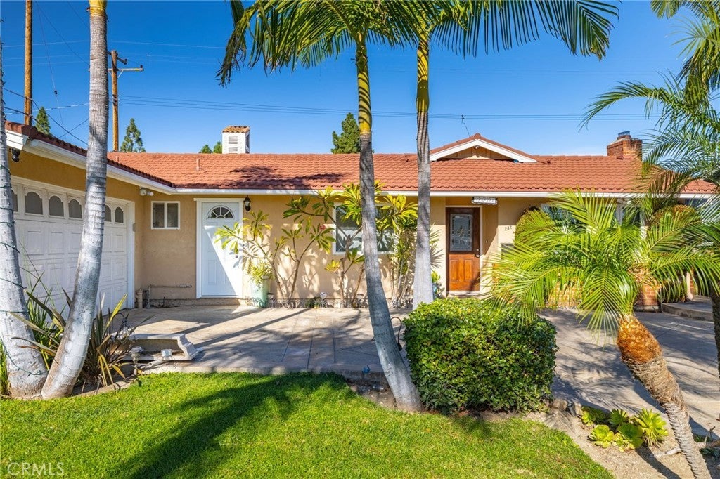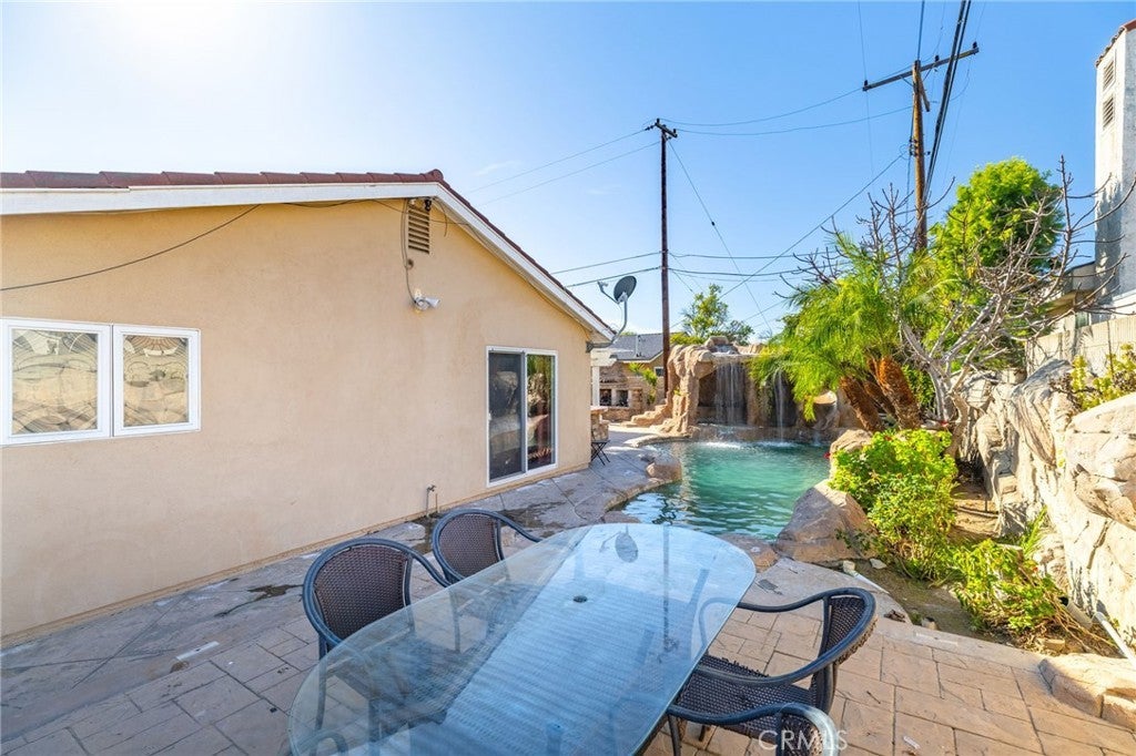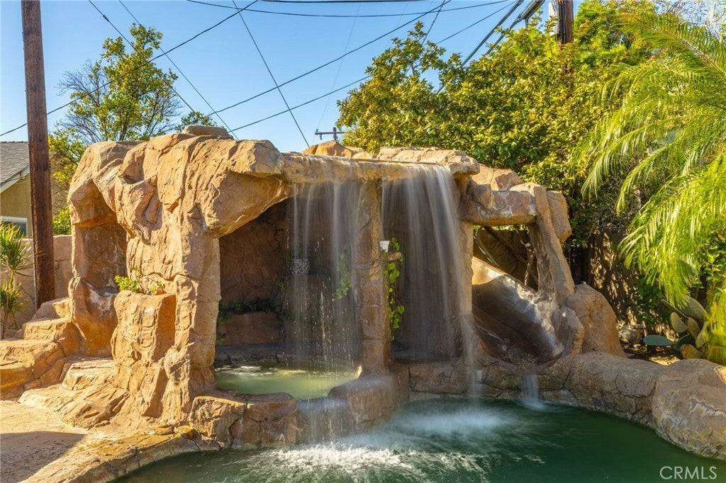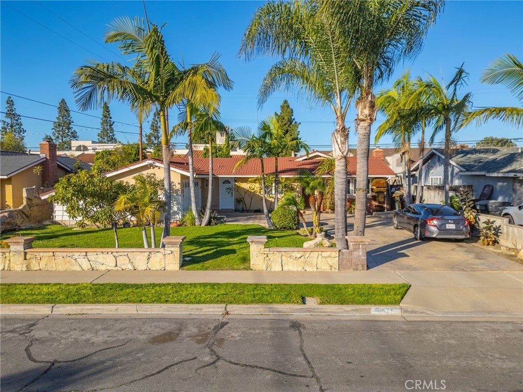 UDATE: TWO BEDROOMS RENOVATED! Single-story residence with resort-style grounds, engineered for privacy, recreation, and serious entertaining capacity. The front elevation delivers immediate curb appeal: manicured lawn, mature palm trees, decorative stone wall, and a wide concrete driveway leading to an attached garage. Warm stucco, brick accents, and a tile roof create a cohesive exterior that reads established rather than generic. The backyard is a purpose-built outdoor environment rather than a collection of upgrades. A custom freeform pool and spa anchors the space, featuring an 8-foot deep end, integrated heater, dramatic waterfall, and built-in waterslide. A grotto-style swim-through adds architectural depth and creates multiple experiential zones within the pool itself. The sound of moving water carries across the yard, reinforcing the resort feel. Entertaining infrastructure is extensive. A pergola-covered patio supported by stone-clad columns houses a built-in BBQ island with countertop workspace. Nearby, a full stacked-stone outdoor fireplace establishes a second gathering zone for evenings. Dining patio, bar, fire feature, and pool deck function as distinct but connected environments, allowing the yard to host multiple activities simultaneously without feeling congested. Hardscape is cohesive throughout, utilizing stamped concrete and pavers to define circulation and maintain visual consistency. Landscaping reinforces the tropical aesthetic while remaining functional and productive, with mature guava, fig, and avocado trees integrated into the grounds. Location adds strategic value: California State University, Fullerton is under 4 miles away, and Disneyland is also under 4 miles, positioning the property favorably for both lifestyle and long-term demand. This is not a standard backyard with features added over time. It is an intentionally designed outdoor environment built around experience, utility, and impact. Ideal for buyers who value privacy, hosting, and a high-use outdoor lifestyle.